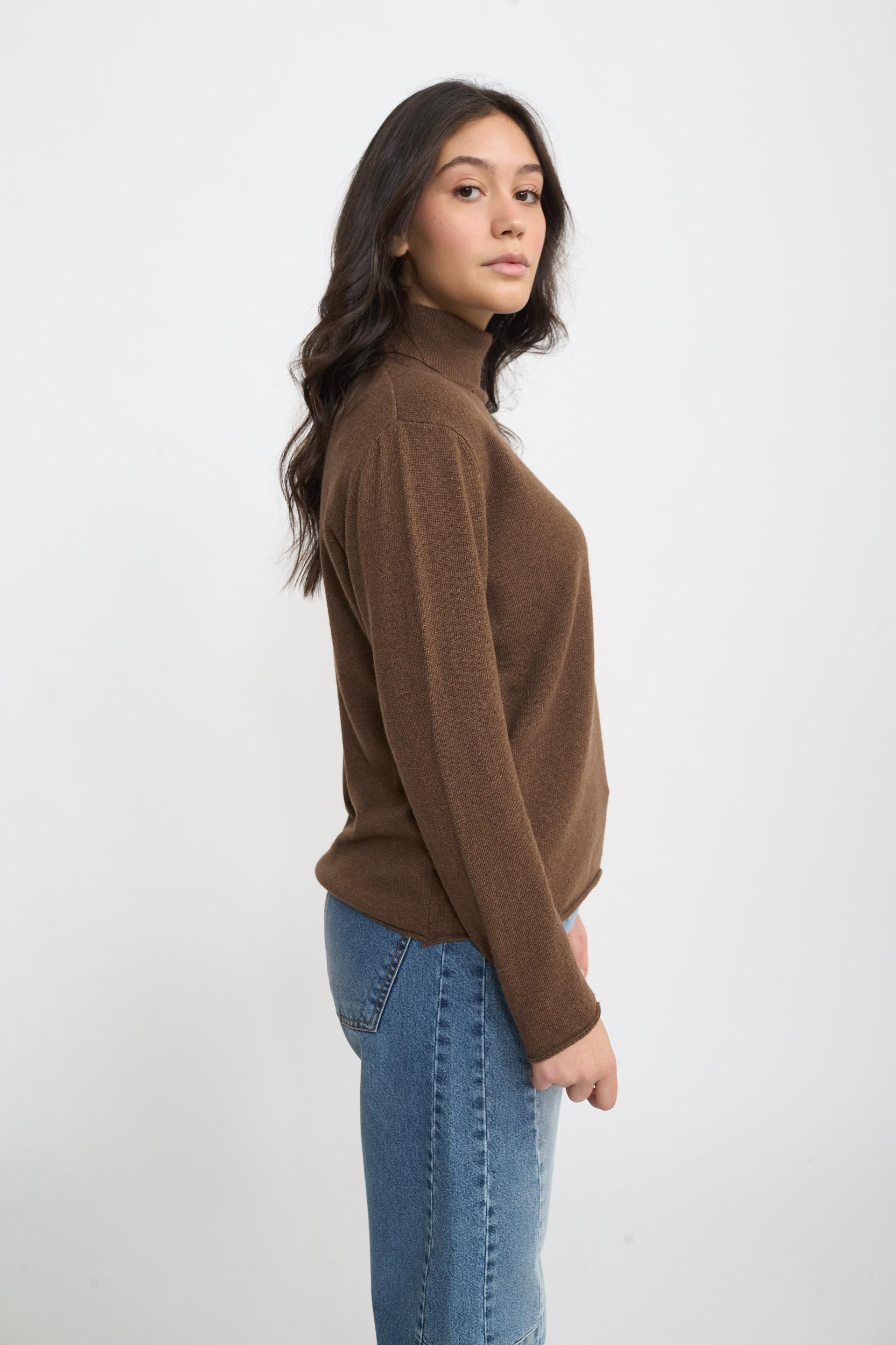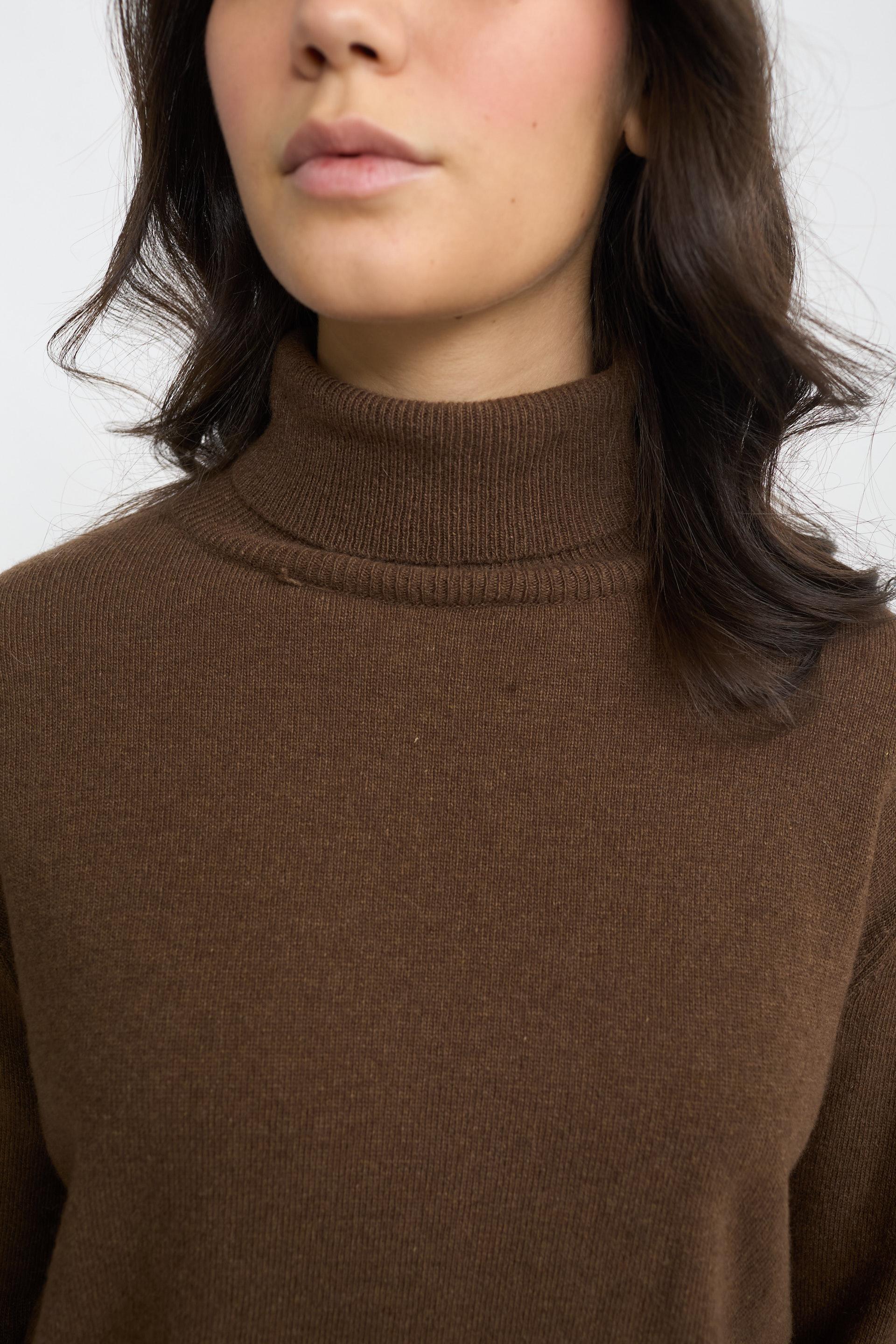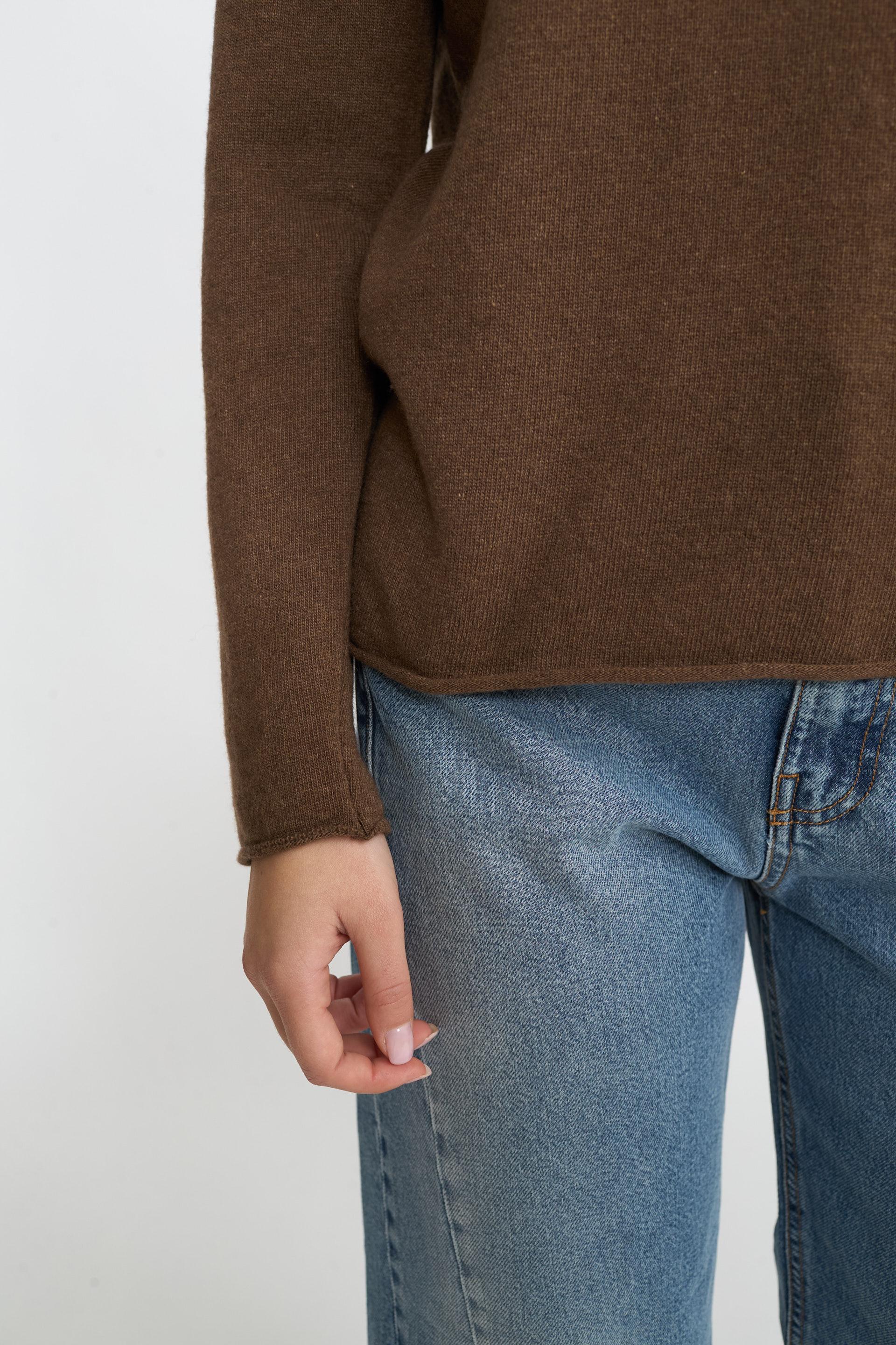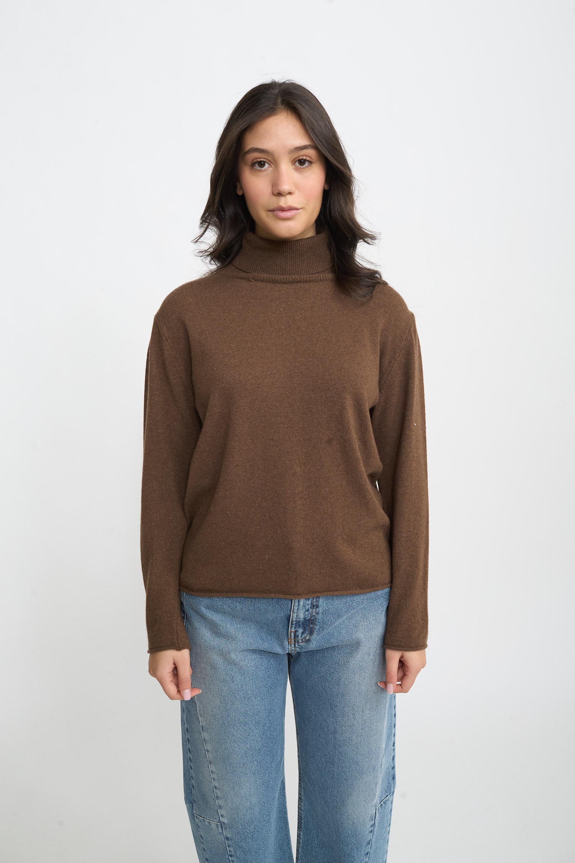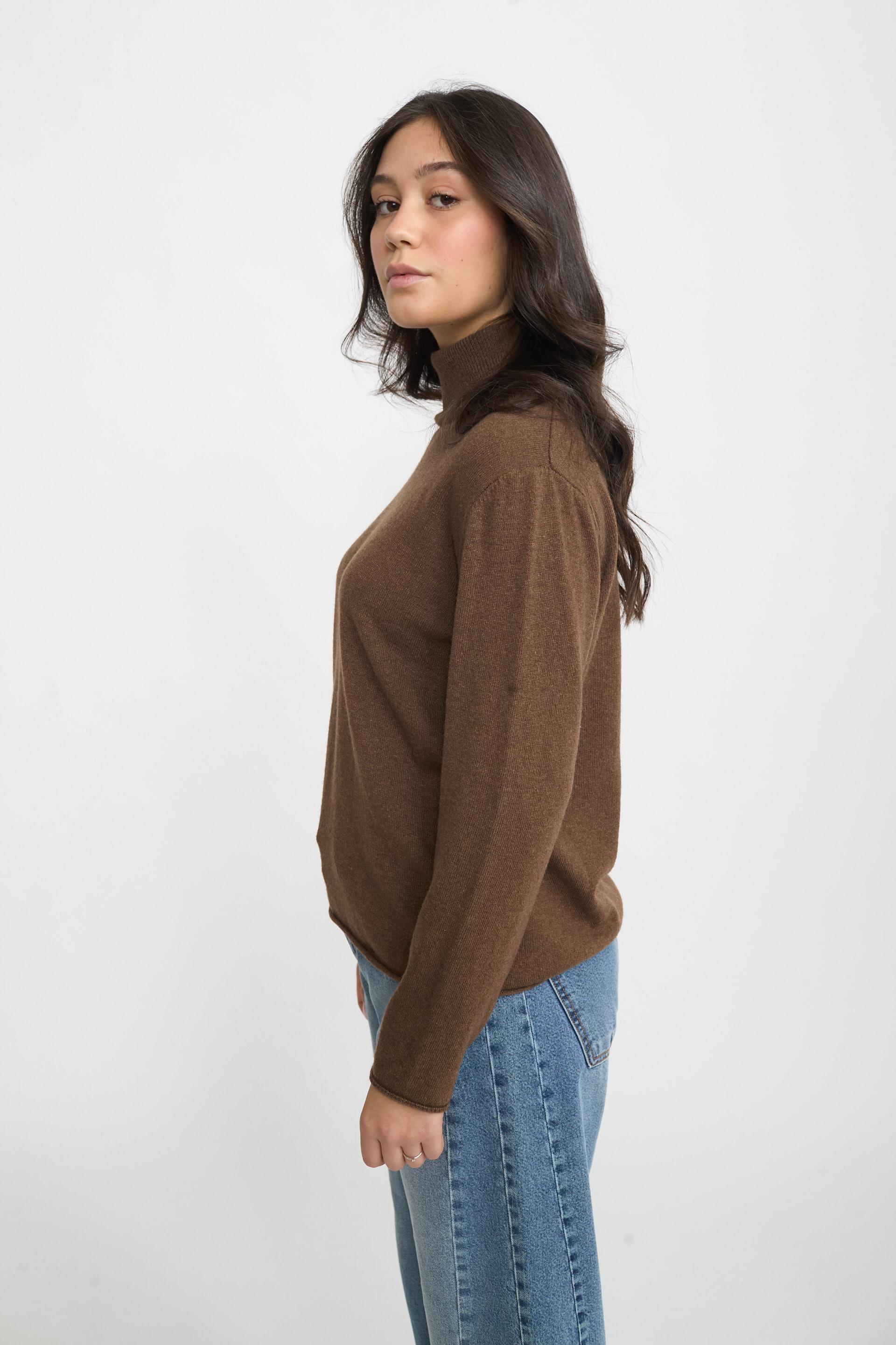 | Maglia a collo alto in misto cachemire con polsini e orlo a vivo. Dettaglio di lavorazione a costine su collo. | ||