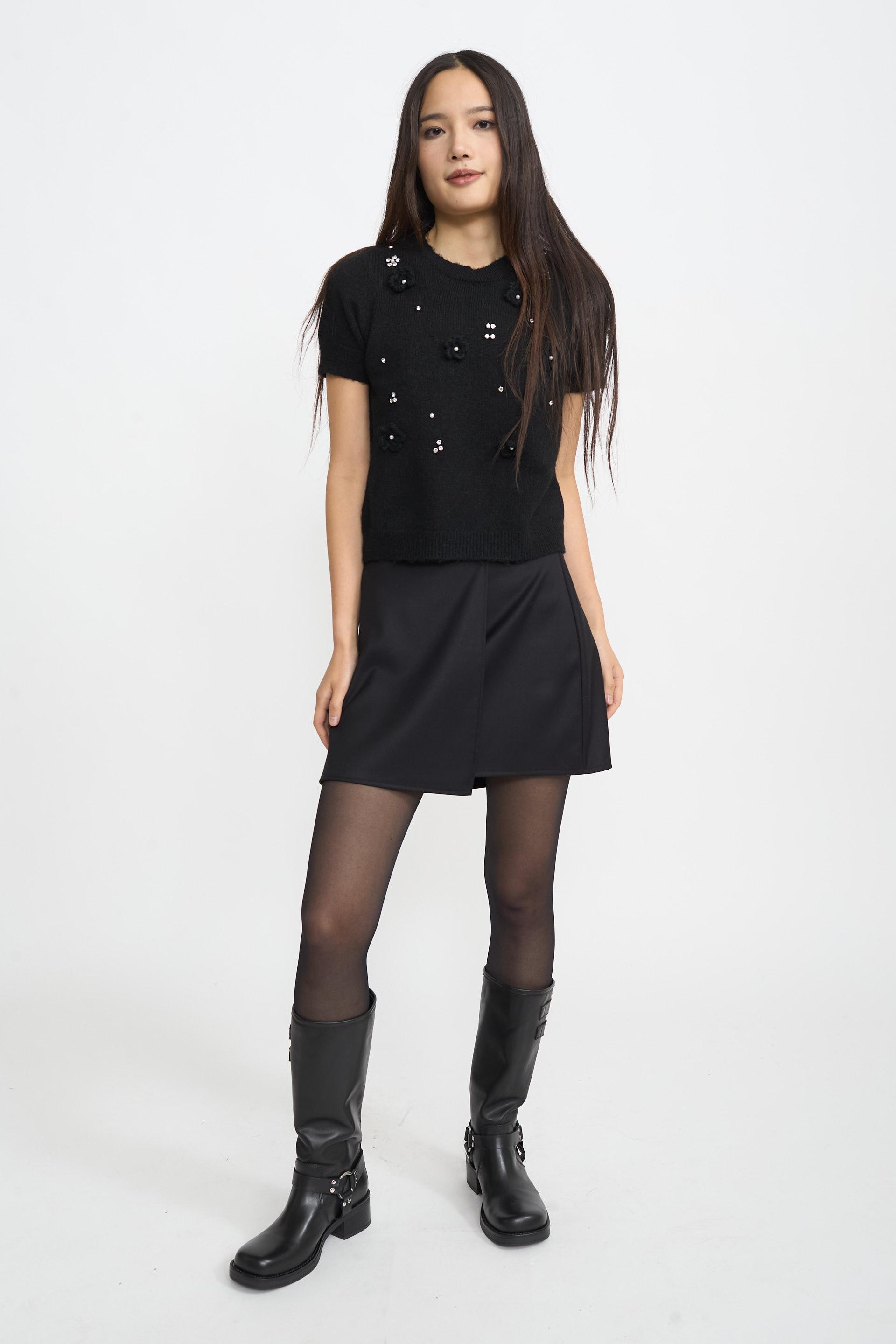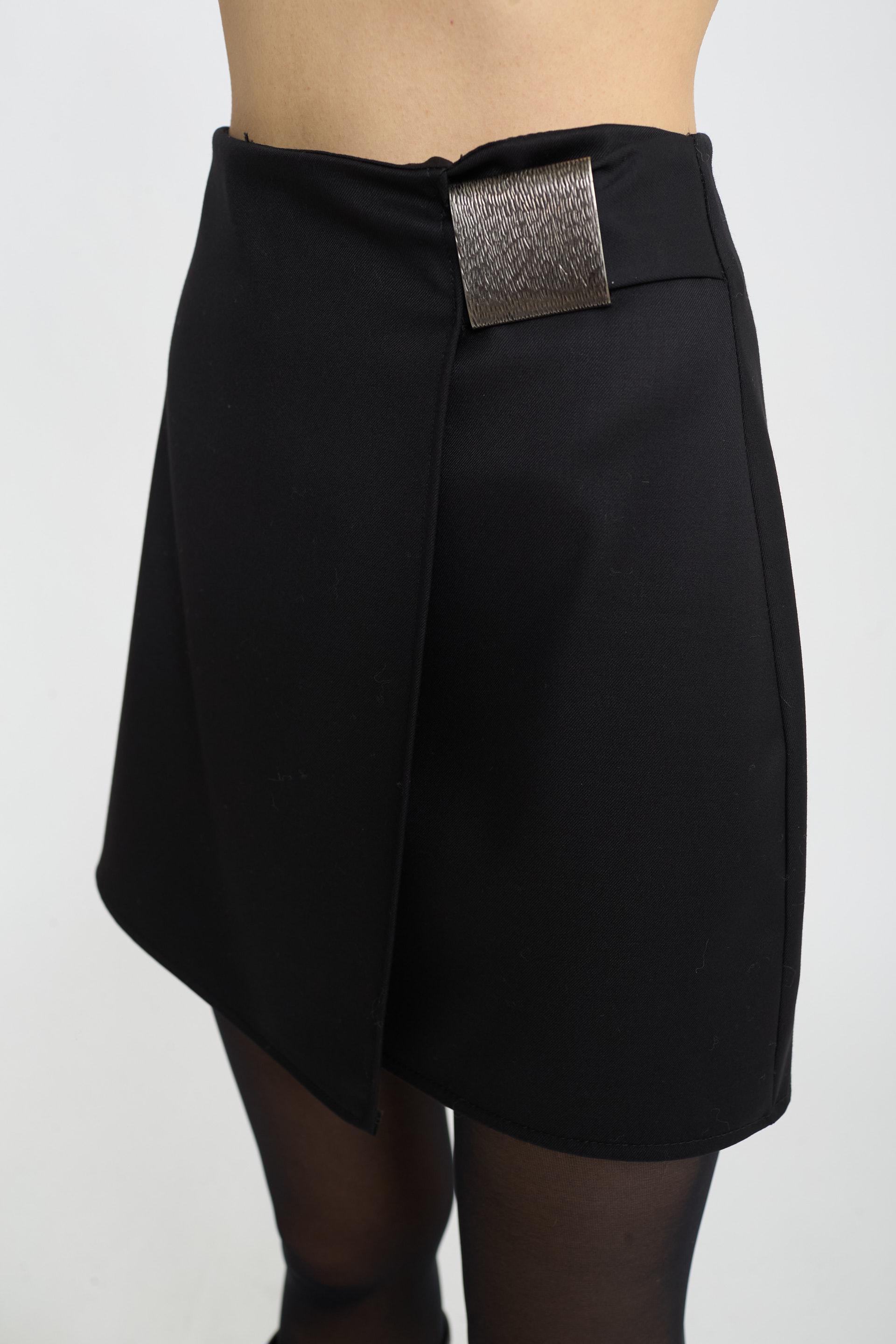 | Minigonna portafoglio co dettaglio di placca metallica. Chiusura posteriore tramite zip. | ||