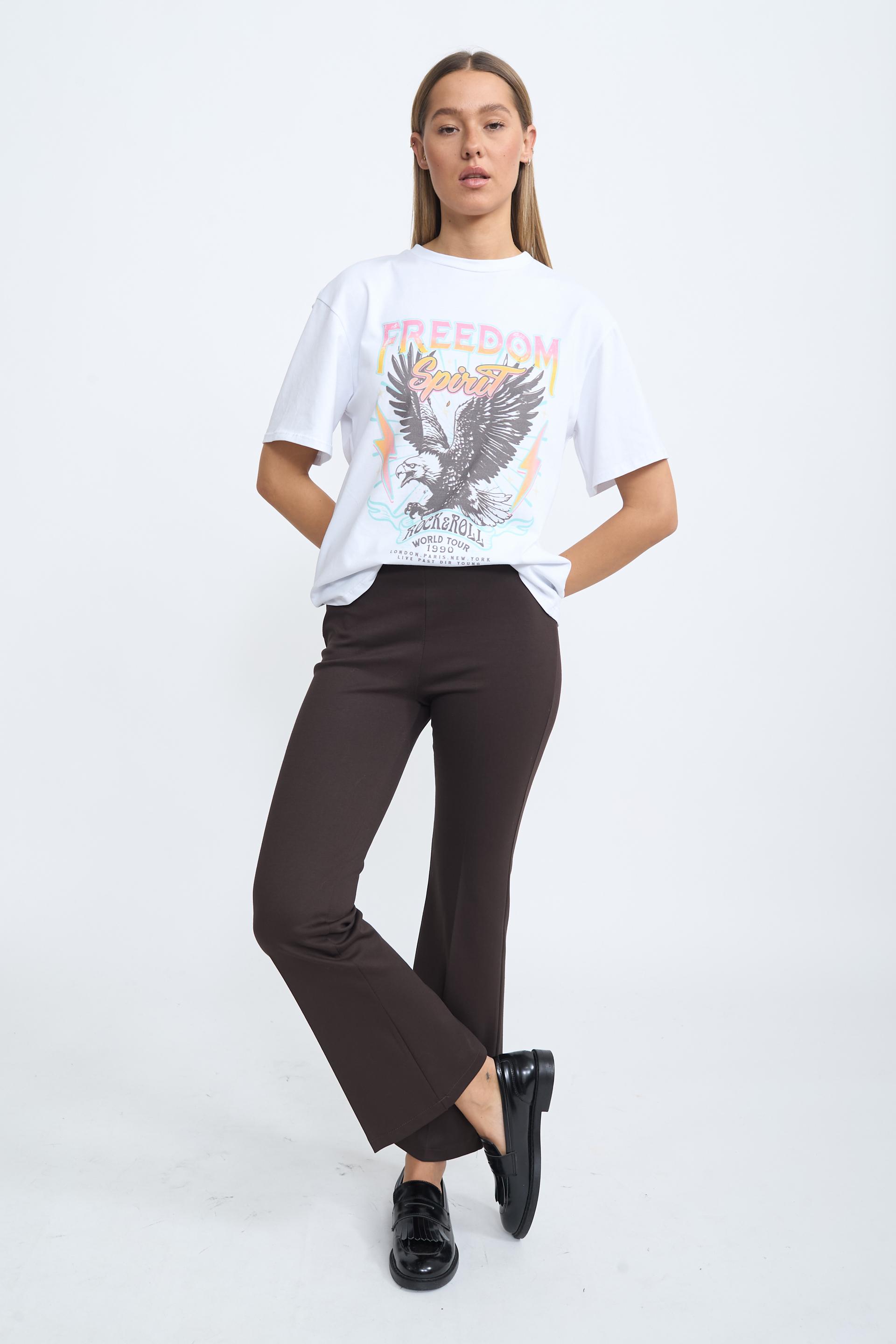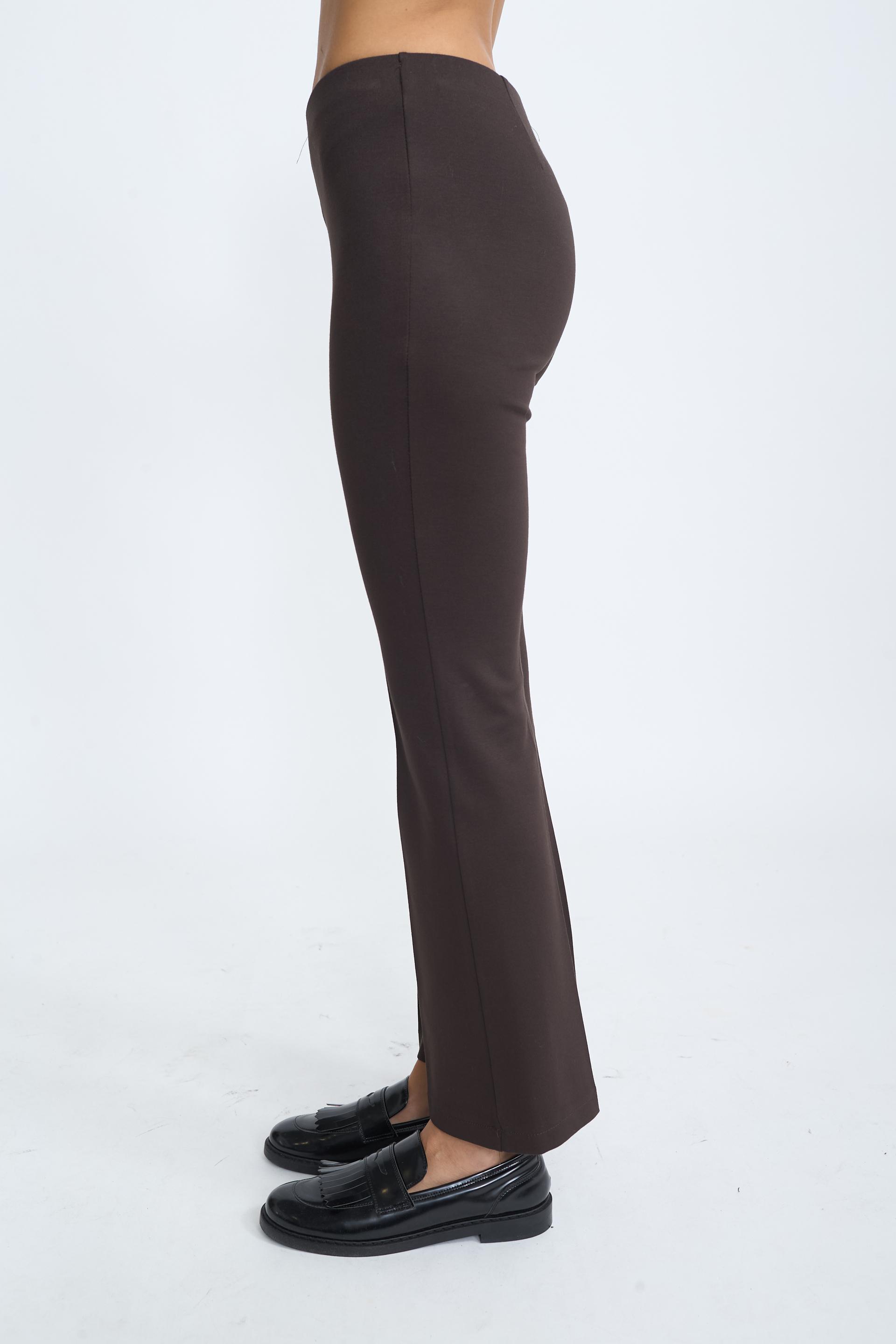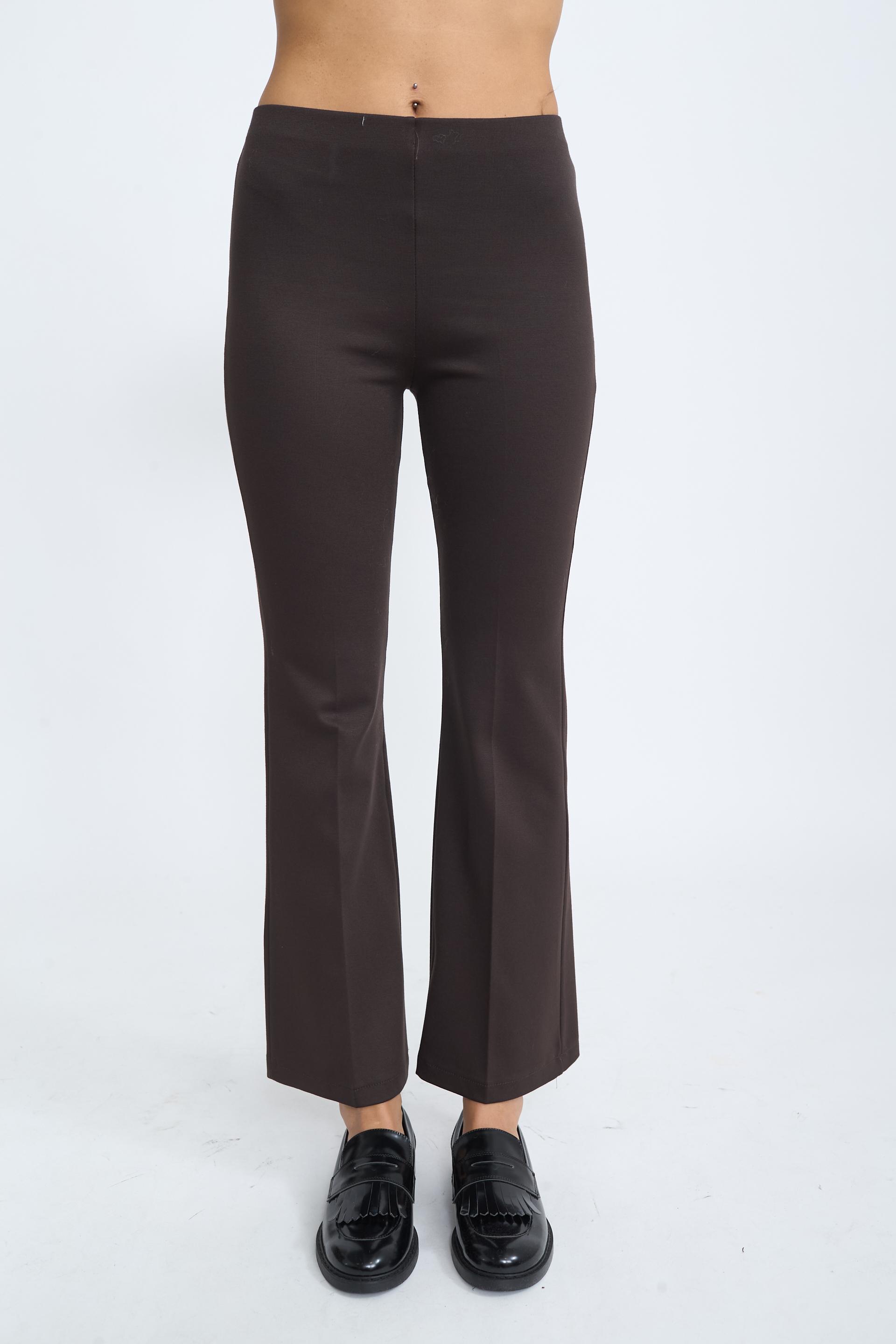 Pantalone flare in punto Milano con elastico in vita e piega sulla gamba. | ||