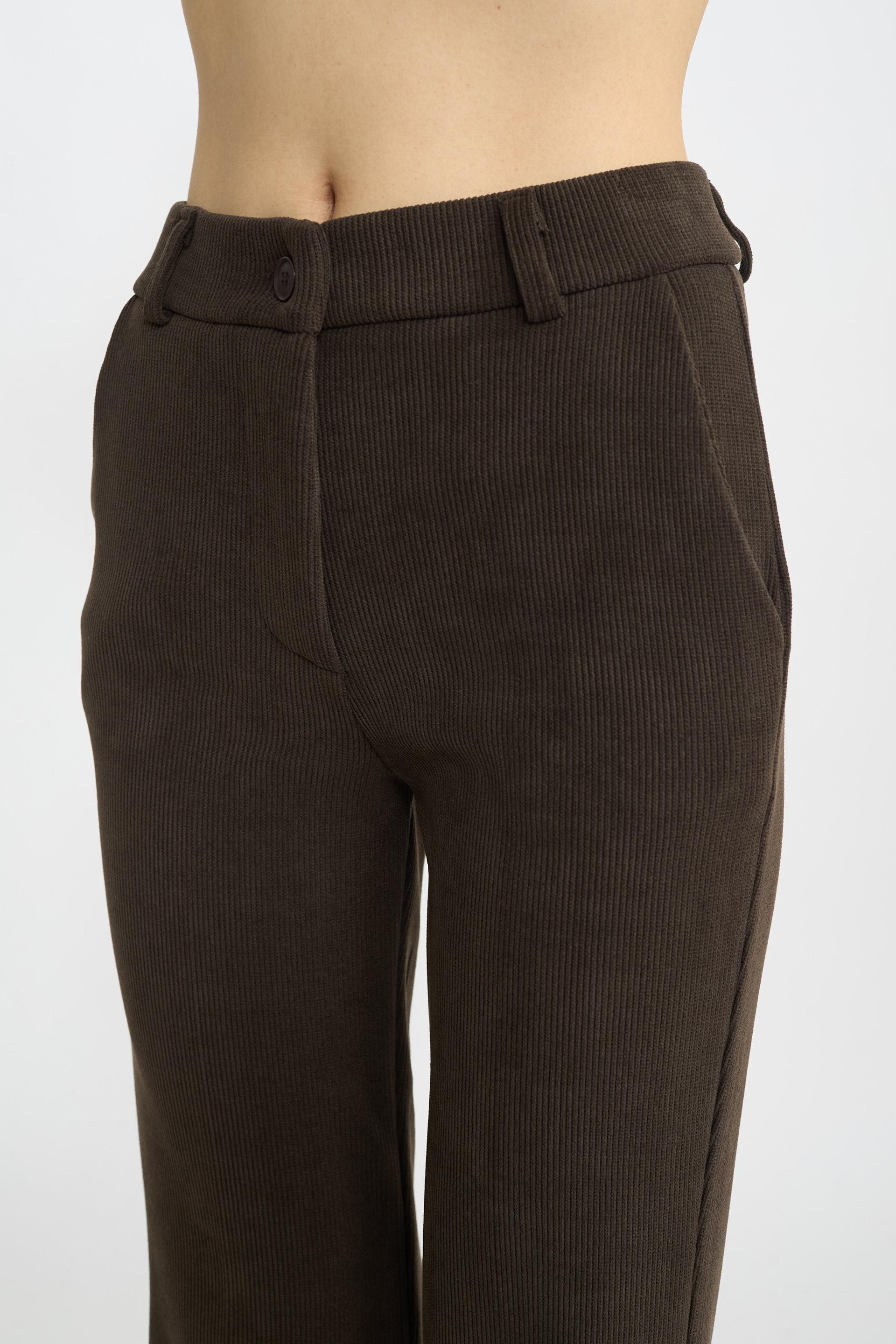 | Pantalone flare in velluto a costine con tasche laterali e passanti in vita. Chiusura tramite 1 bottone e cerniera. | ||