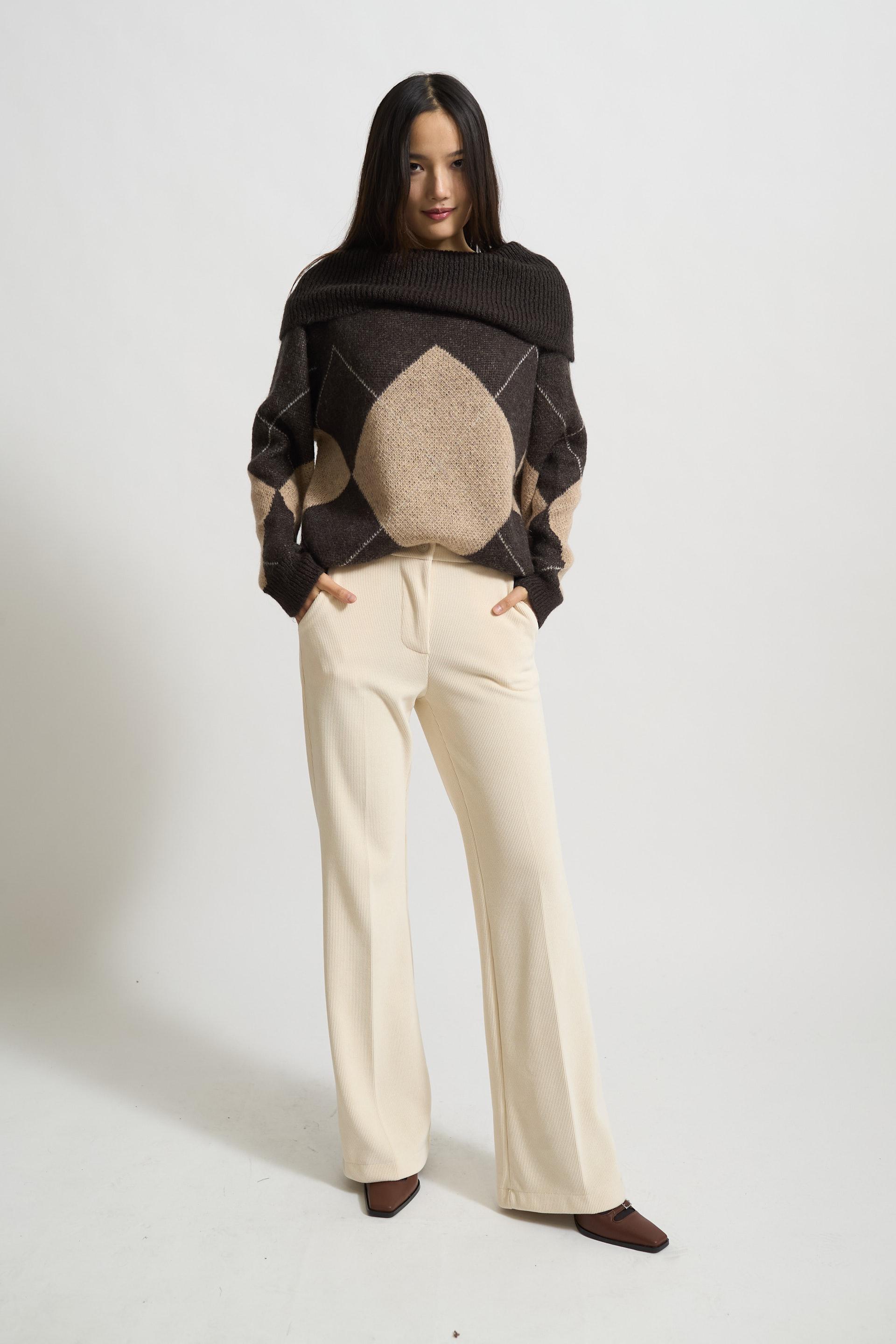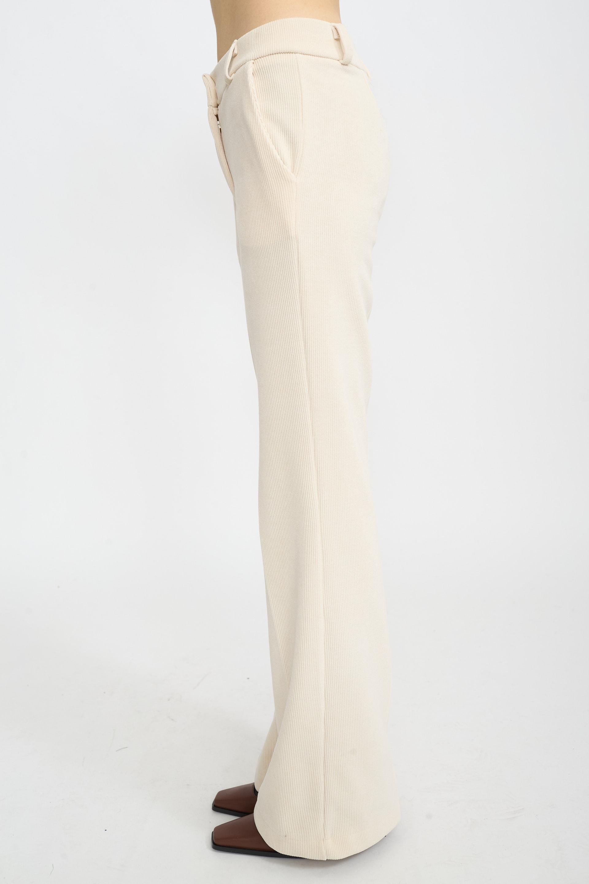 | Pantalone flare in velluto a costine con tasche laterali e passanti in vita. Chiusura tramite 1 bottone e cerniera. | ||