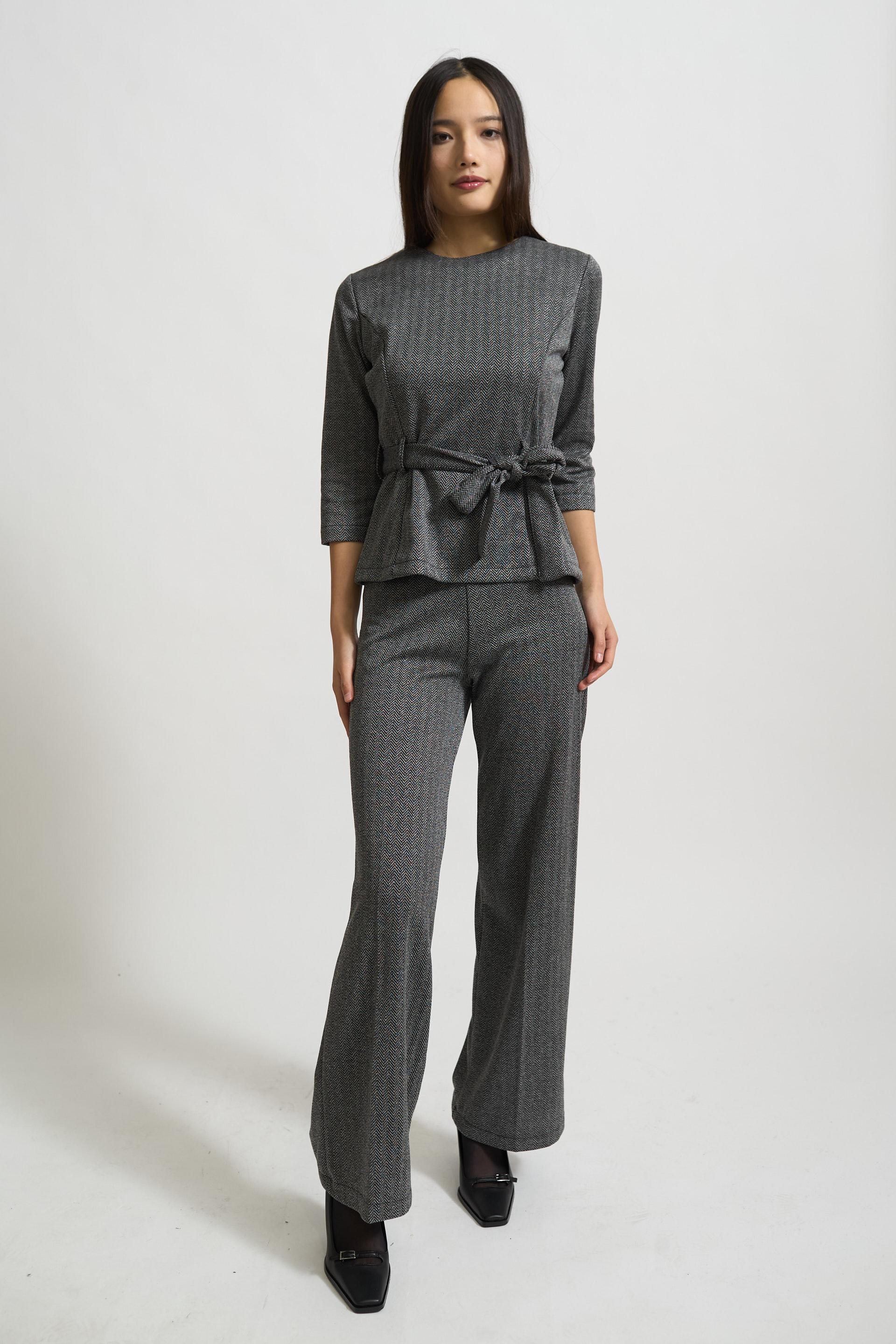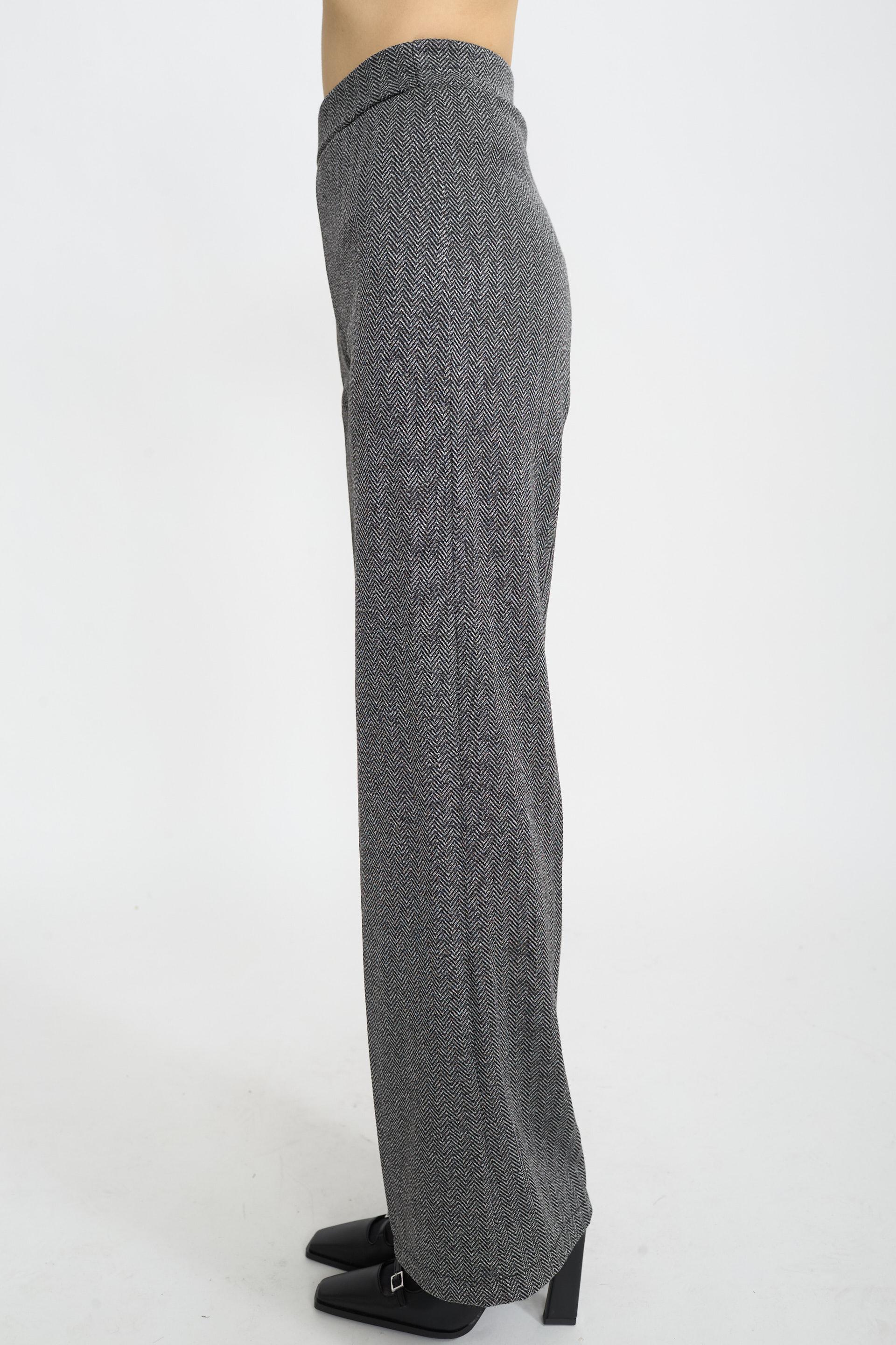 | Pantalone gamba dritta con elastico in vita in tessuto spigato. | ||