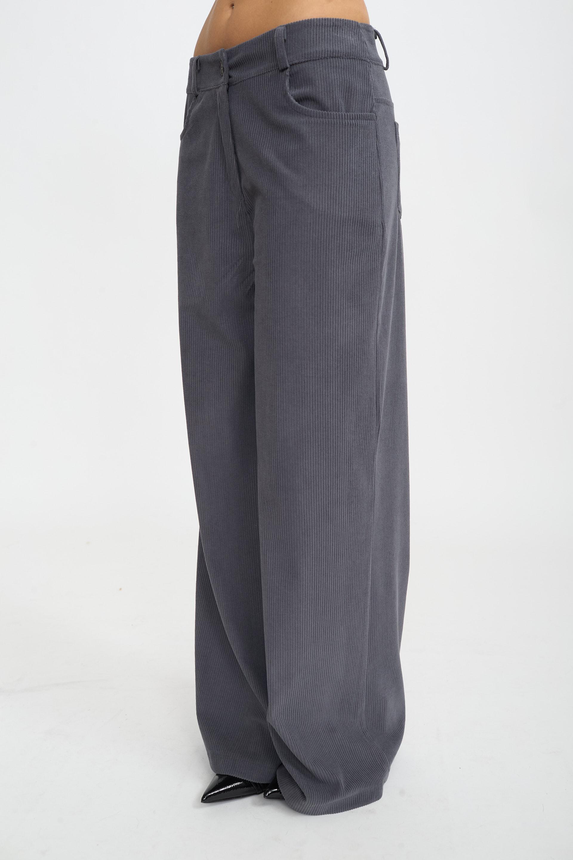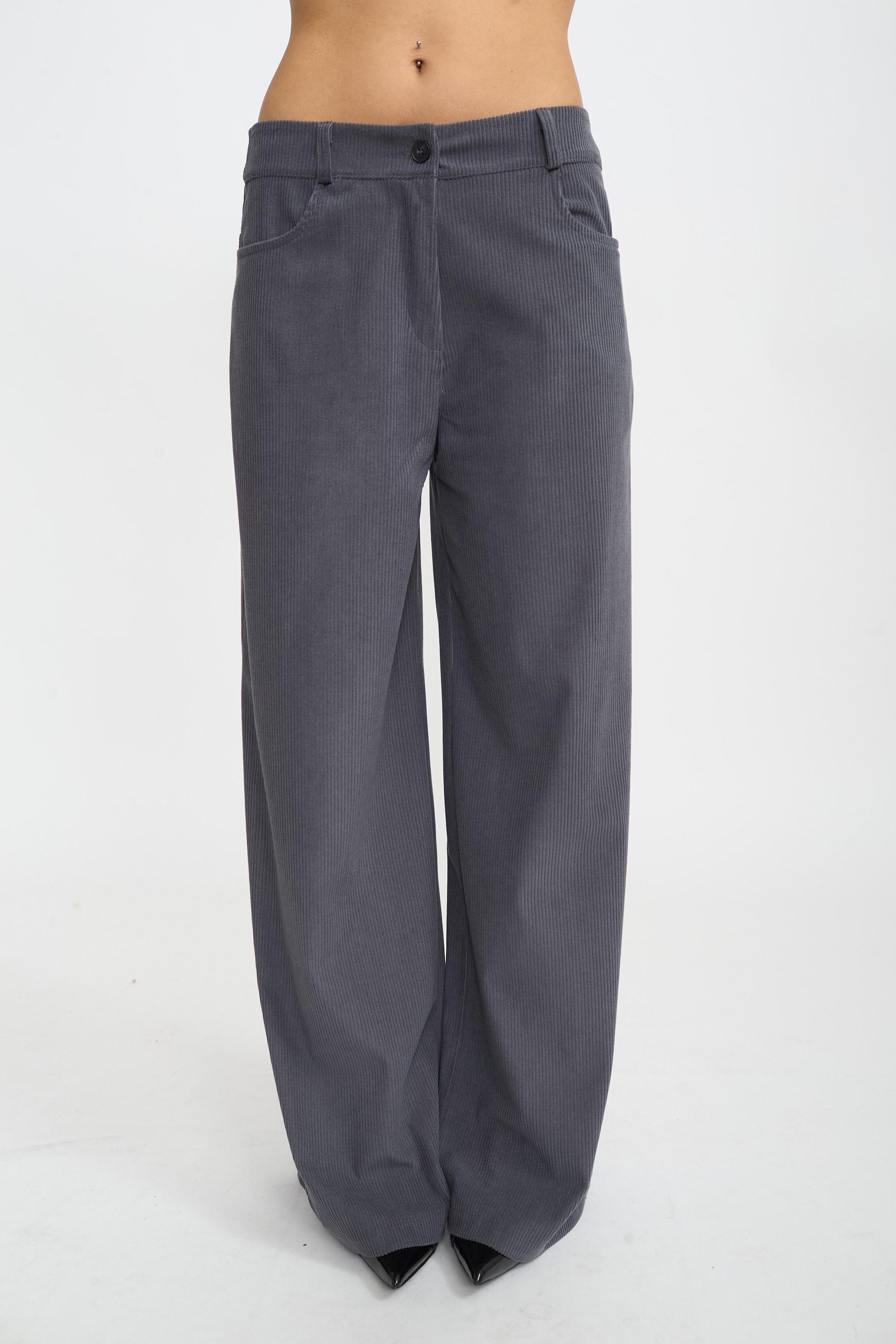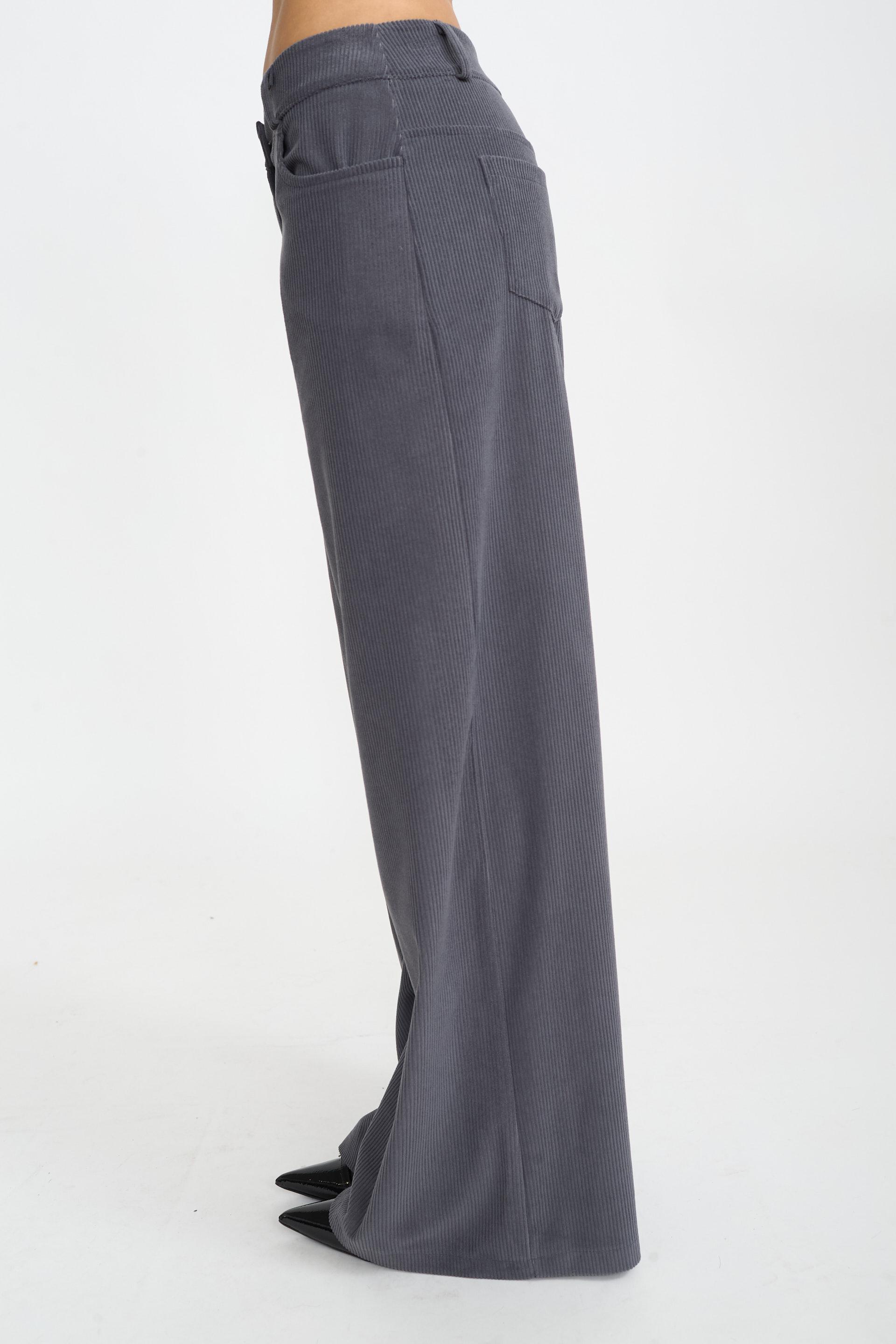 | Pantalone palazzo velluto con tasche lateri e tasche posteriori applicate. Chiusura tramite bottone e cerniera. | ||