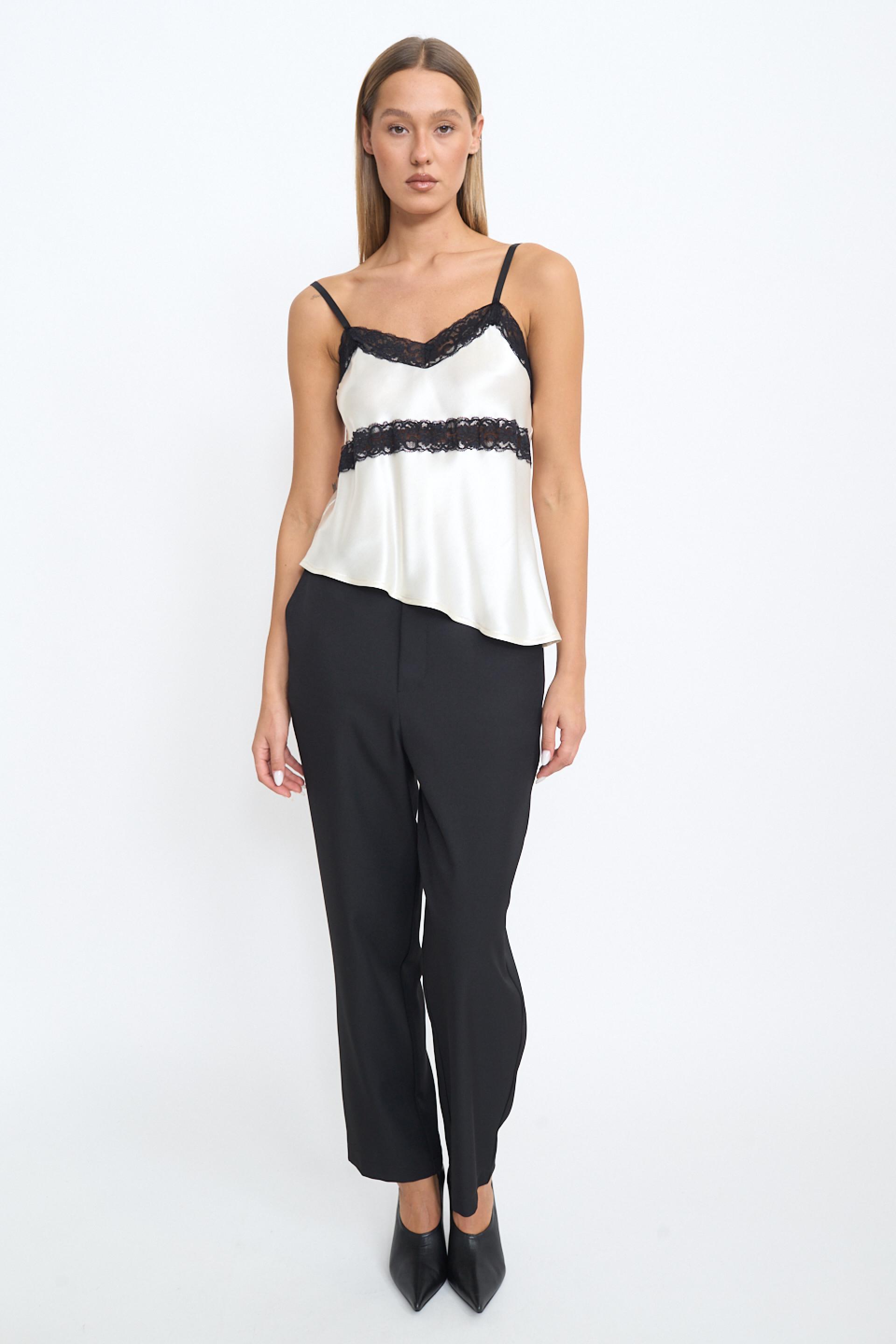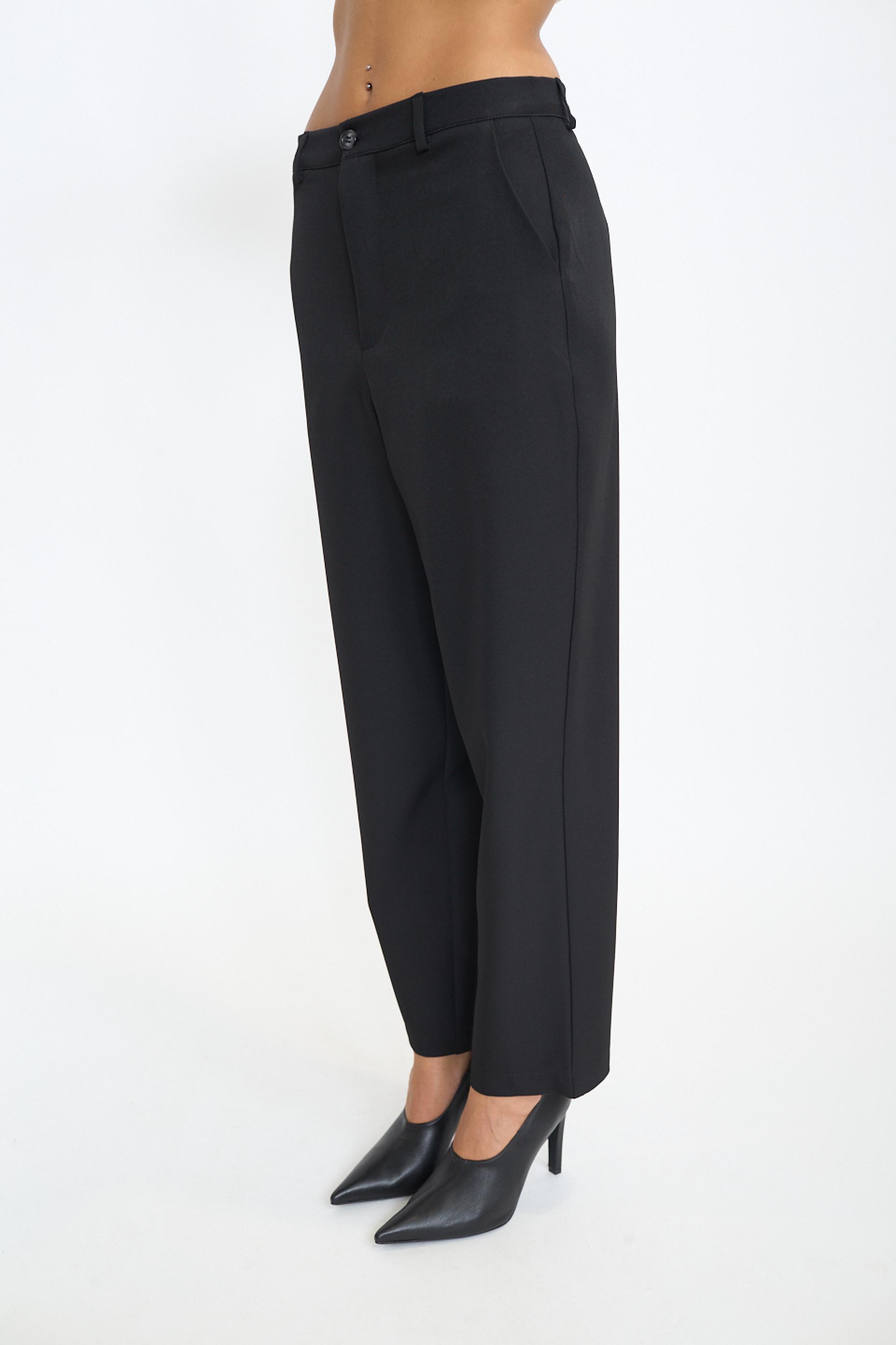 | Pantalone cicca con tasche laterali e passanti in vita. Chiusura tramite cerniera e bottone. | ||