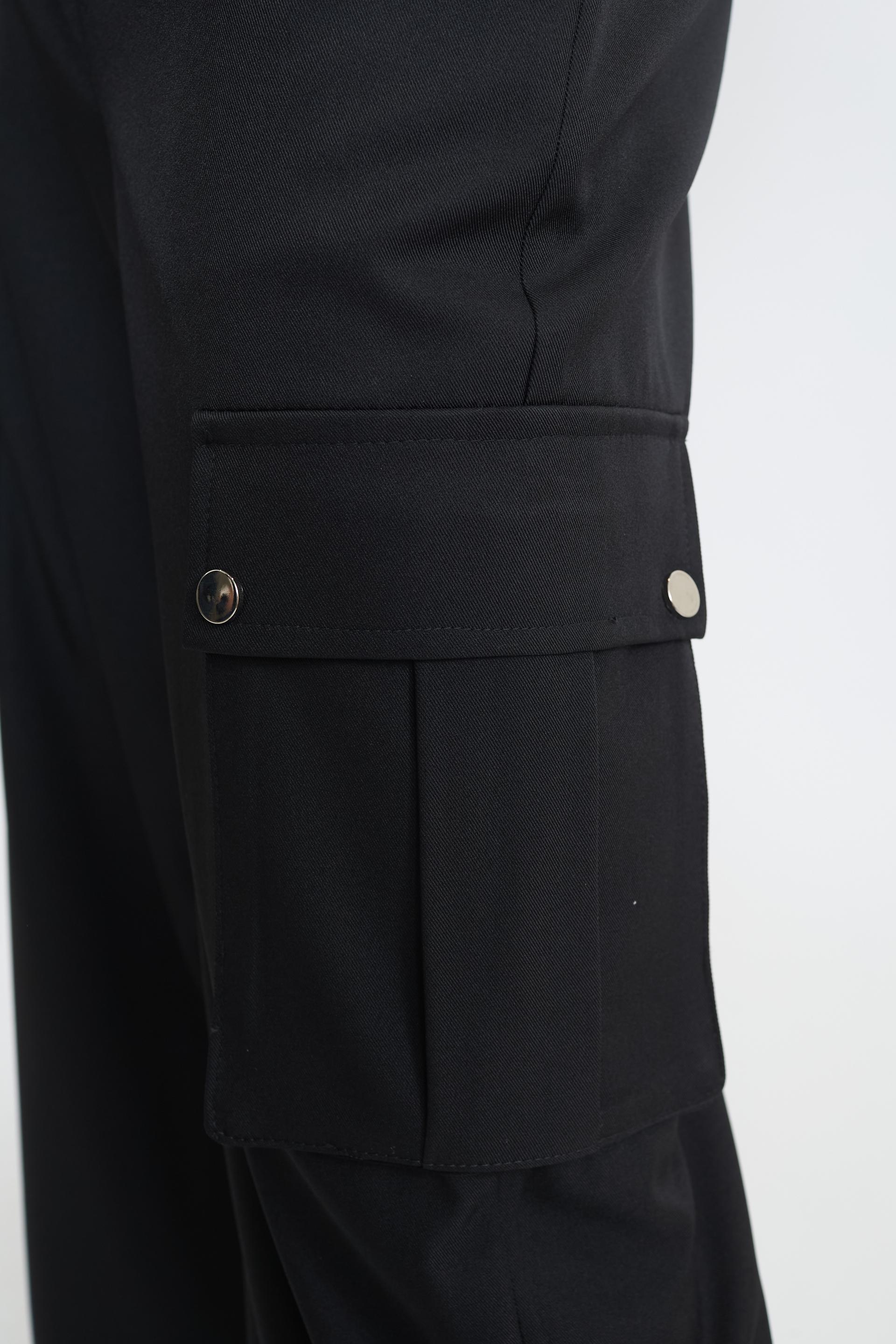 Pantalone tasconi con bottoni automatici metallici. Chiusura con zip e bottone automatico metallico. | ||