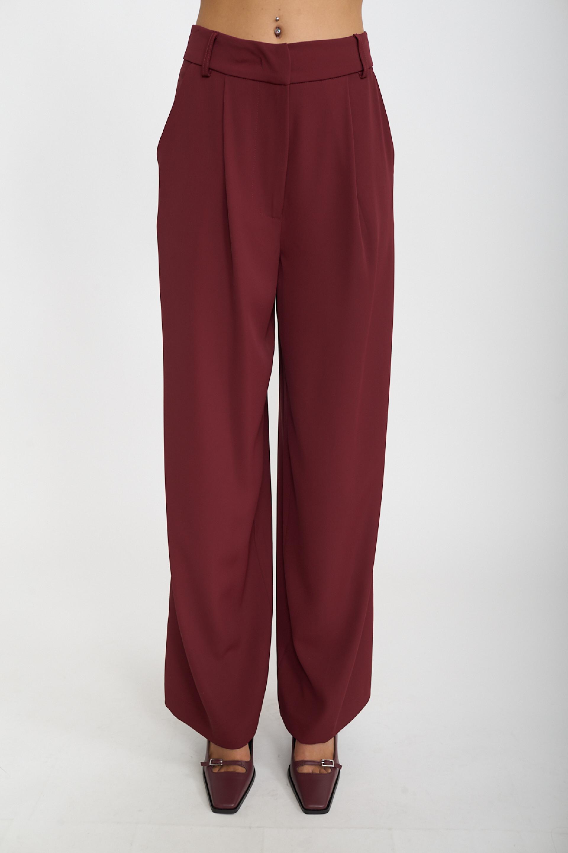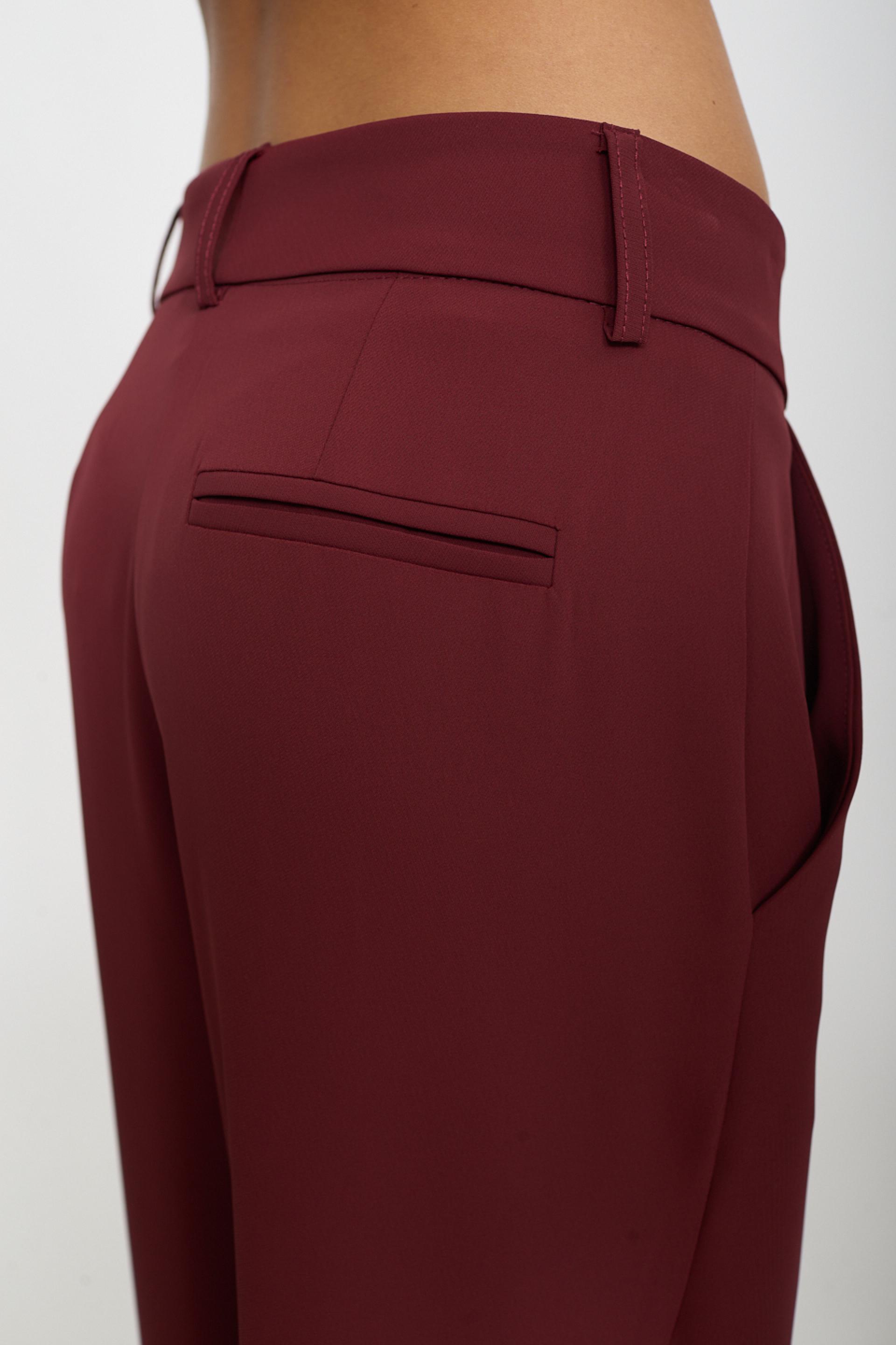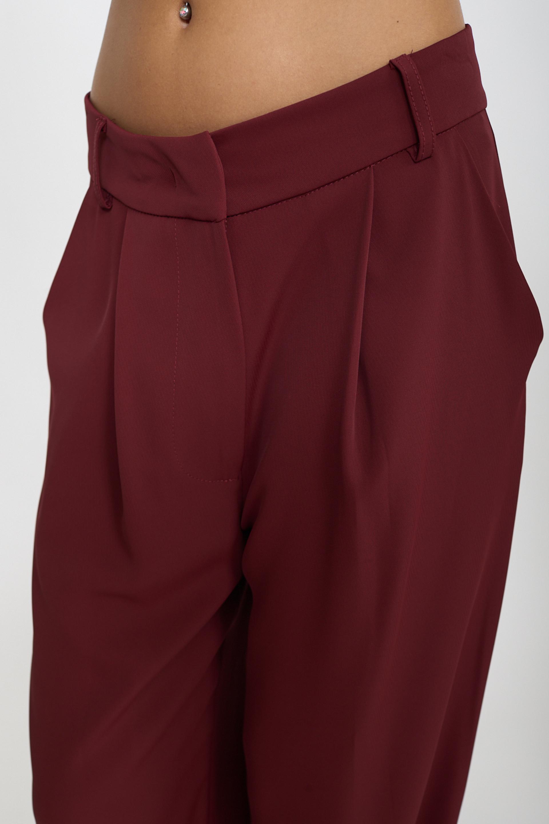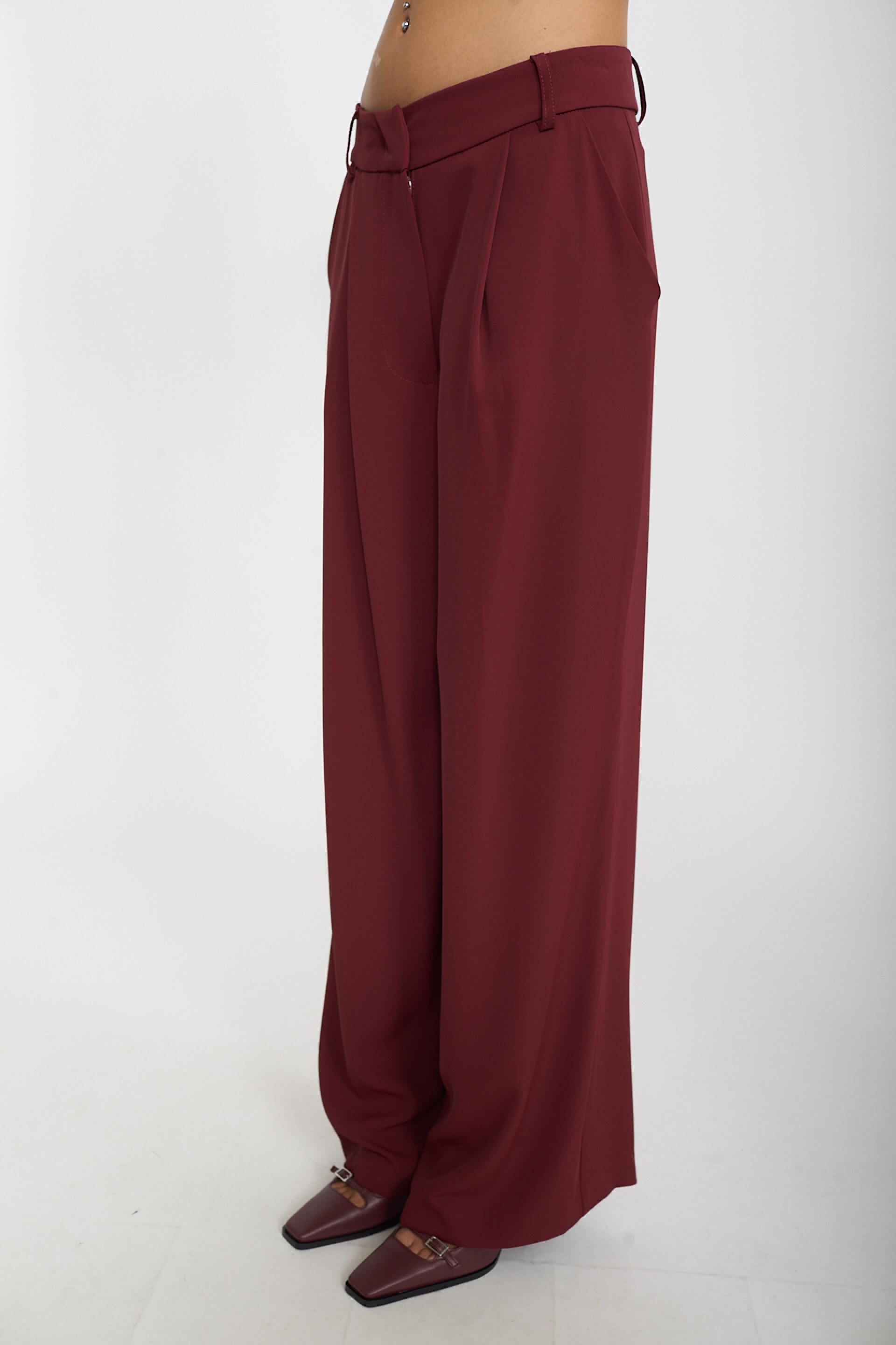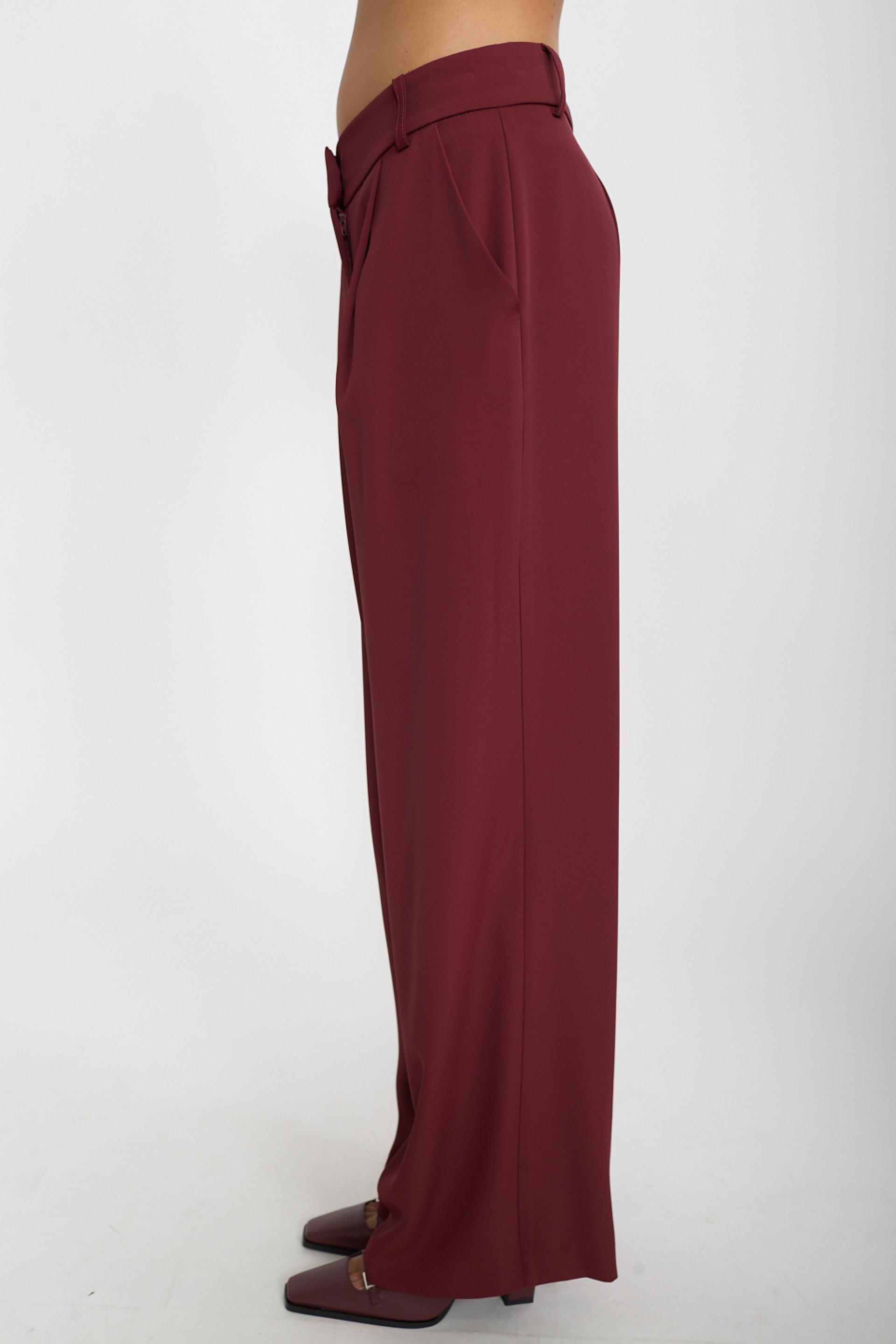 | Pantalone palazzo in tessuto fluido con piega. Tasche laterali, finto taschino posteriore a filetto e passanti in vita. Chiusura tramite cerniera e gancetto. | ||