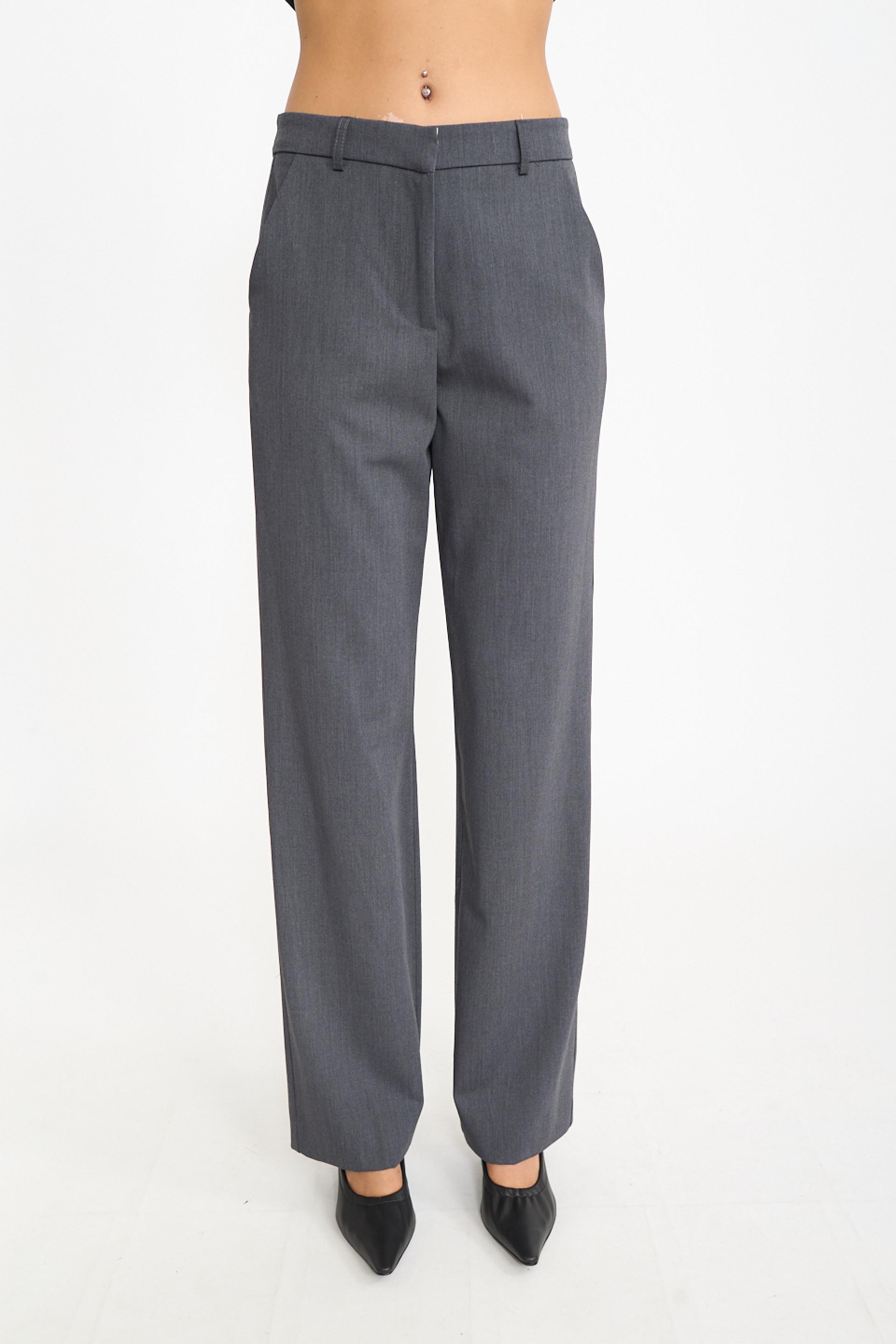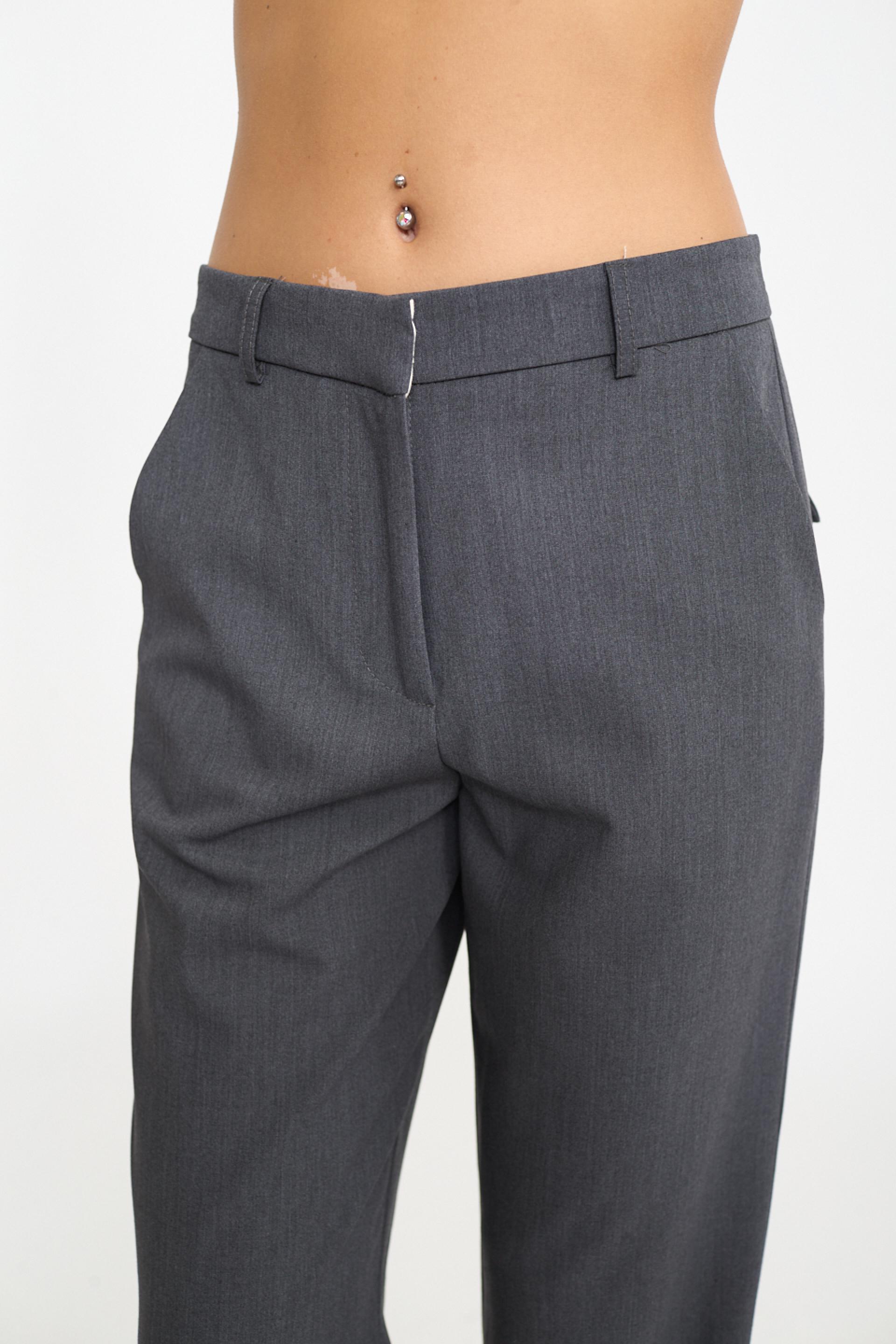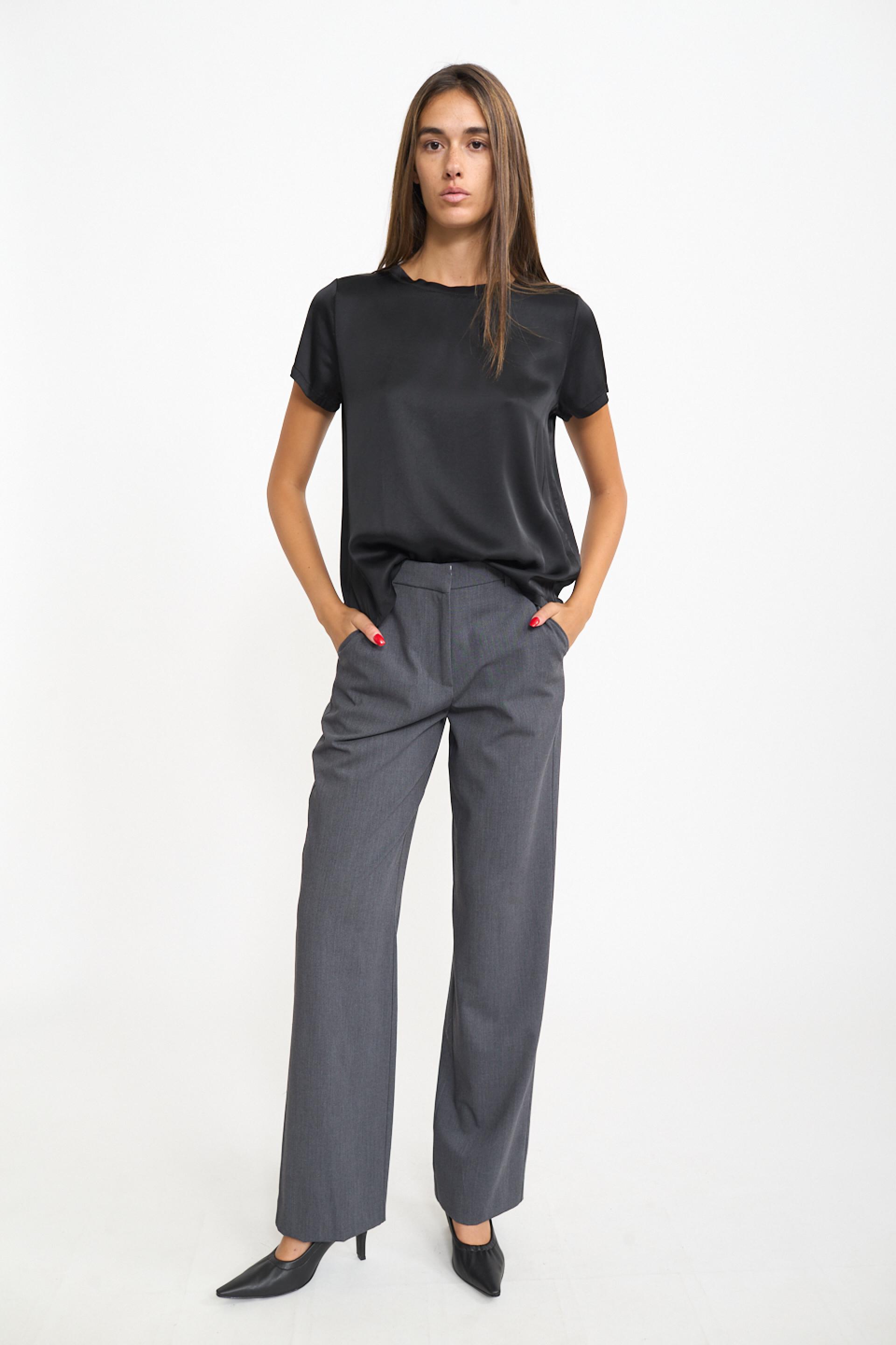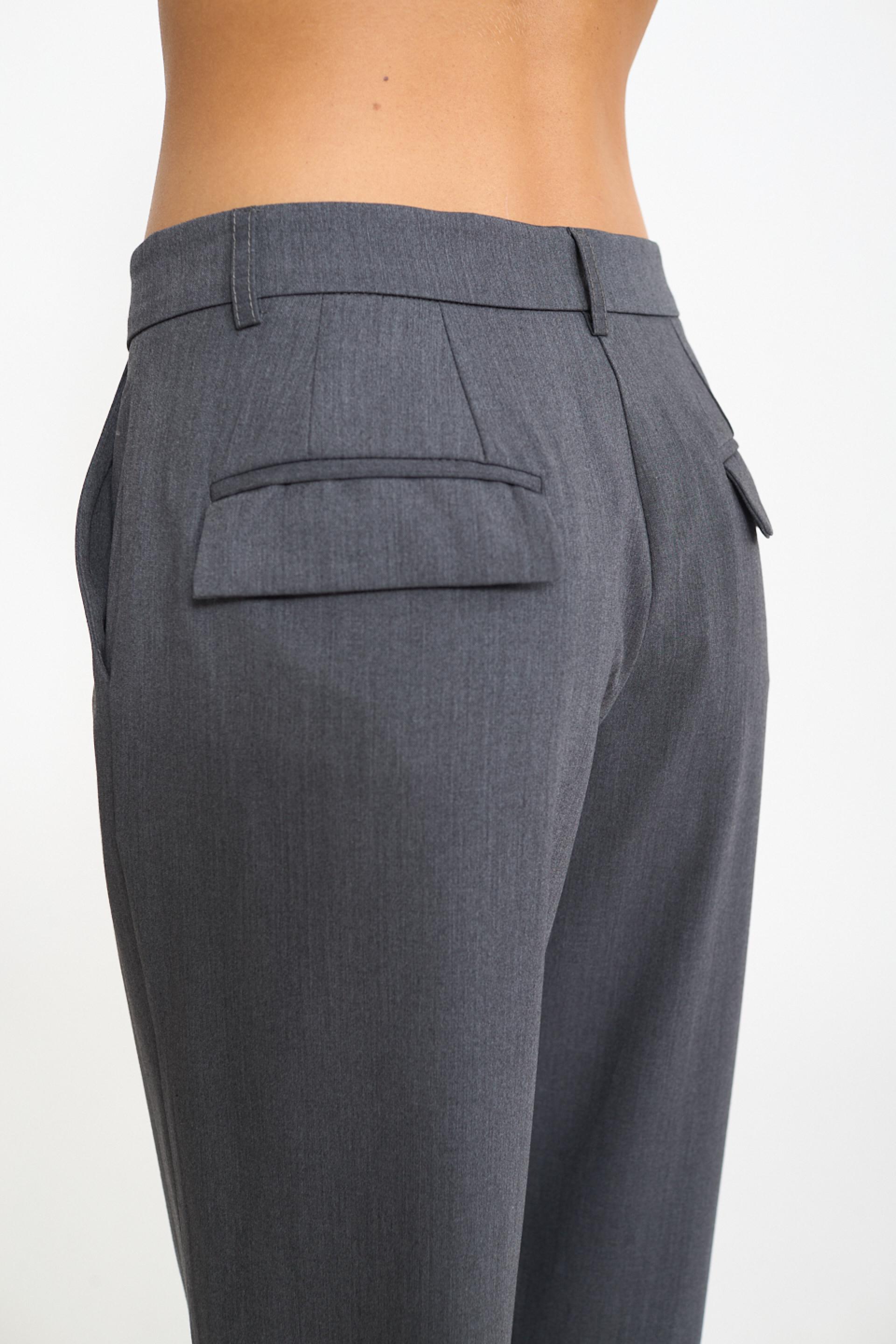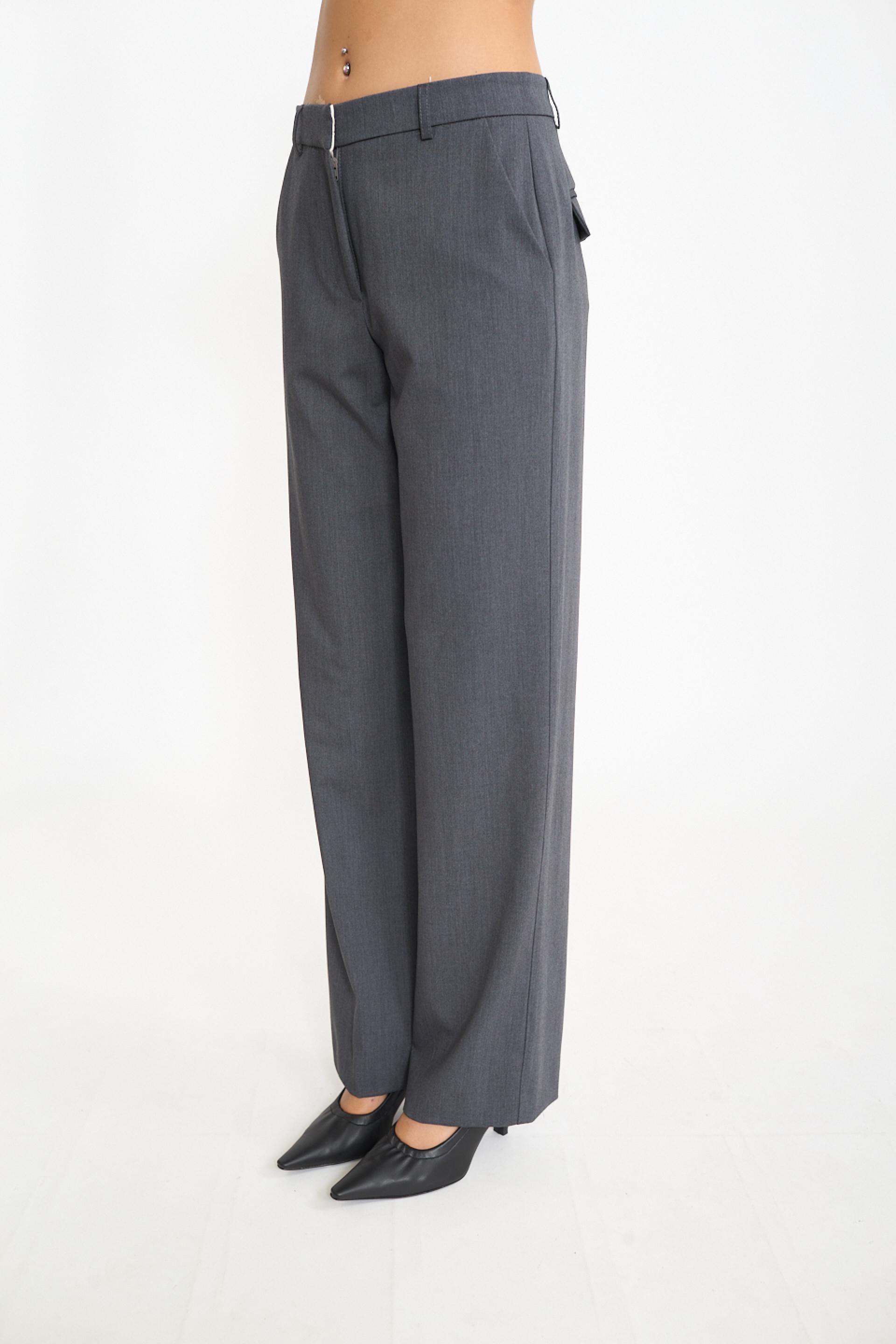 | Pantalone gamba dritta con tasche laterali e tasche posteriori con pattine. Dettaglio di tessuto interno doppiato in vita. Passanti in vita e chiusura tramite cerniera e gancetto. | ||