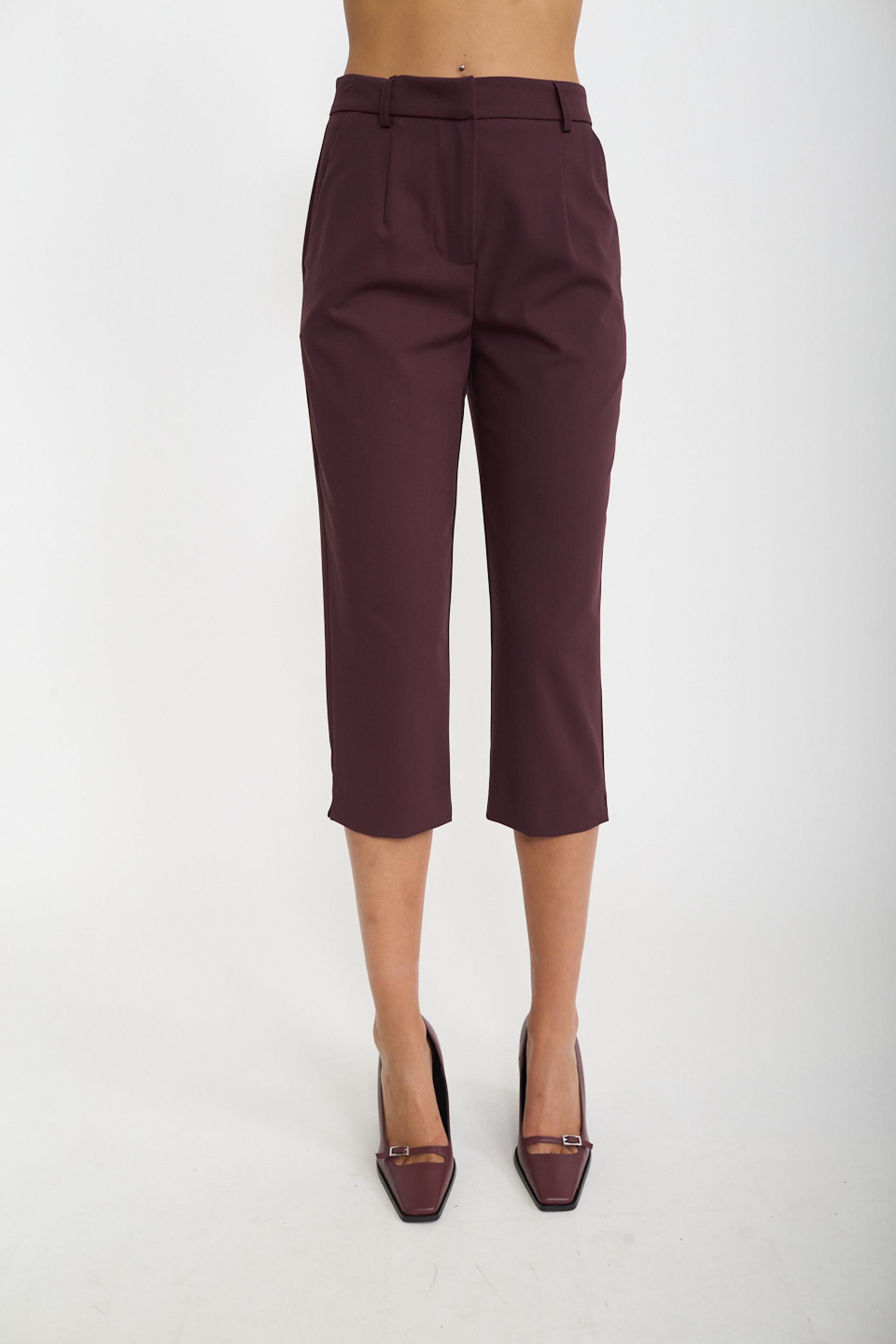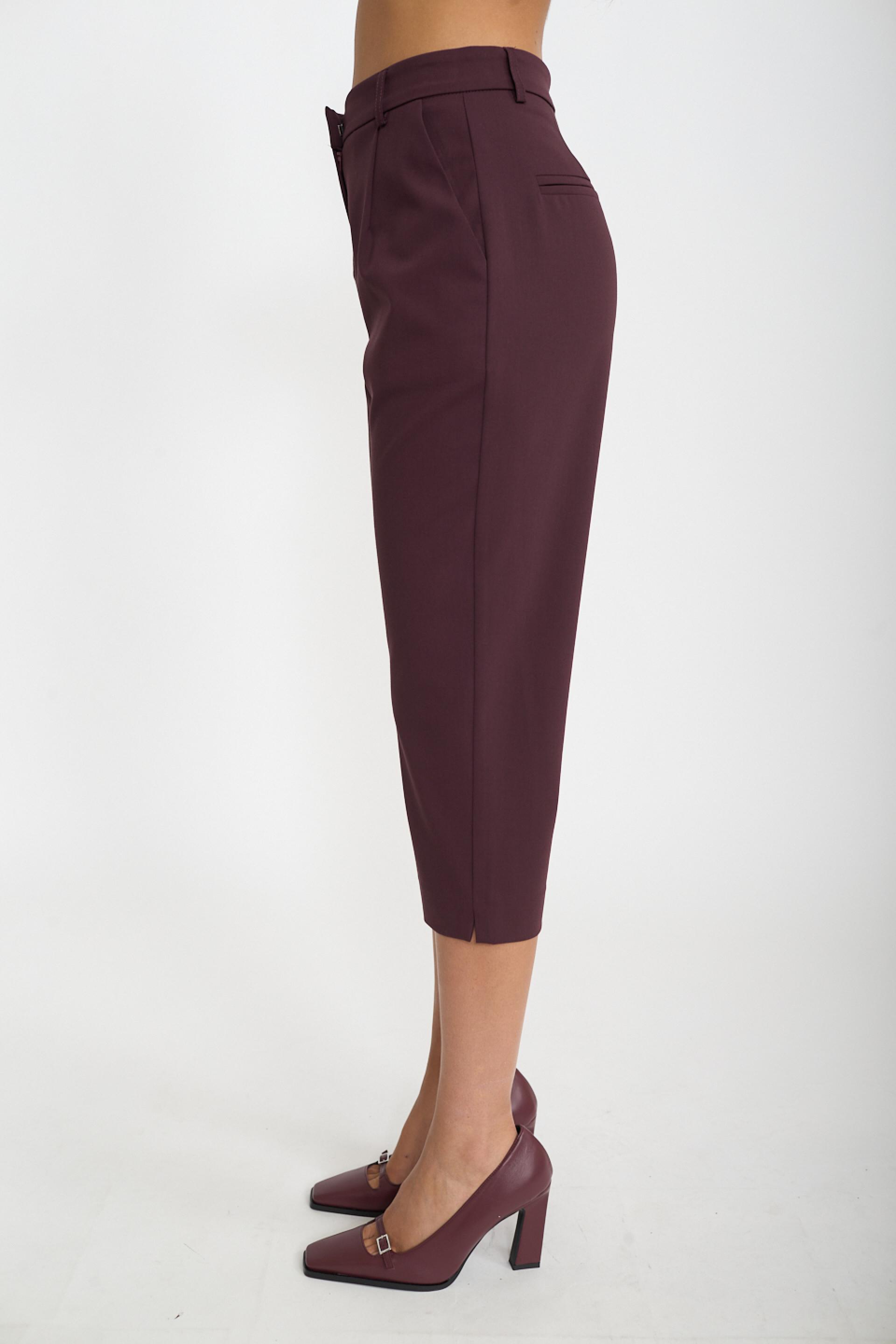 | Panta-pinocchietto con pince e spacchetto. Tasche laterali e finte tasche posteriori a filetto. Passanti in vita. Chiusura tramite cerniera e gancetto. | ||