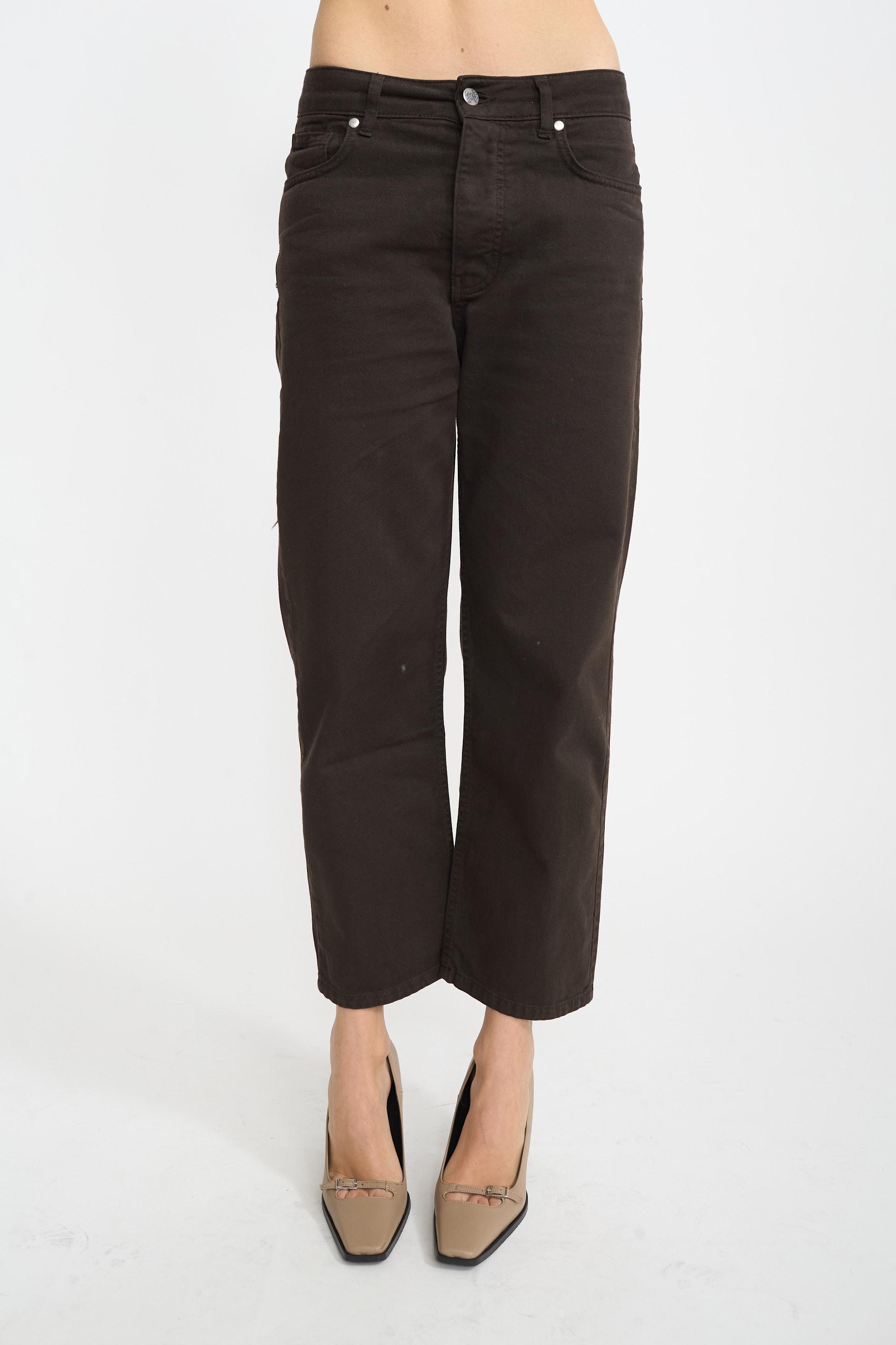 | Jeans gamba dritta 5 tasche in cotone tinta unita. Targhetta posteriore loggata in cuoio e chiusura tramite bottoni metallici. | ||