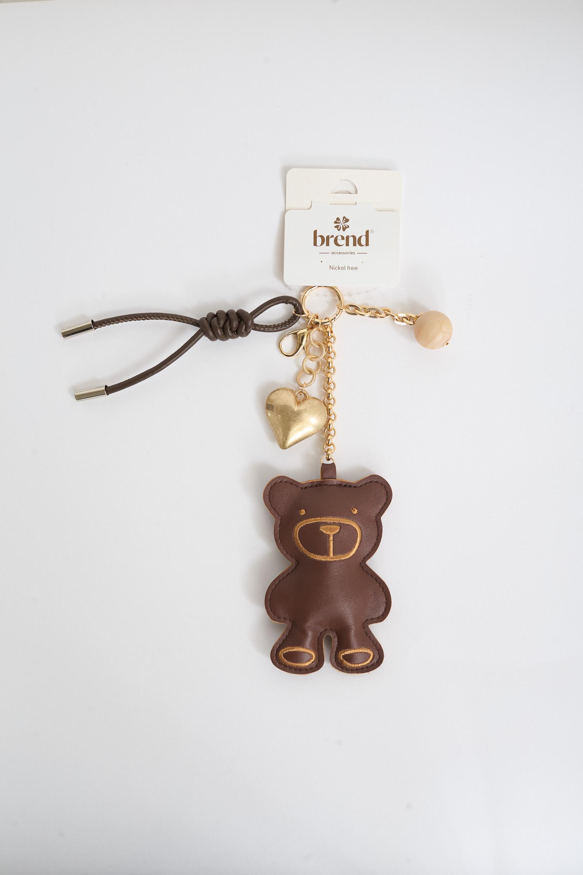 | Portachiave con Teddy effetto pelle e charms cuore e sfera. | ||