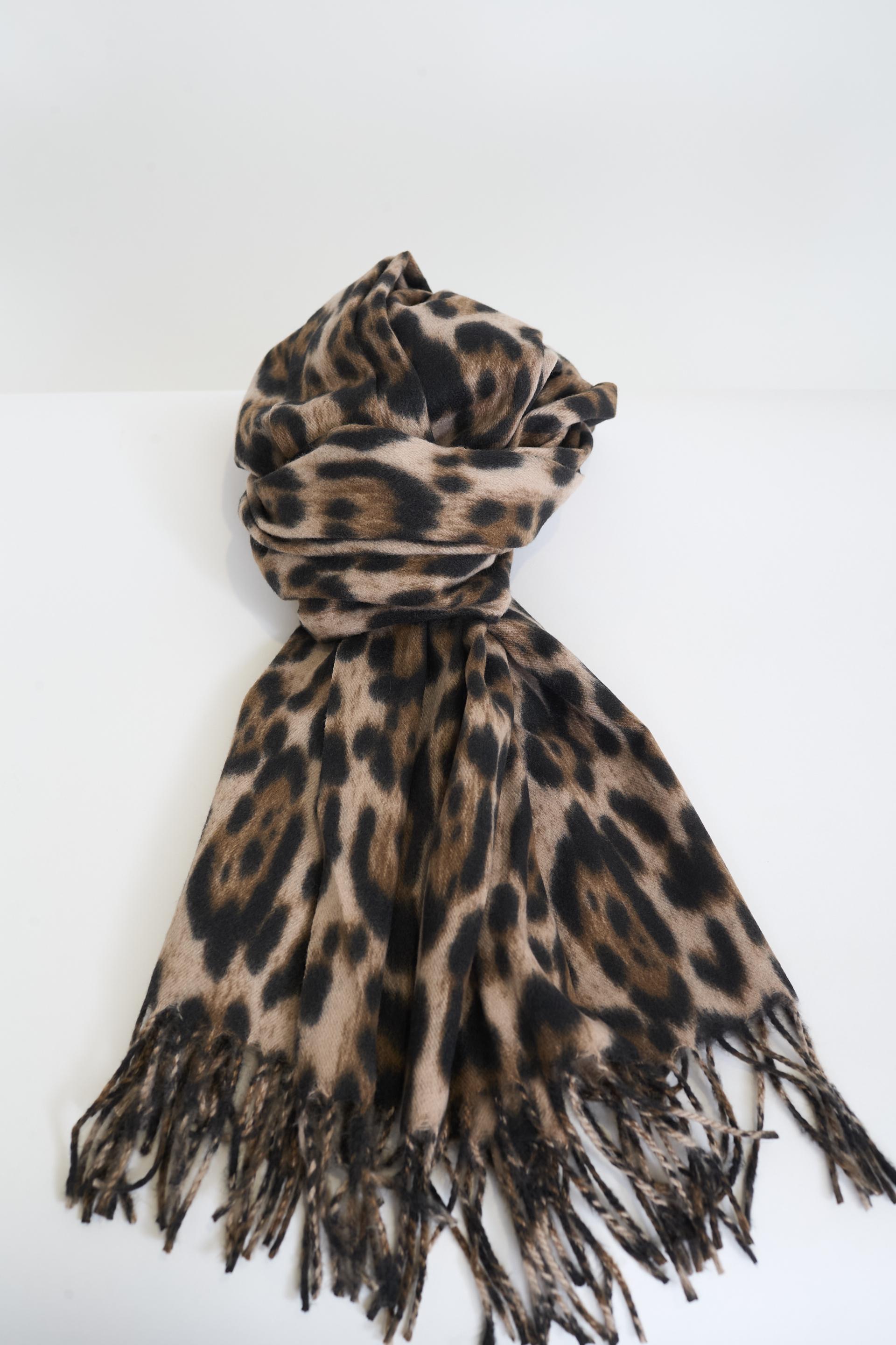 Sciarpa stampa maculata con frange. | ||