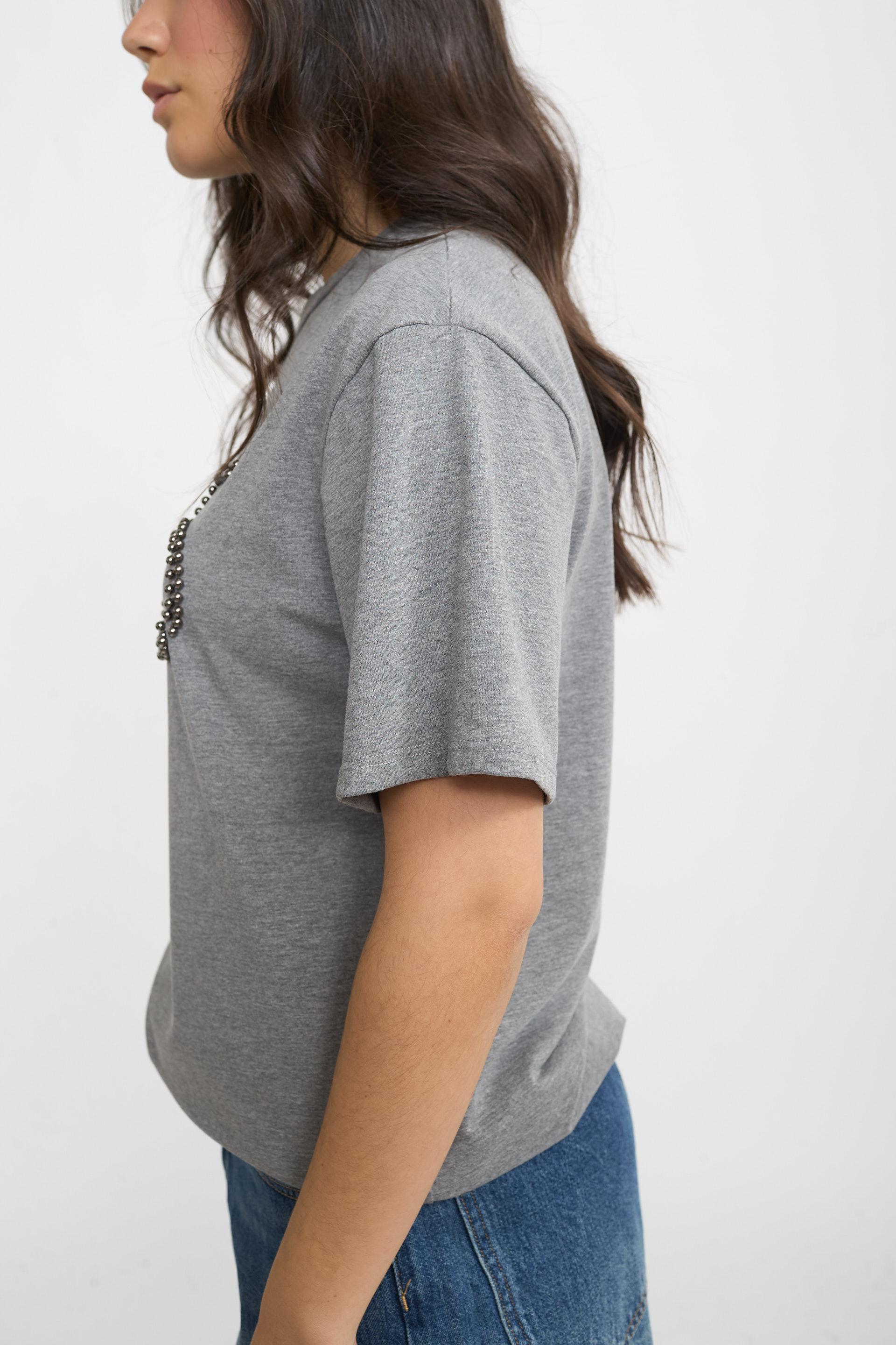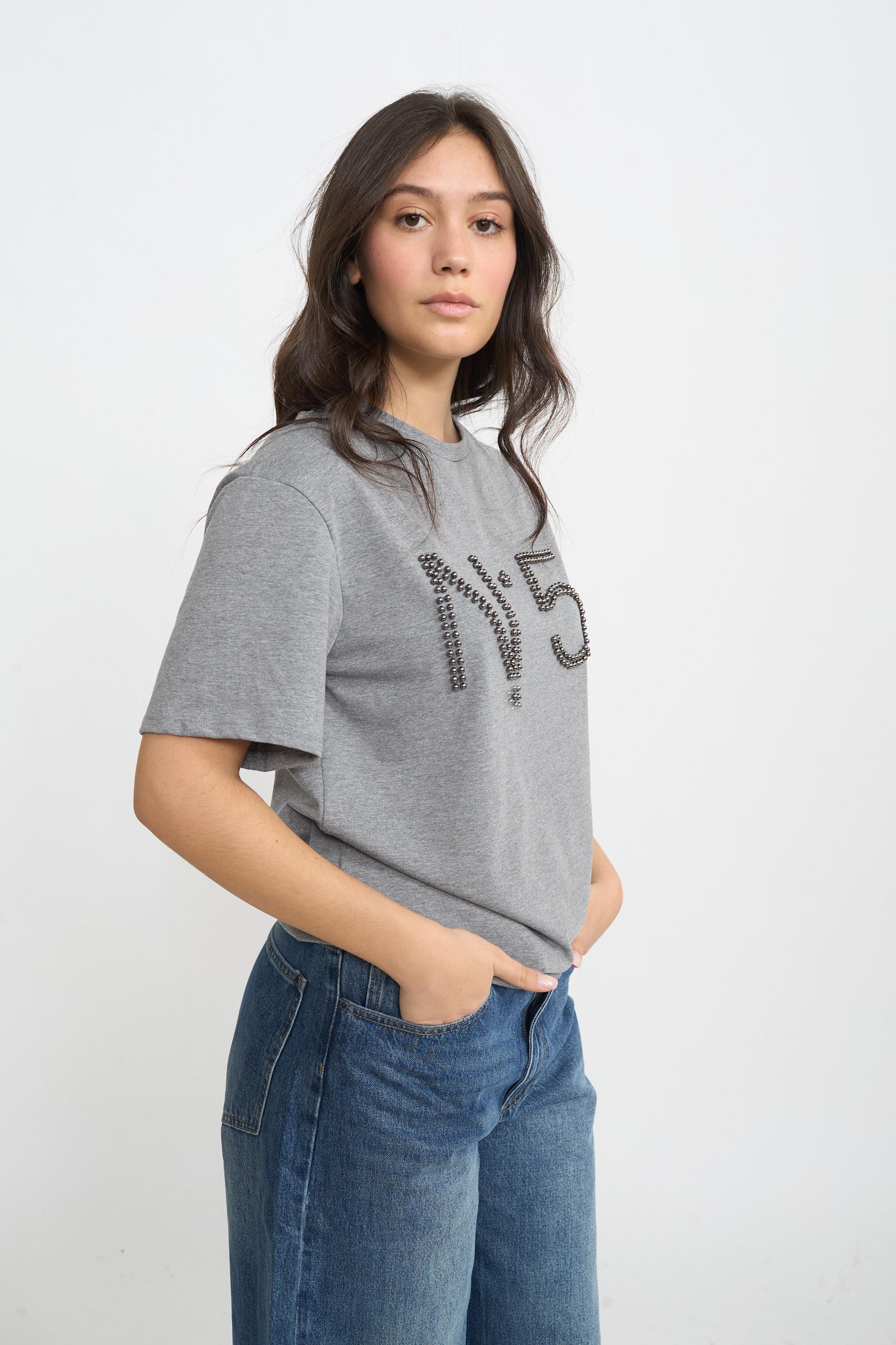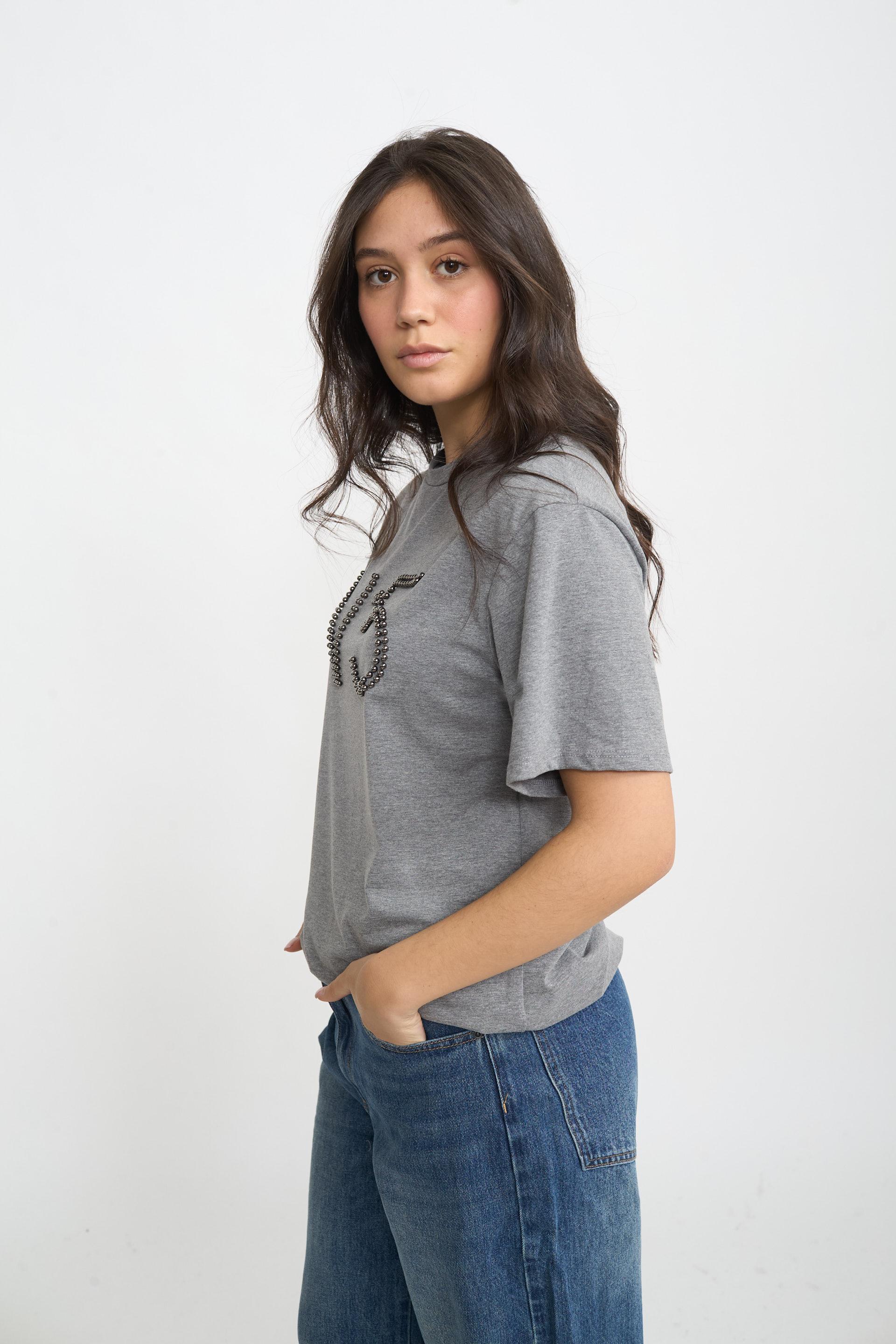 | T-shirt in viscosa tinta unita con dettaglio applicazioni borchie n.5. | ||