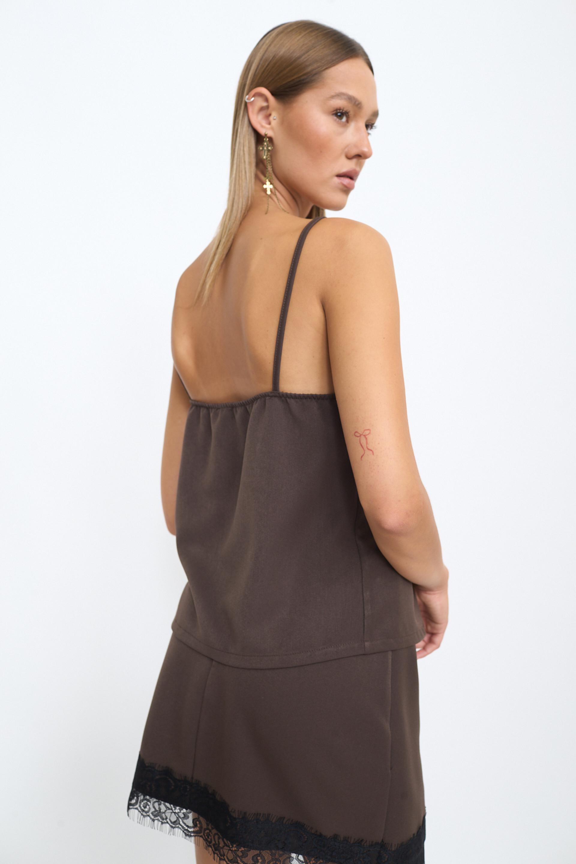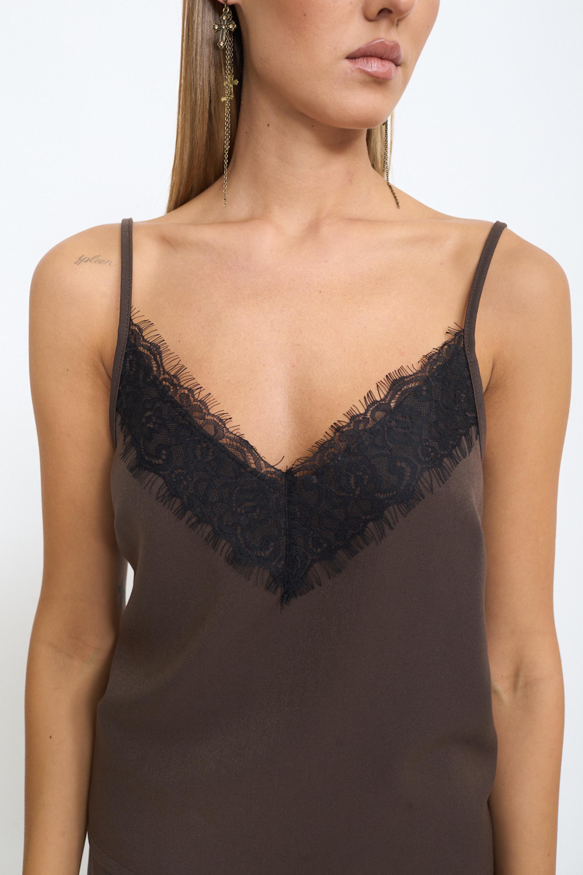 | Top con bretelline e scollo a V con dettagli in pizzo. | ||