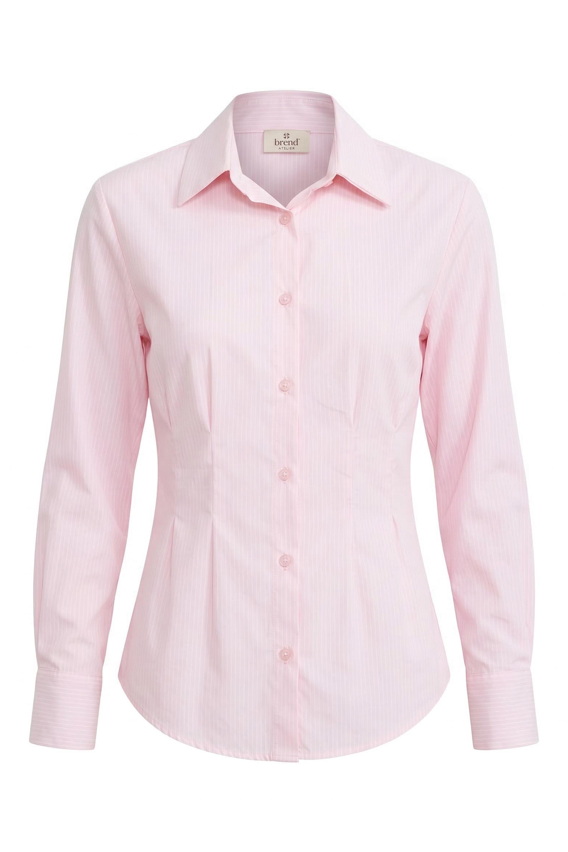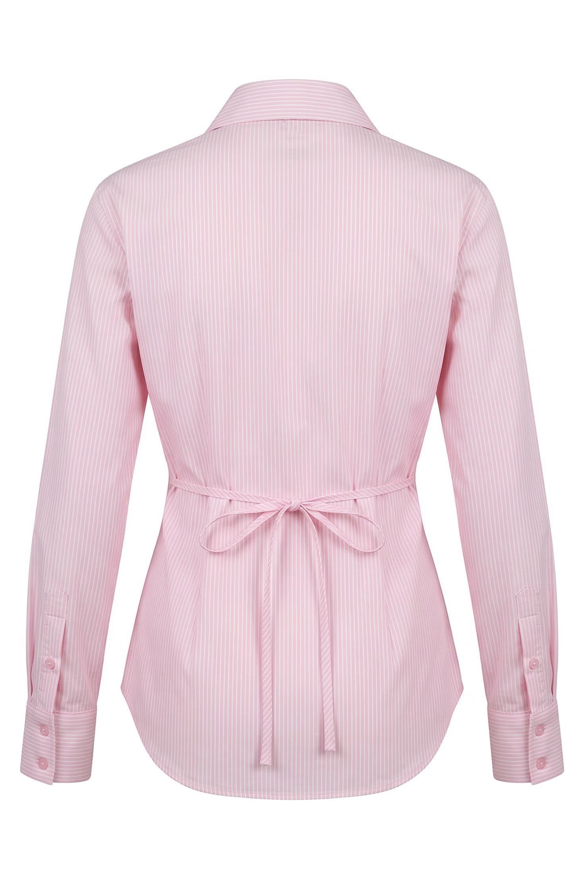 | Camicia in cotone rigato con cugni in vita e spalline imbottite. Dettaglio di laccio posteriore. Chiusura tramite bottoni tono su tono. | ||