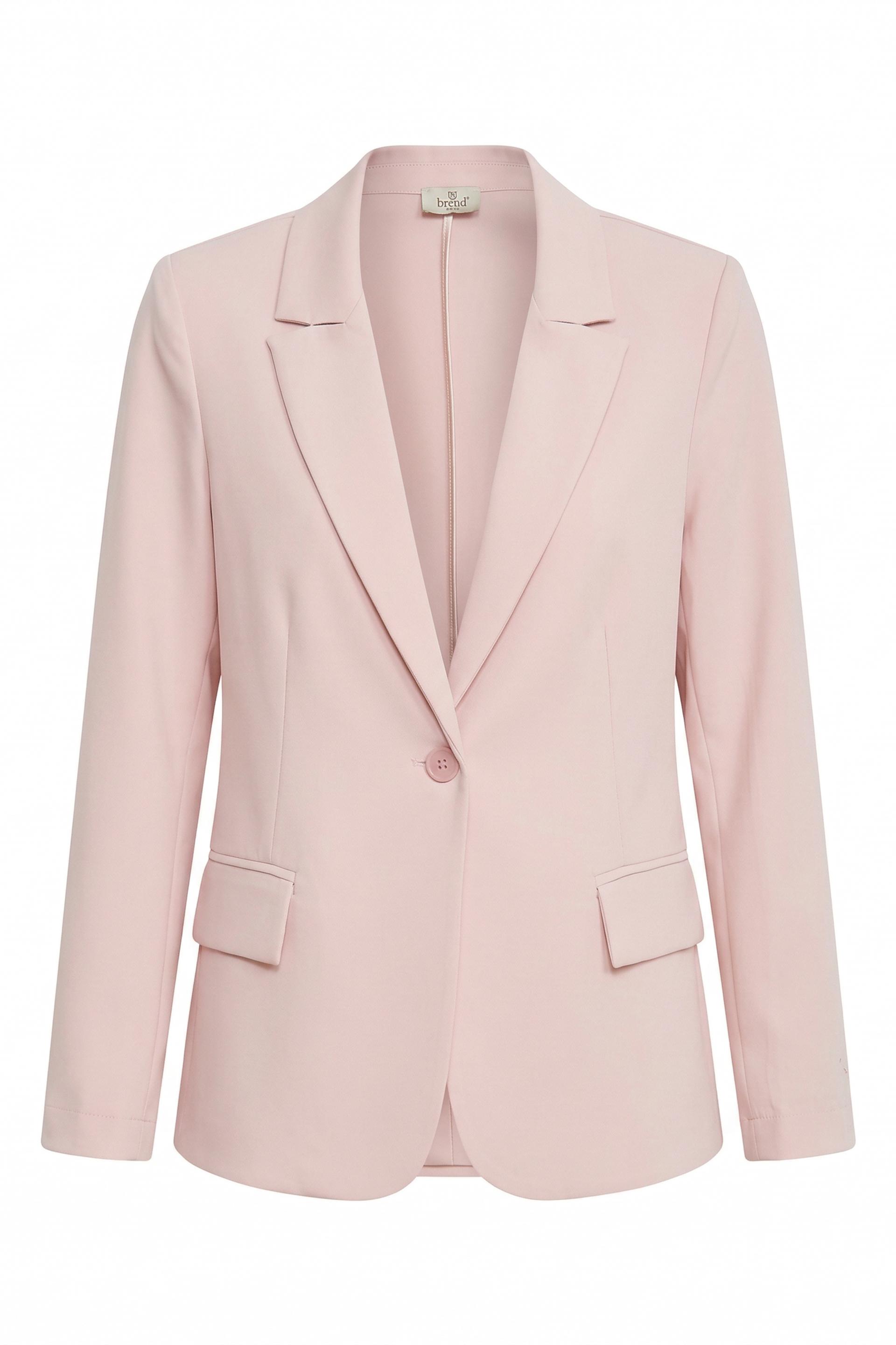 | Giacca 1 bottone in tessuto fluido con finte tasche con pattine. Spalline imbottite. | ||