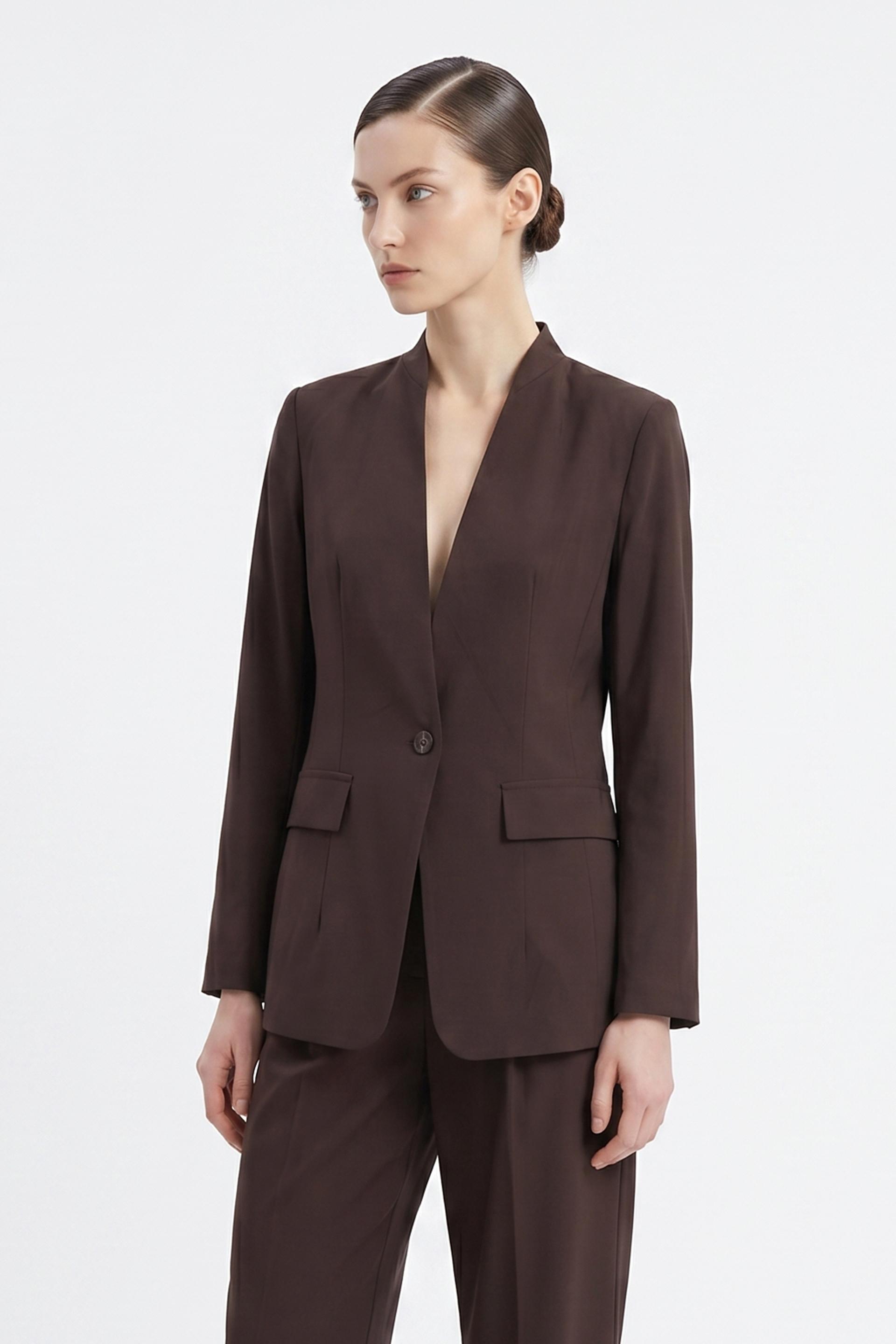 | Giacca 1 bottone pattine con spalline imbottite e fodera. | ||