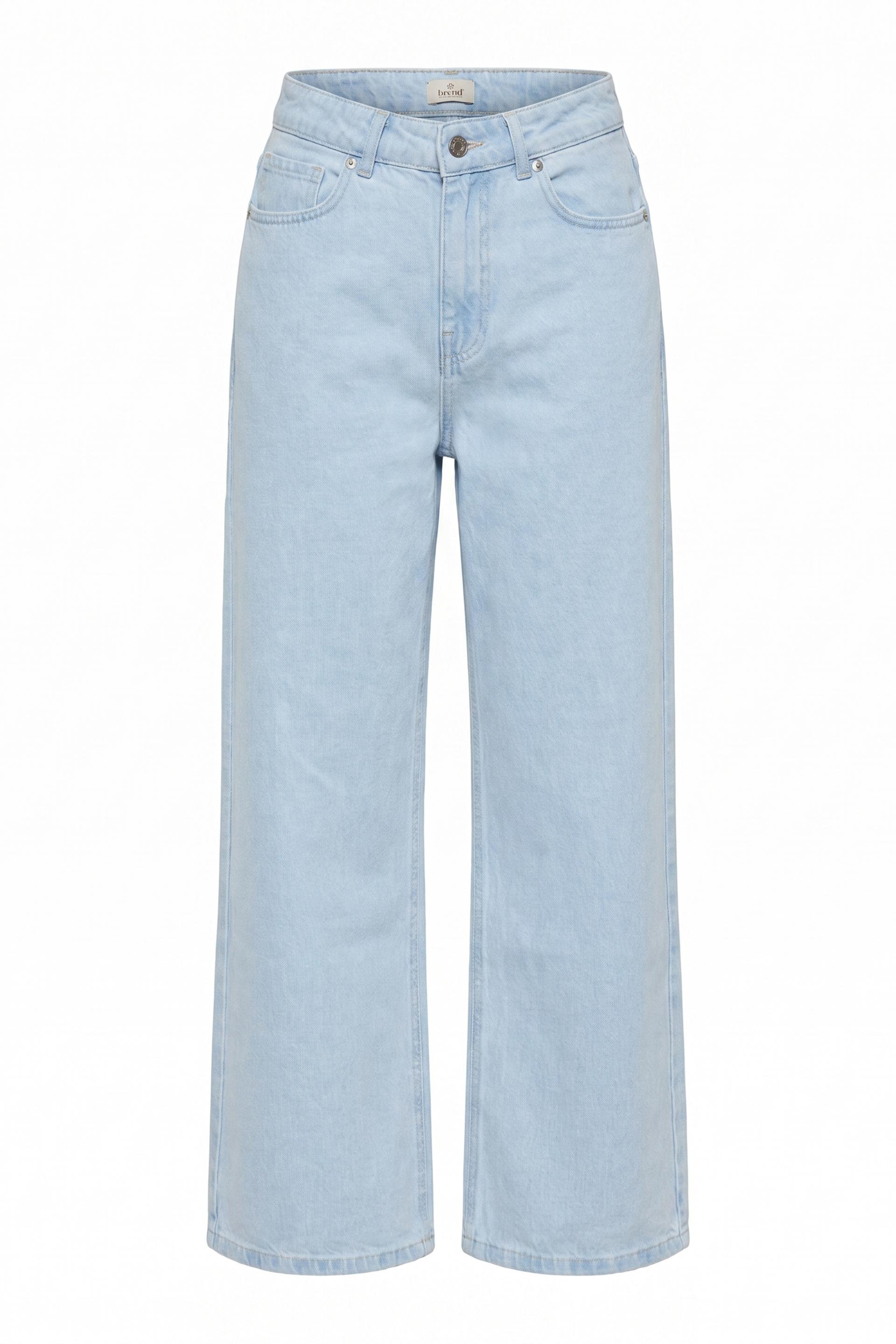 | Jeans gamba dritta 5 tasche in denim lavaggio chiaro. Targhetta posteriore loggata in cuoio. Chiusura tramite bottone metallico loggato e cerniera. | ||