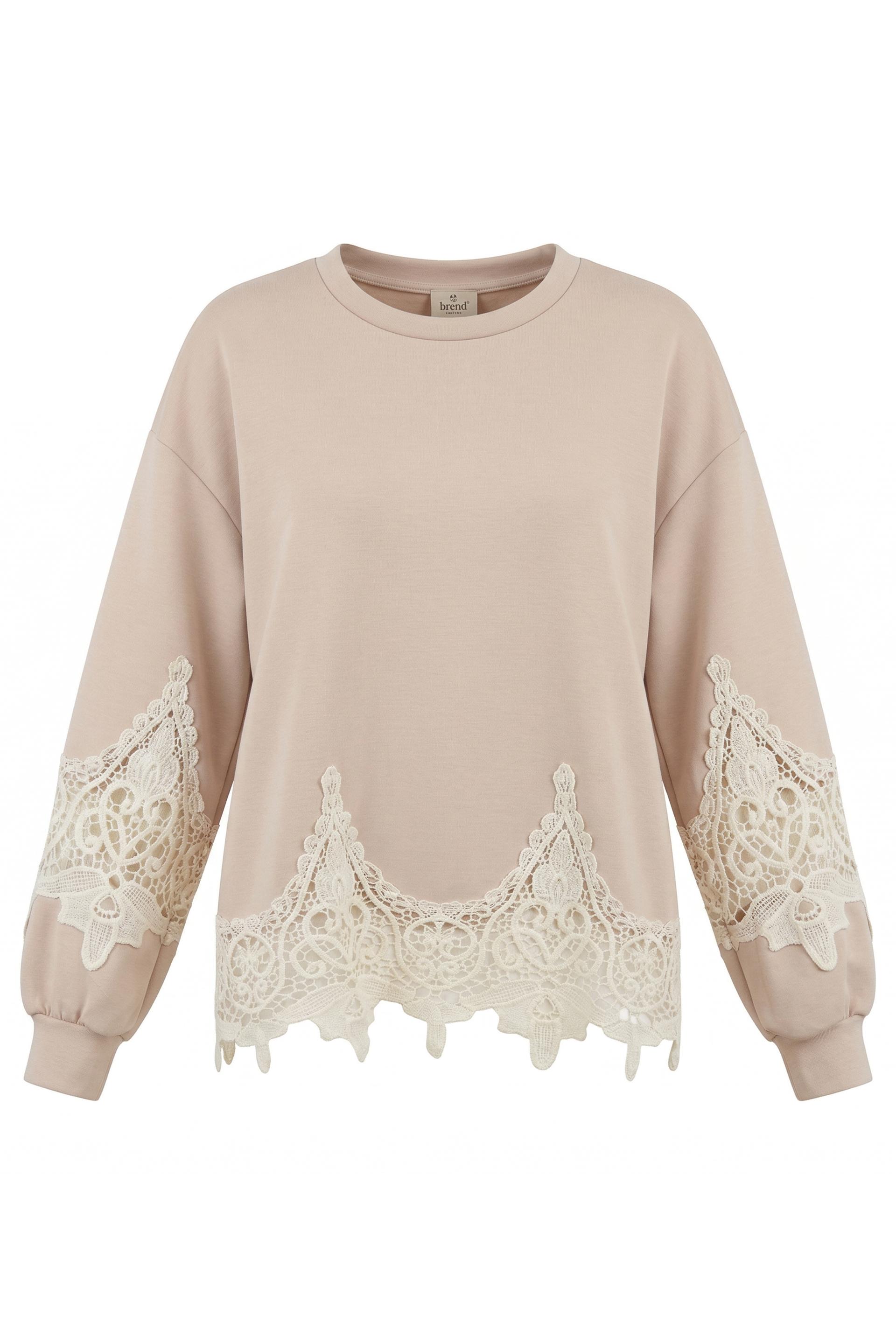 | Maglia in tessuto acetato con orlo in pizzo e fascia in pizzo sulle maniche. | ||