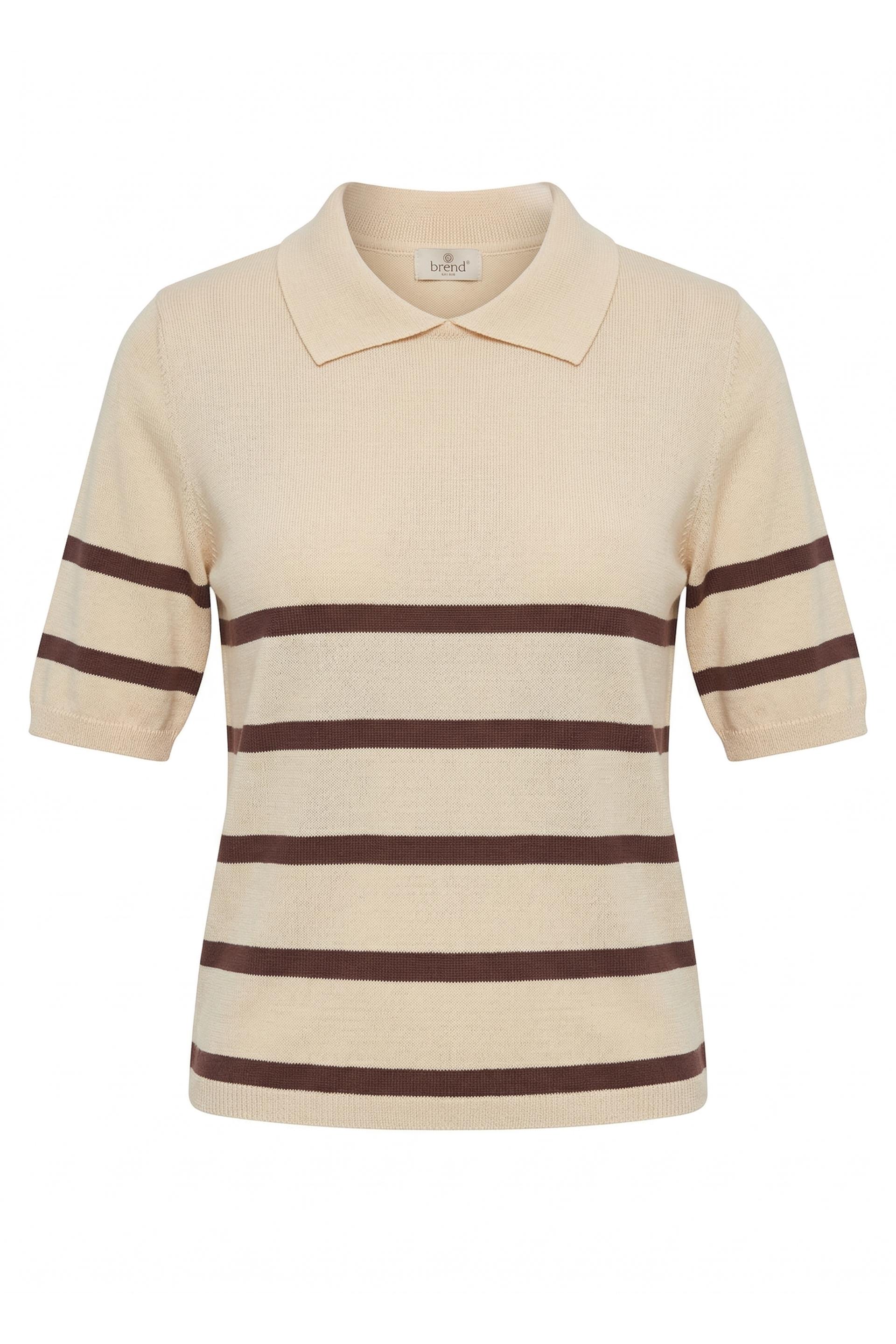 | Maglia 1/2 manica in viscosa con colletto polo. Dettaglio di righe a contrasto frontali. | ||