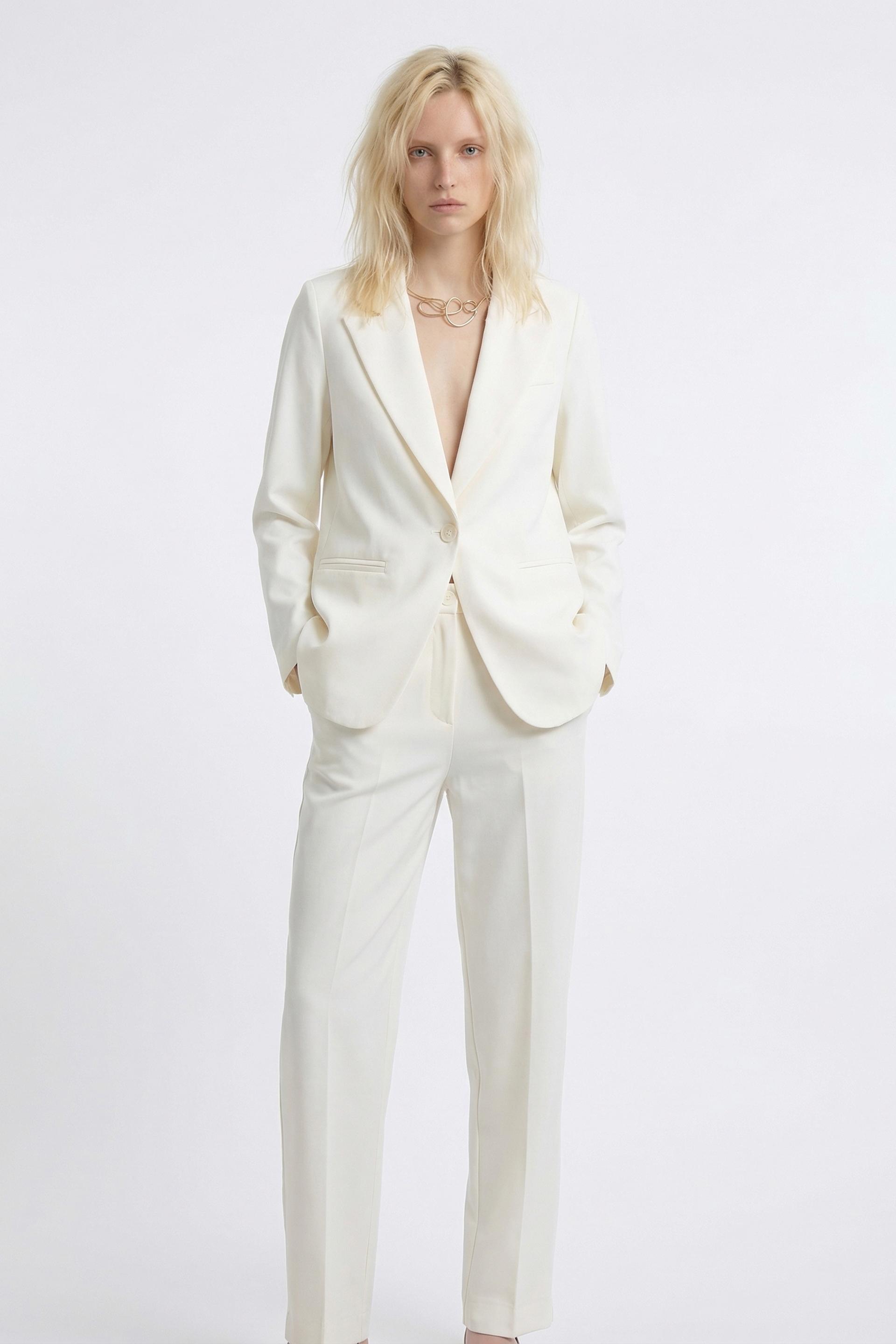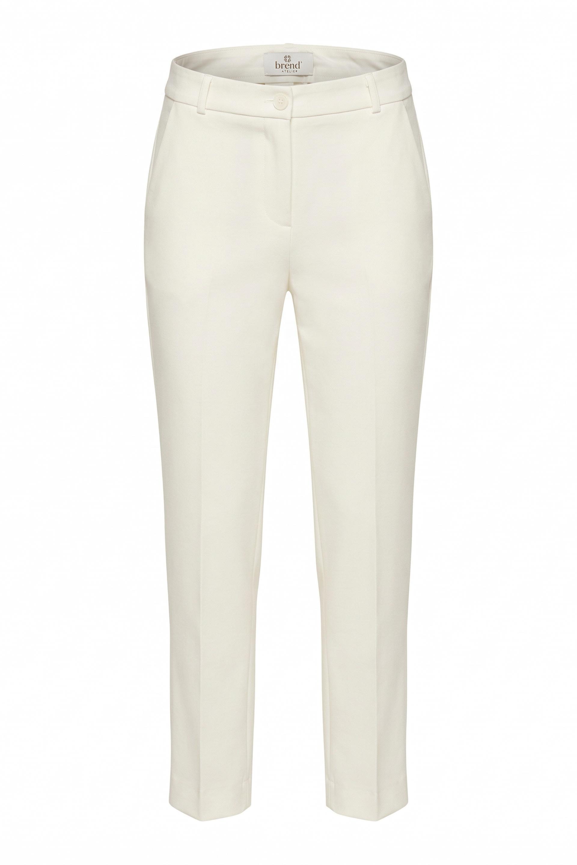 | Pantalone modello chinos i punto Milano con elastico posteriore e spacchetto. Tasche laterali e passanti in vita. Chiusura tramite bottone e cerniera. | ||
