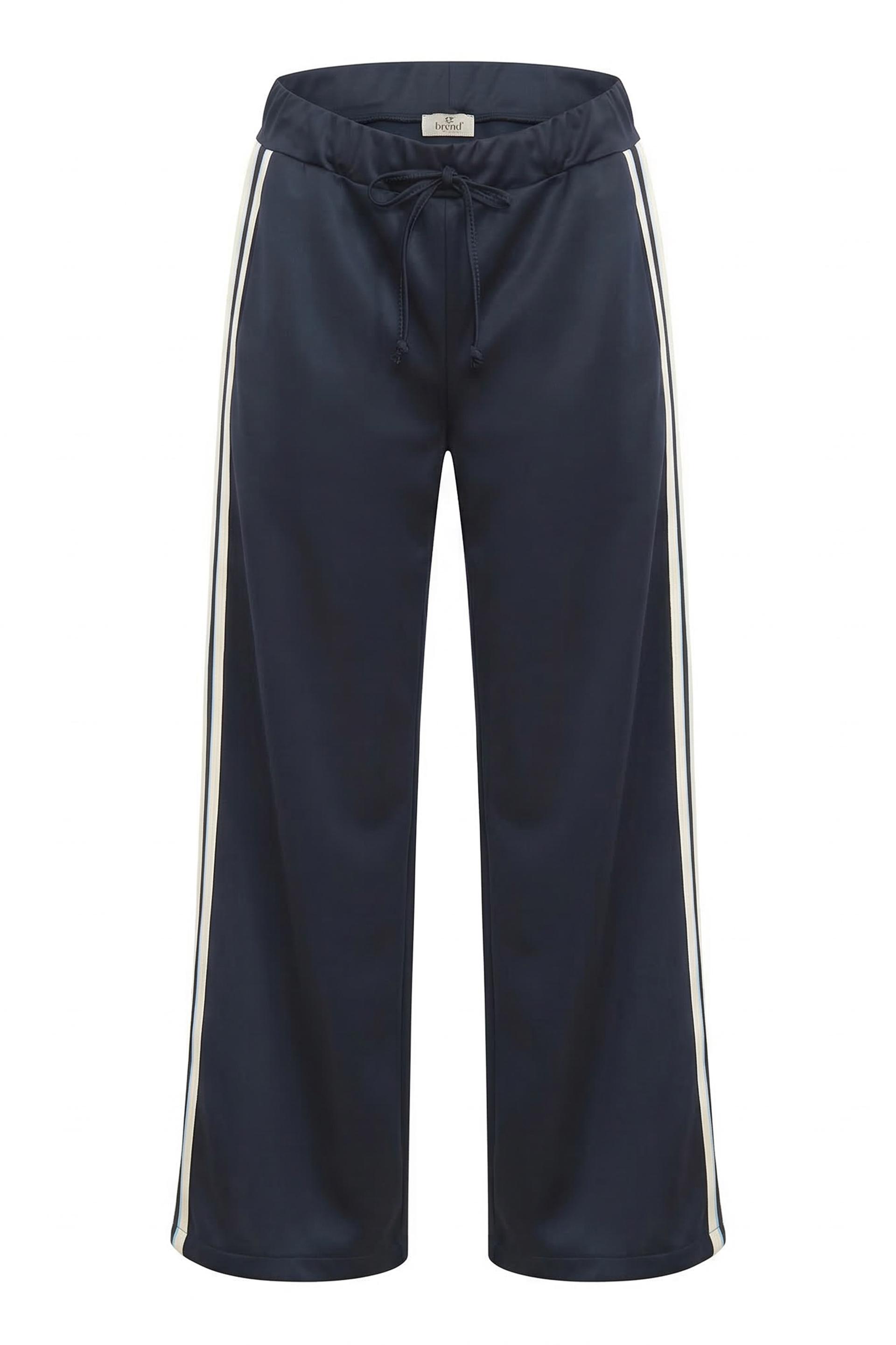 | Pantalone in felpa tessuto acetato con coulisse e tasche laterali. Dettaglio di bande laterali. | ||