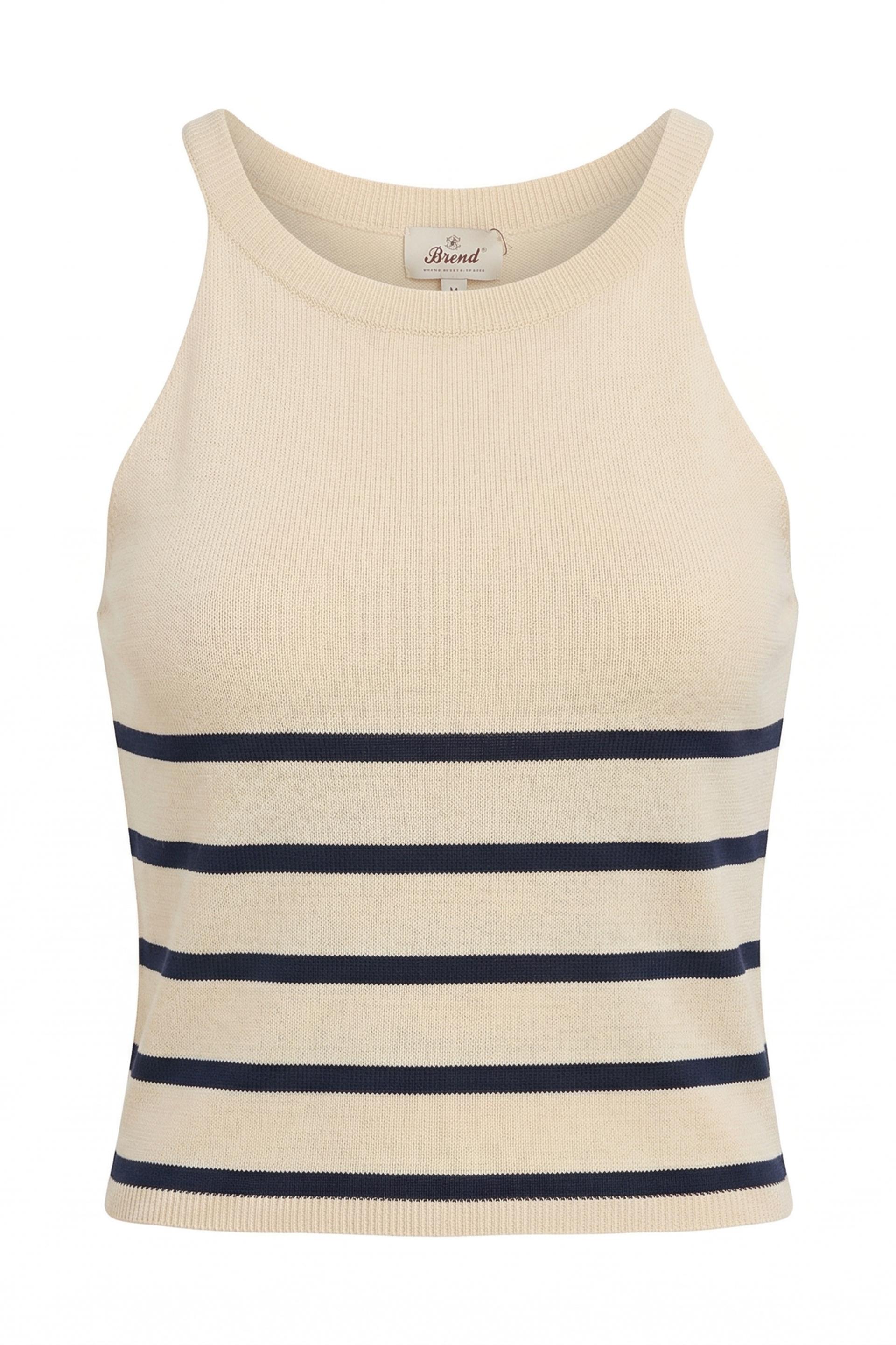 | Top in maglia di viscosa con dettaglio di righe a contrasto frontali. | ||