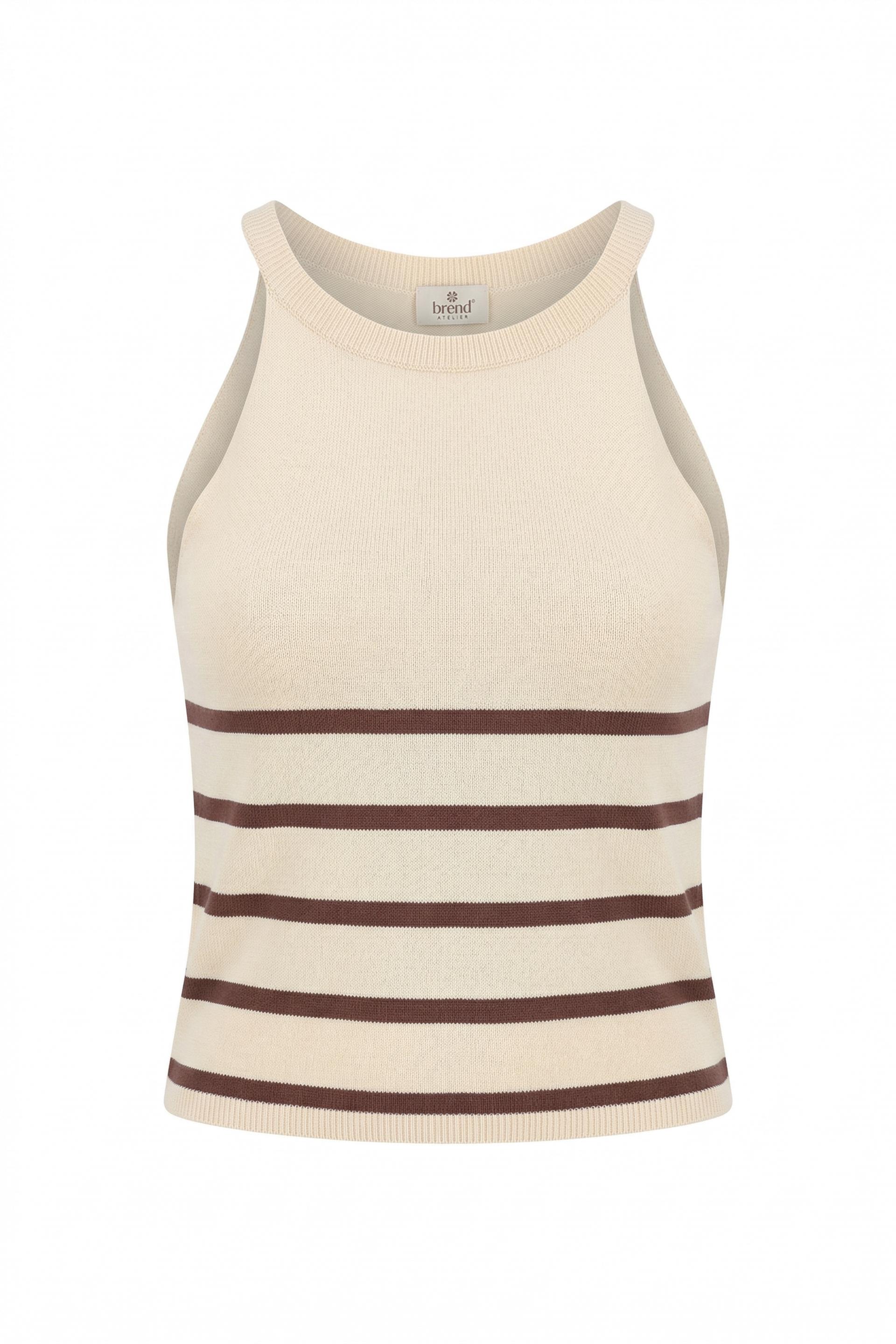 | Top in maglia di viscosa con dettaglio di righe a contrasto frontali. | ||