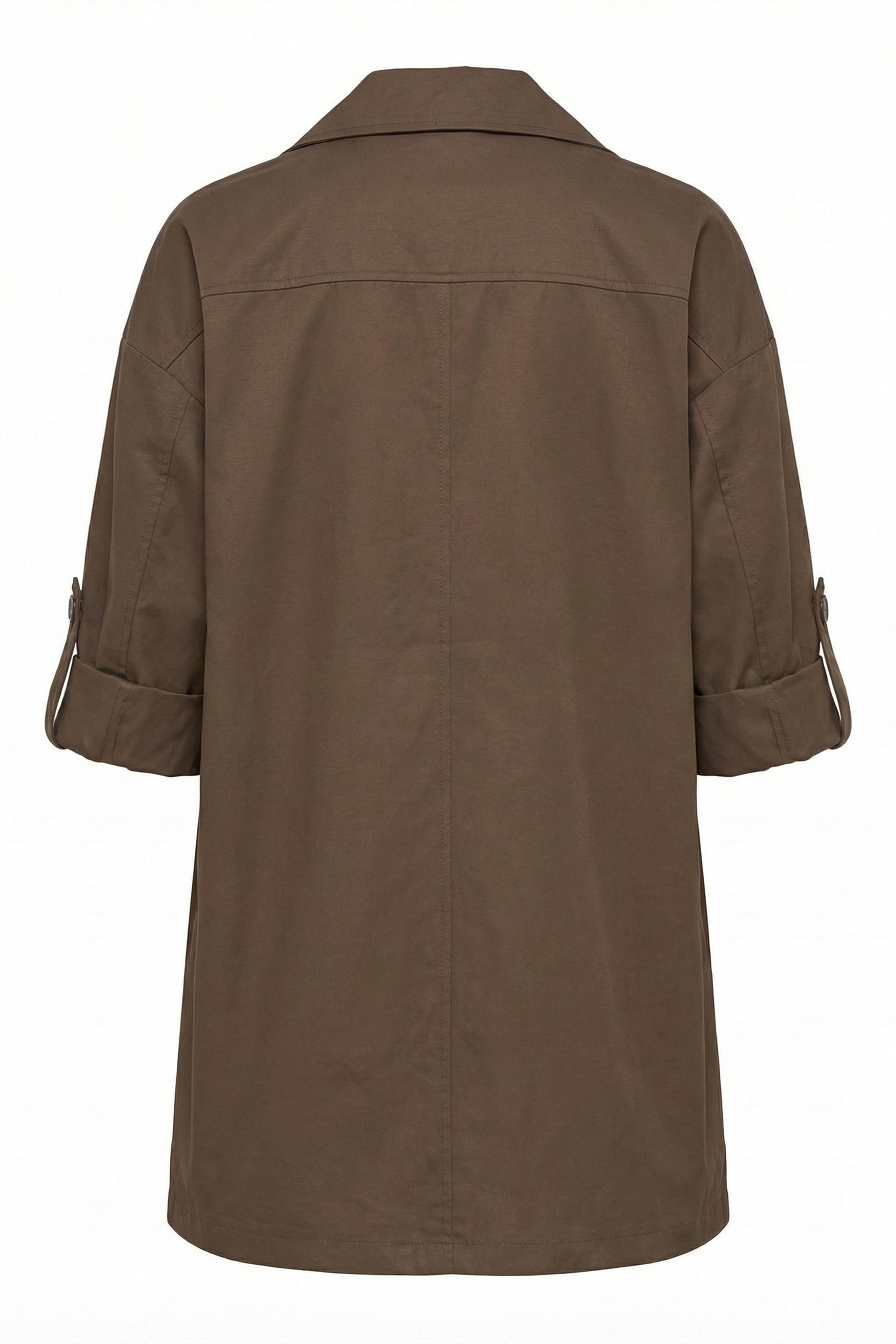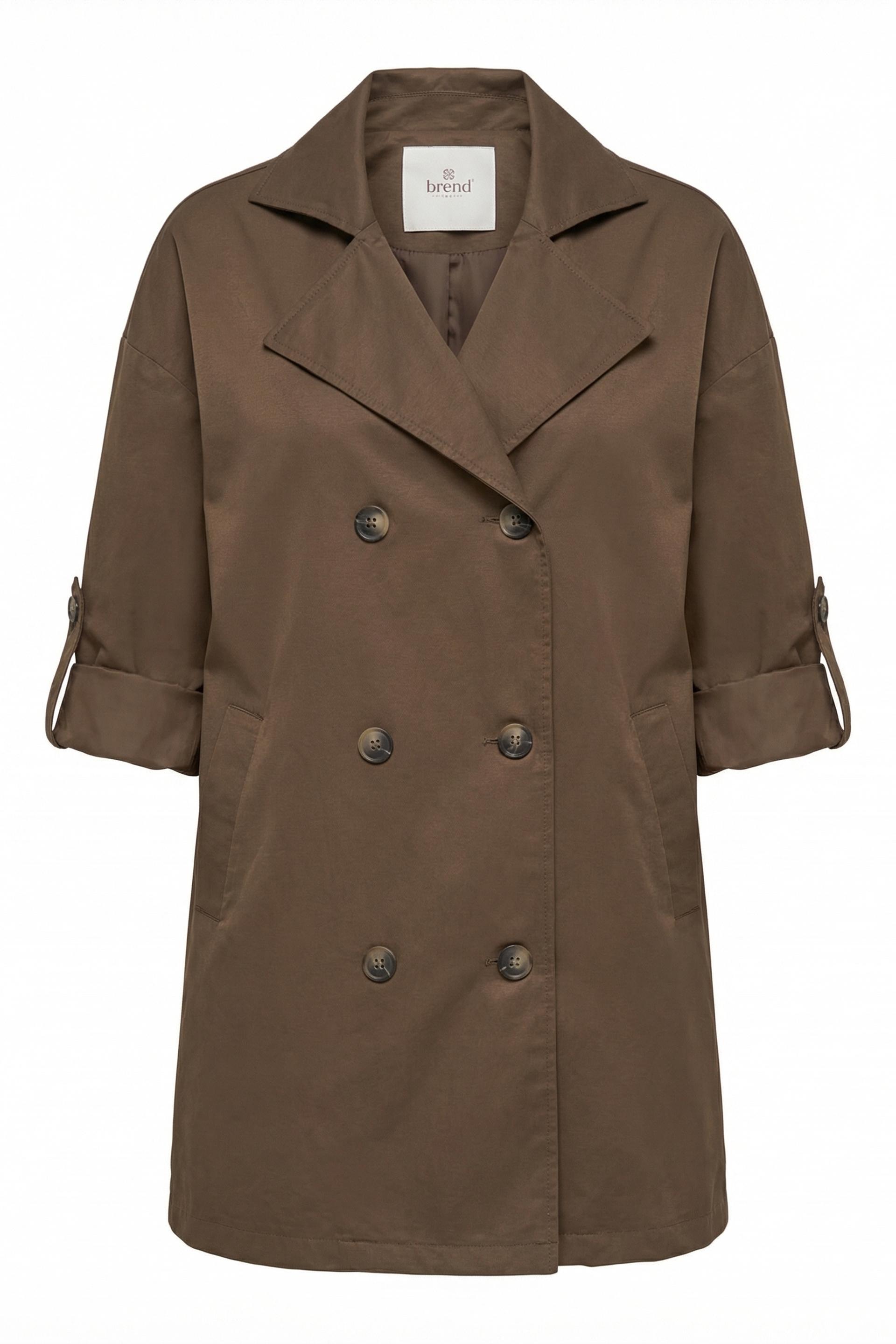 | Trench lunghezza a 3/4 con chiusura a doppio petto. Tasche laterali e fodera tono su tono. | ||