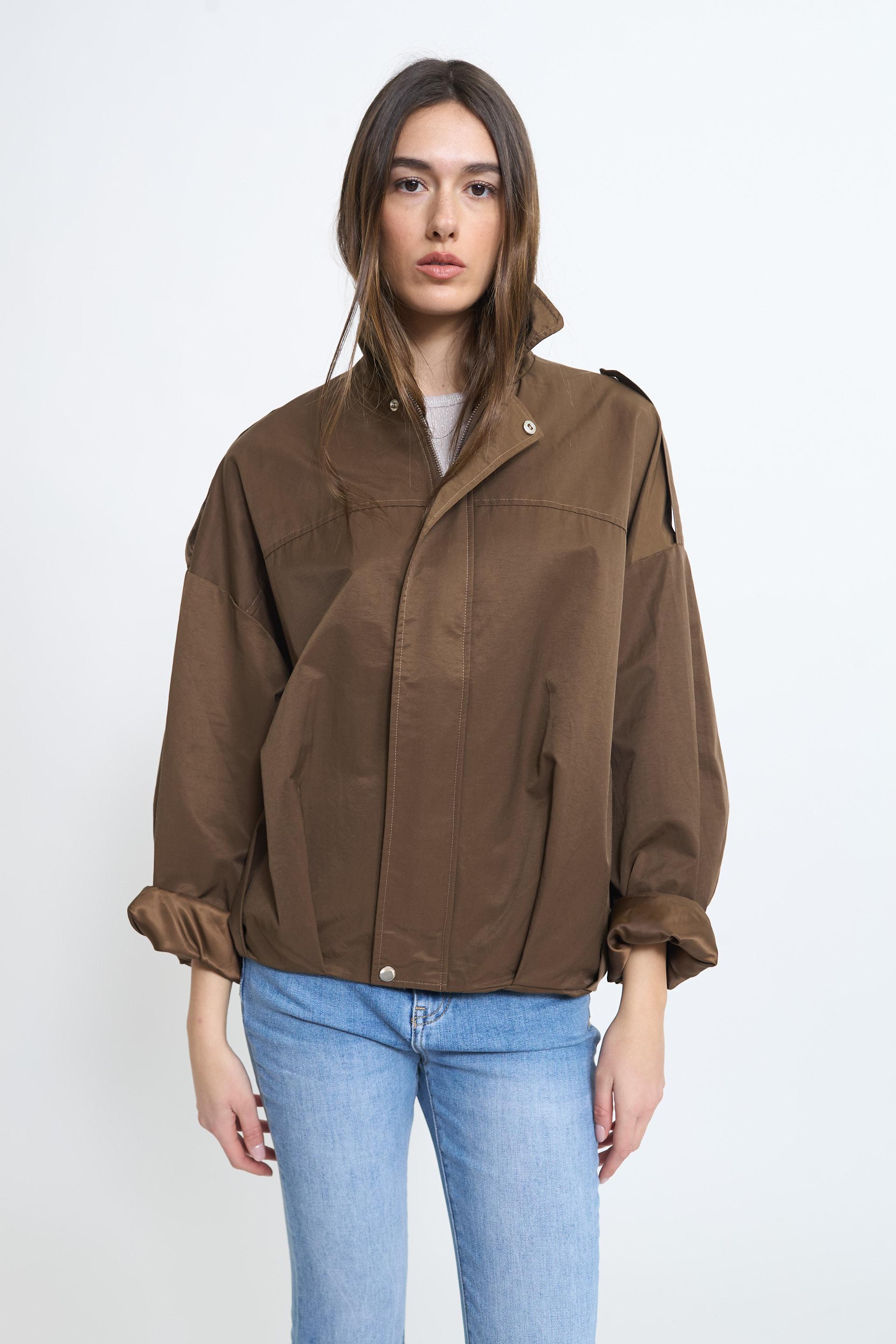 | Trench corto modello bomber con maniche scese. Fodera interna. | ||