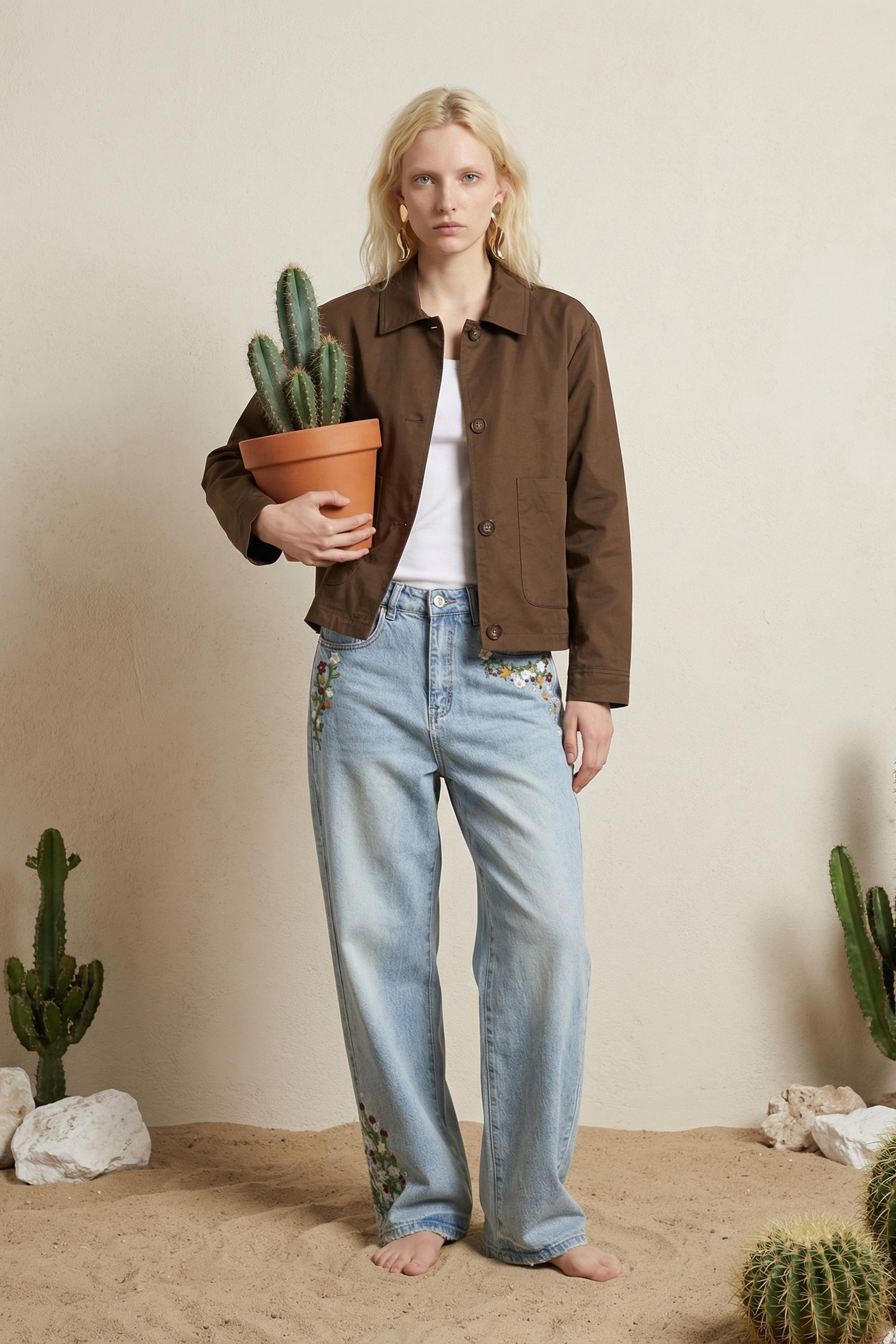 | Trench corto svasato con tasconi applicati. Chiusura tramite bottoni. Fodera interna tono su tono. | ||