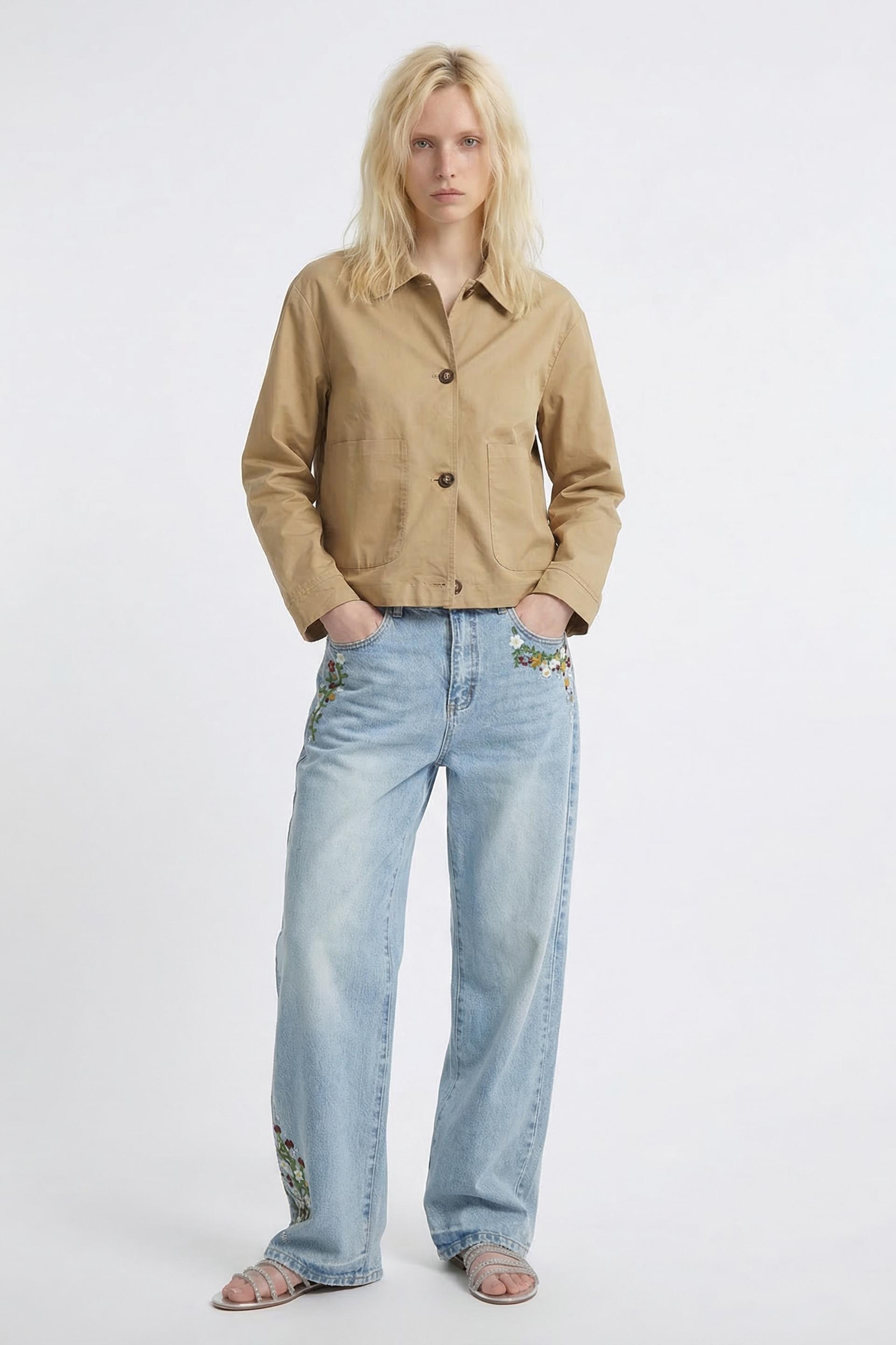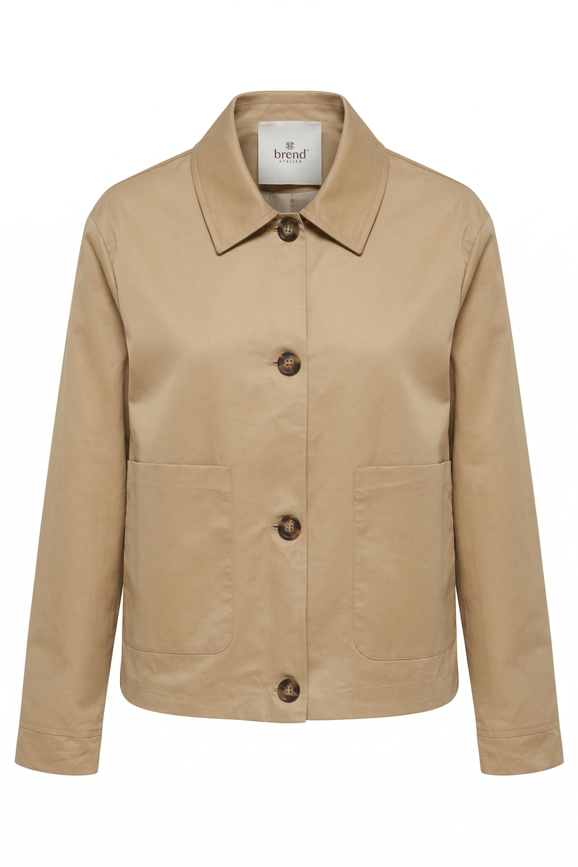 | Trench corto svasato con tasconi applicati. Chiusura tramite bottoni. Fodera interna tono su tono. | ||
