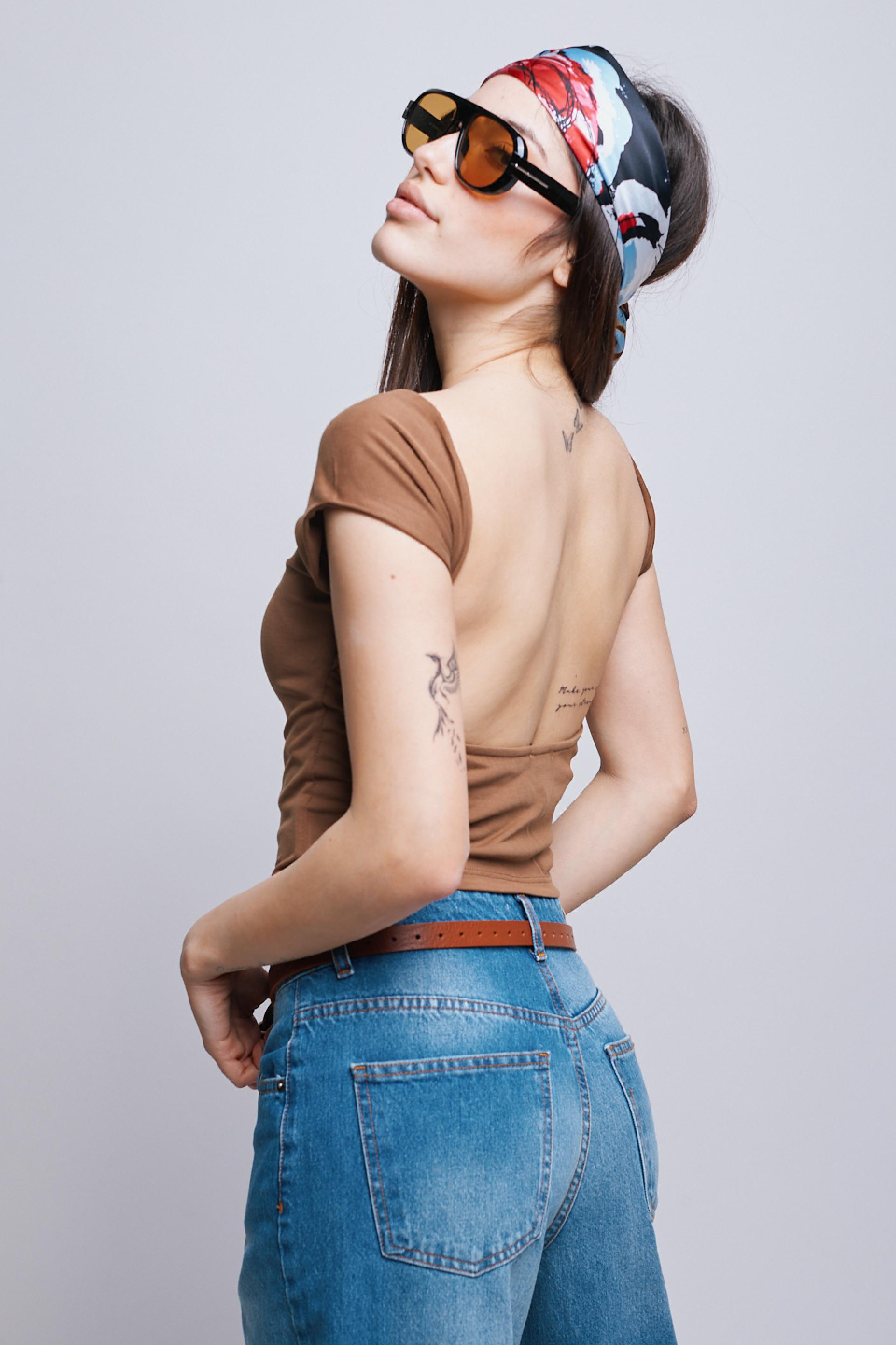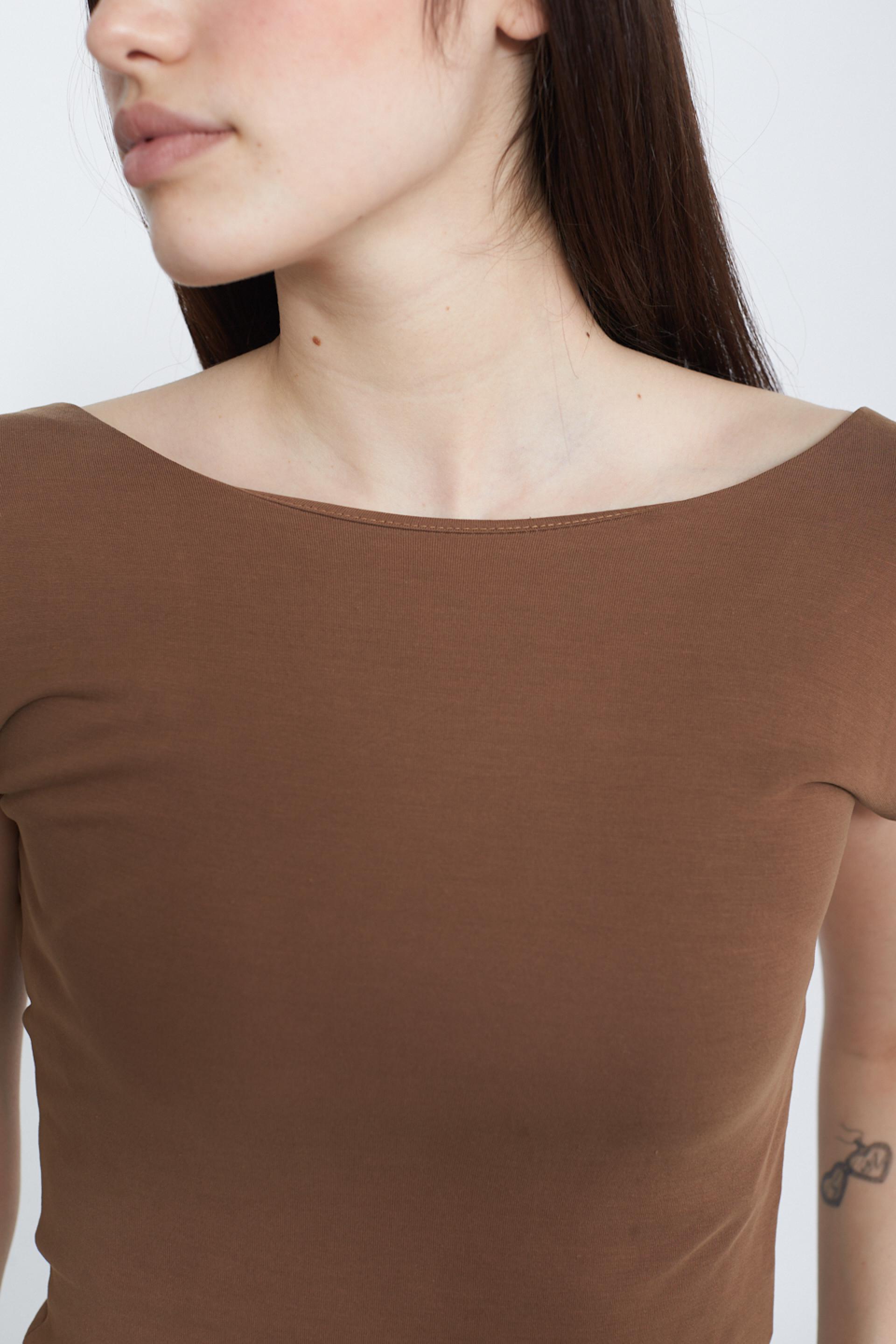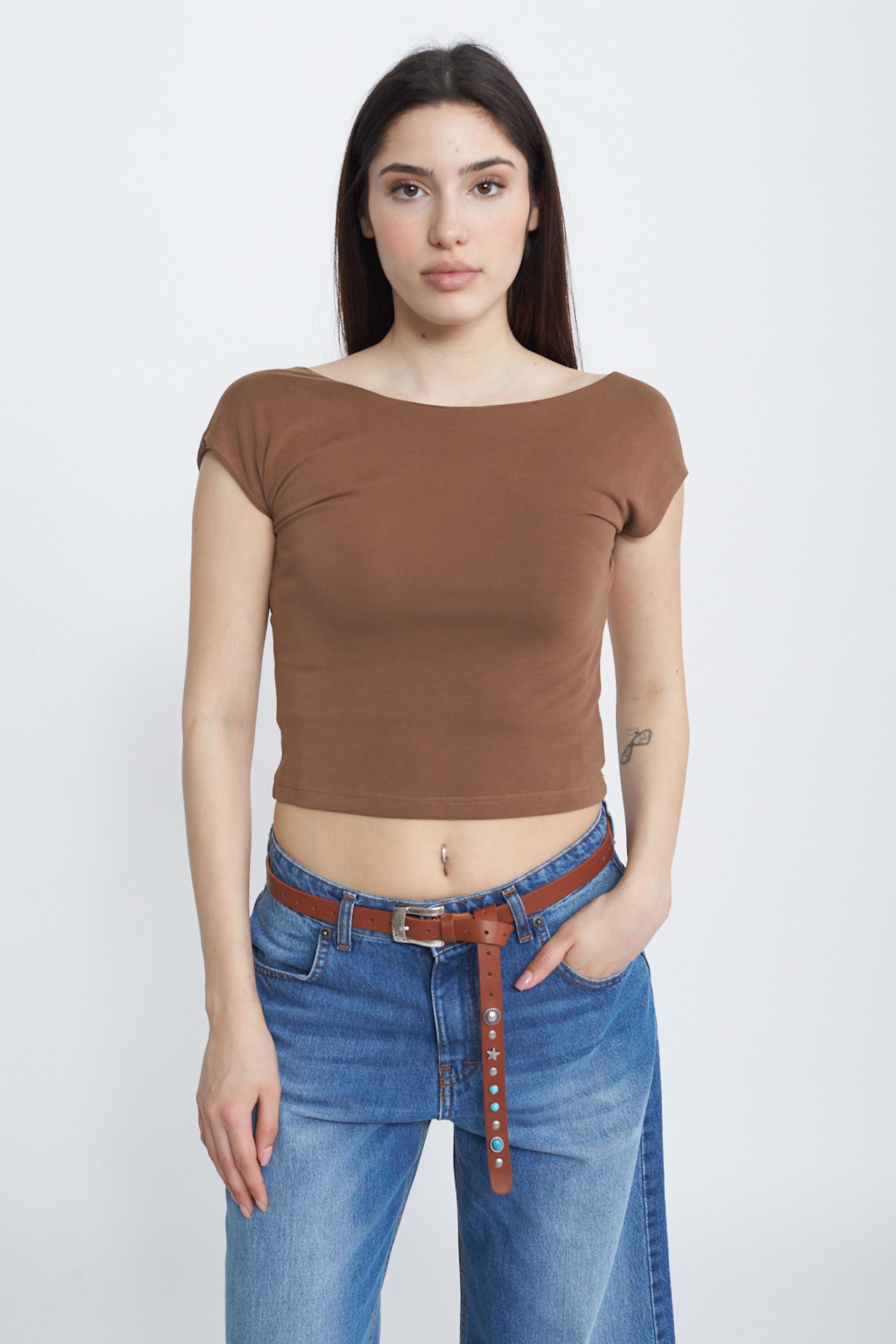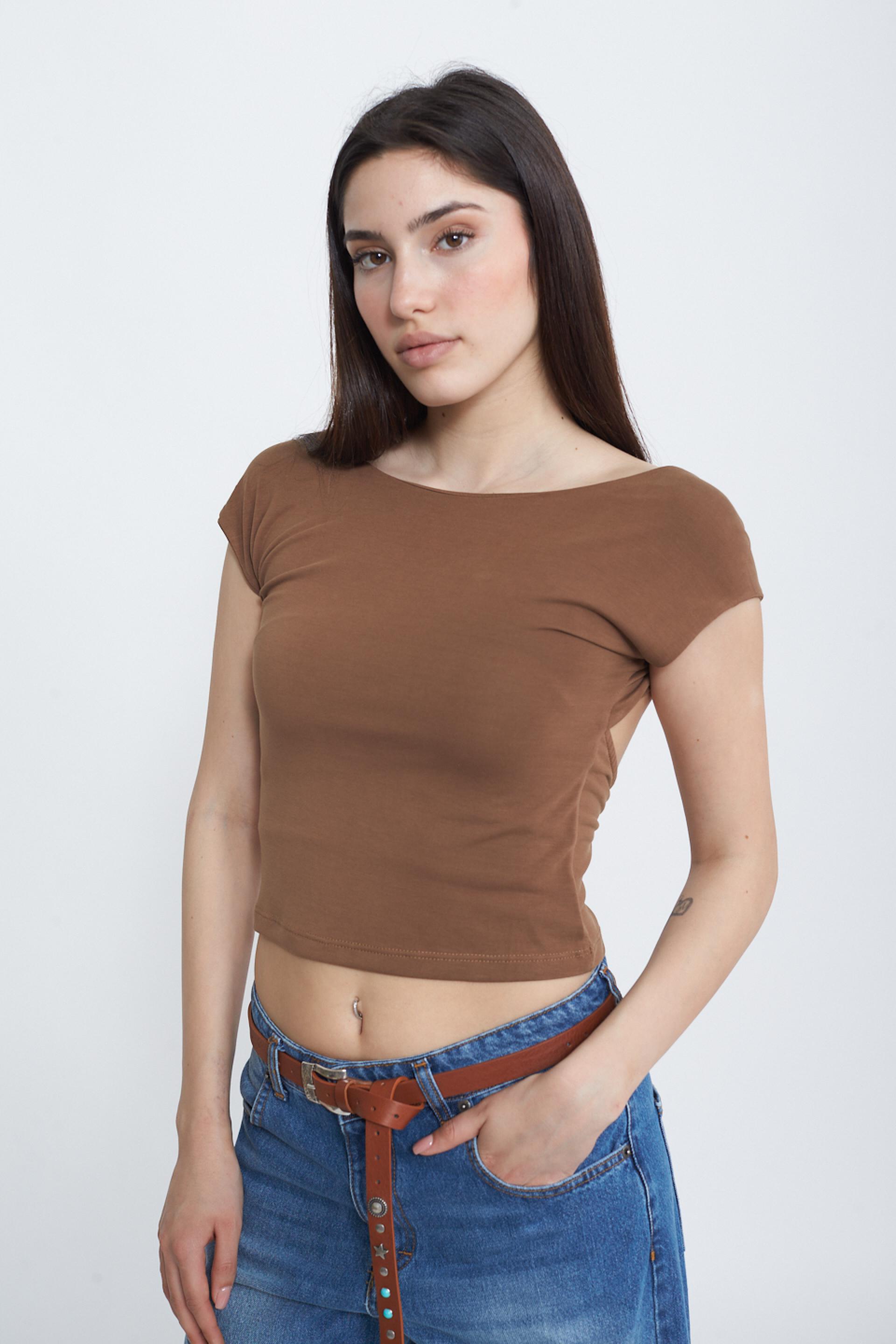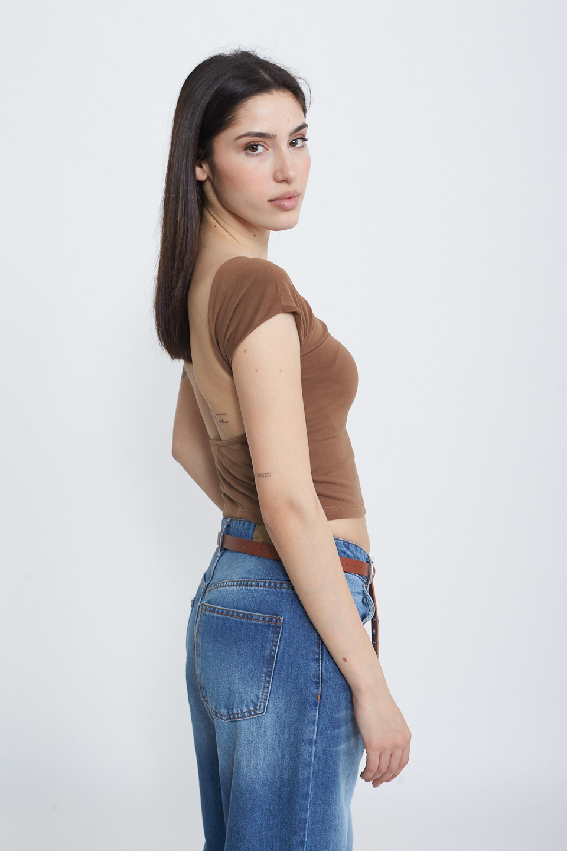 T-shirt cropped in modal con dettaglio di schiena nuda. | ||