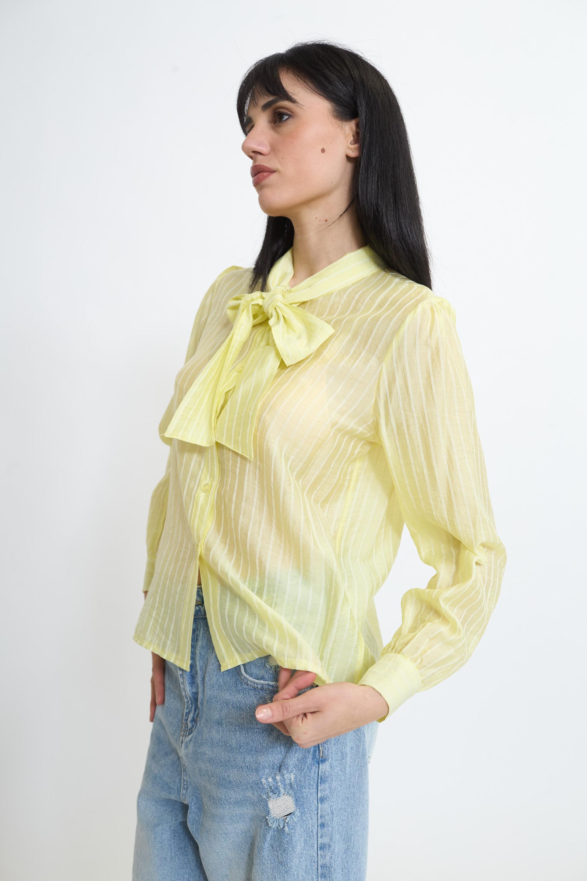 | Camicia in lyocell a righe con dettaglio di fiocco. | ||