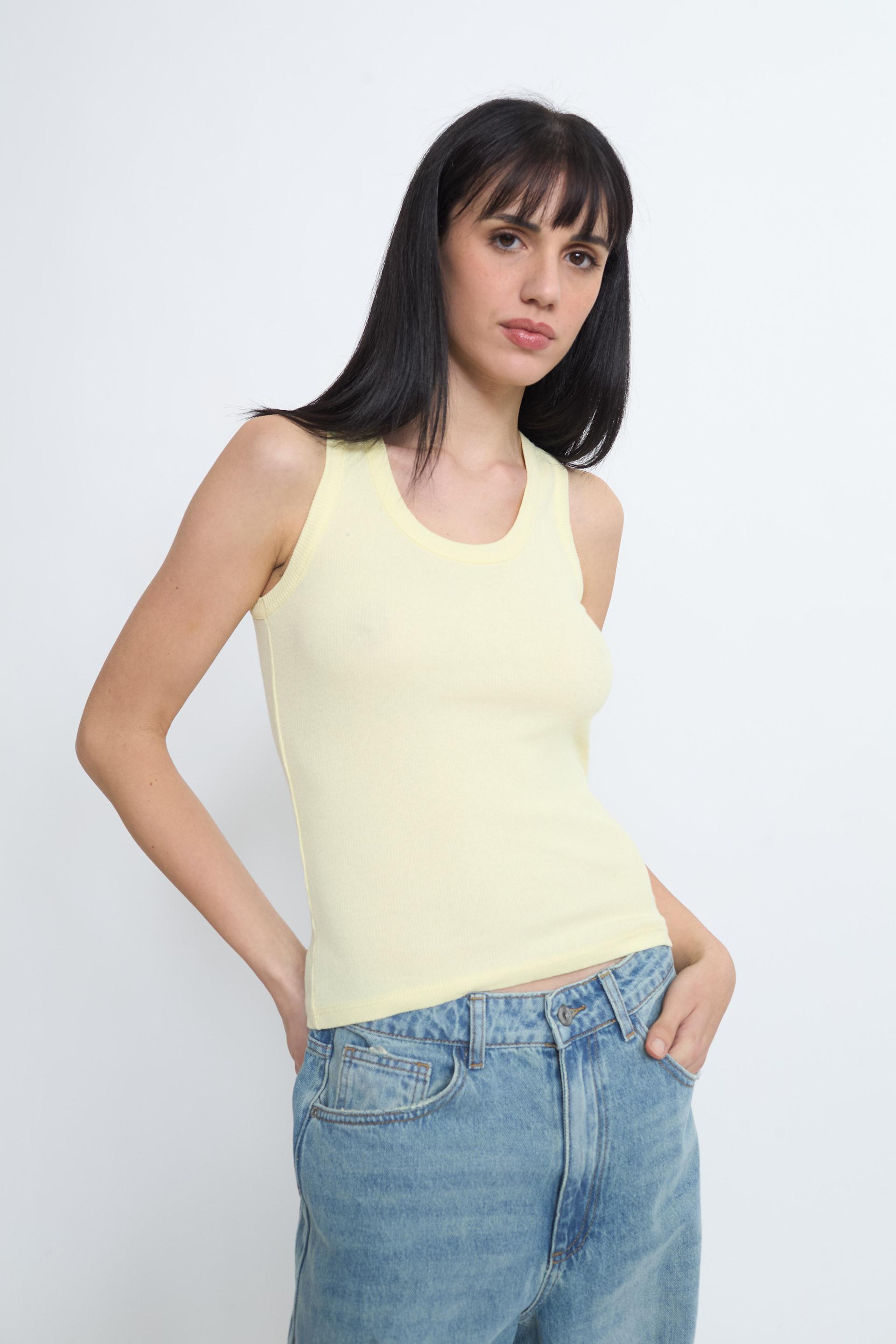 | Canotta girocollo in cotone a costine. | ||