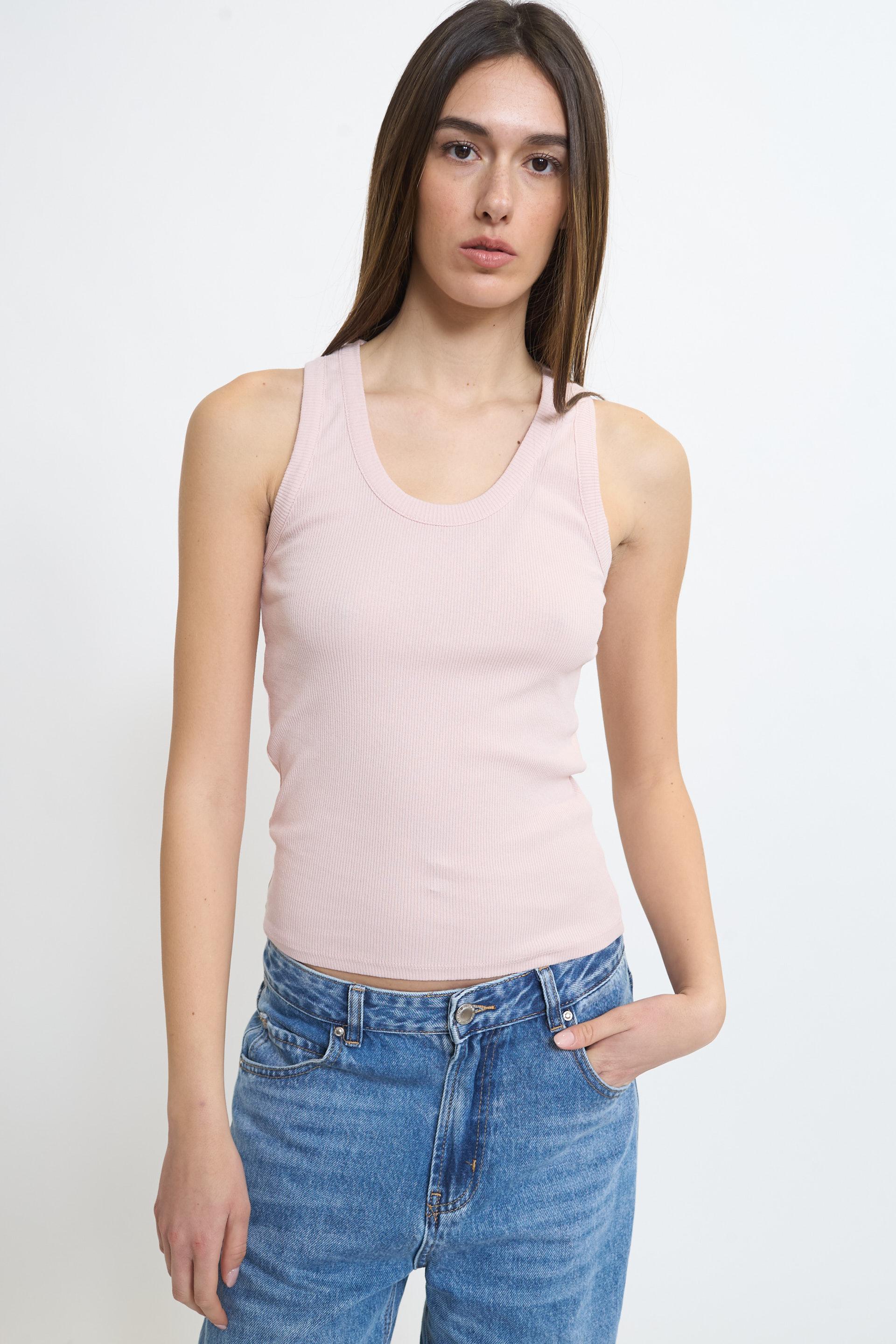 | Canotta girocollo in cotone a costine. | ||