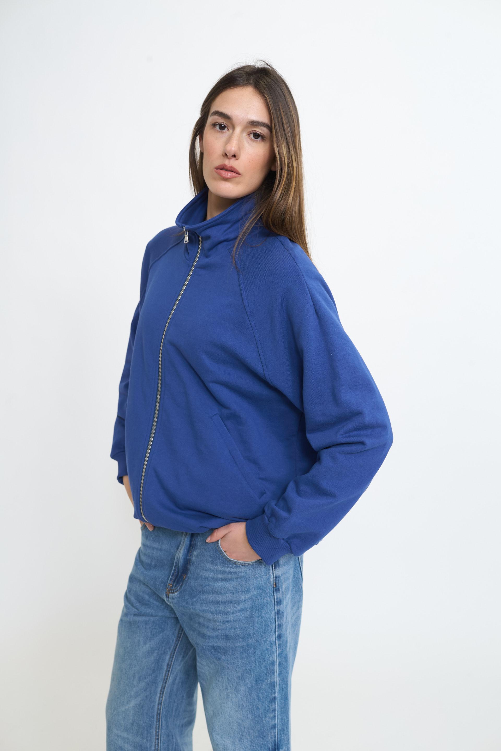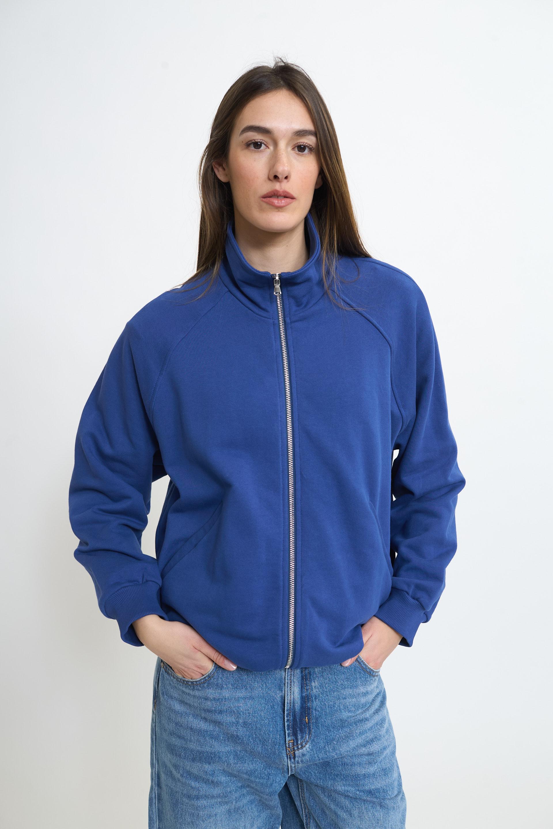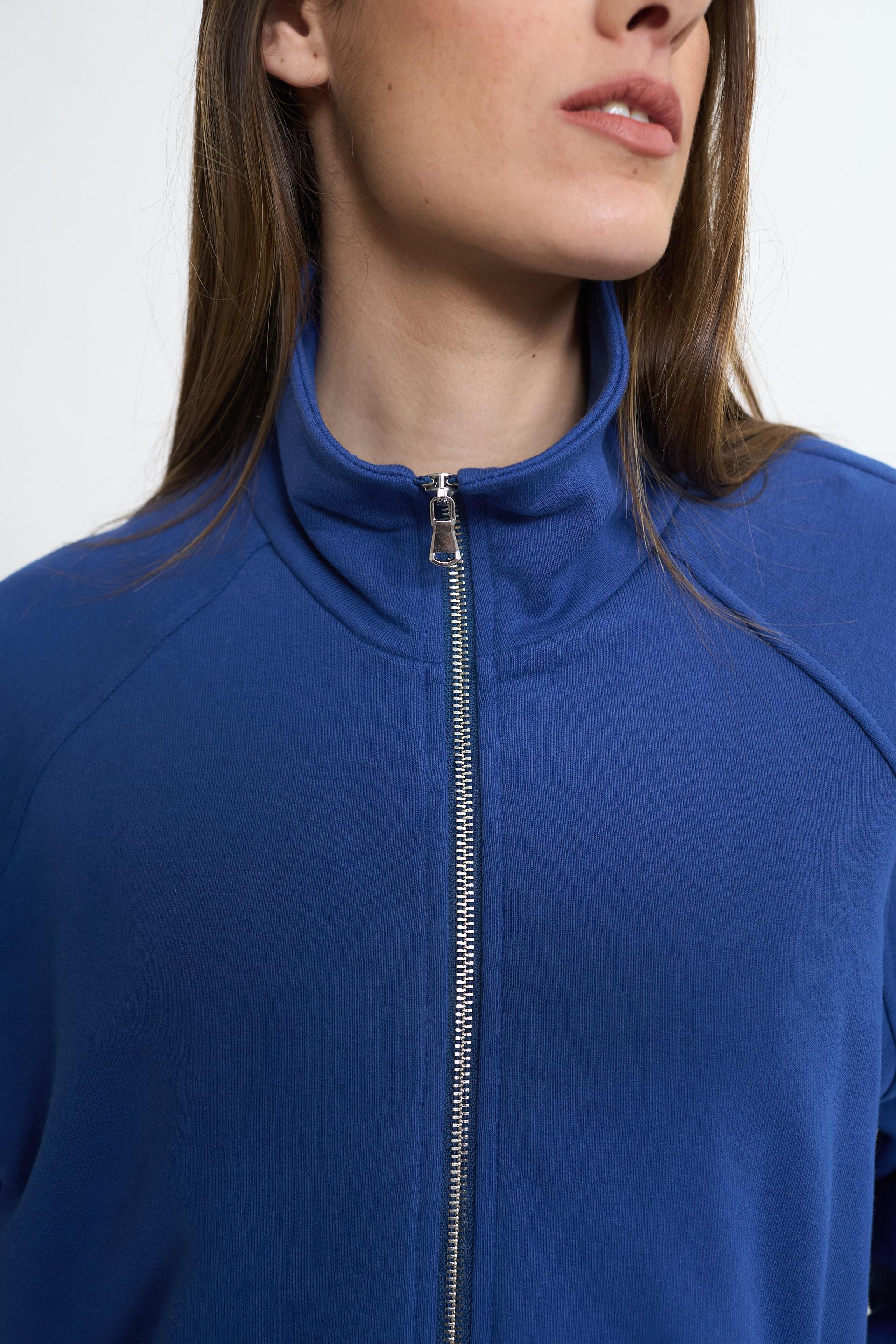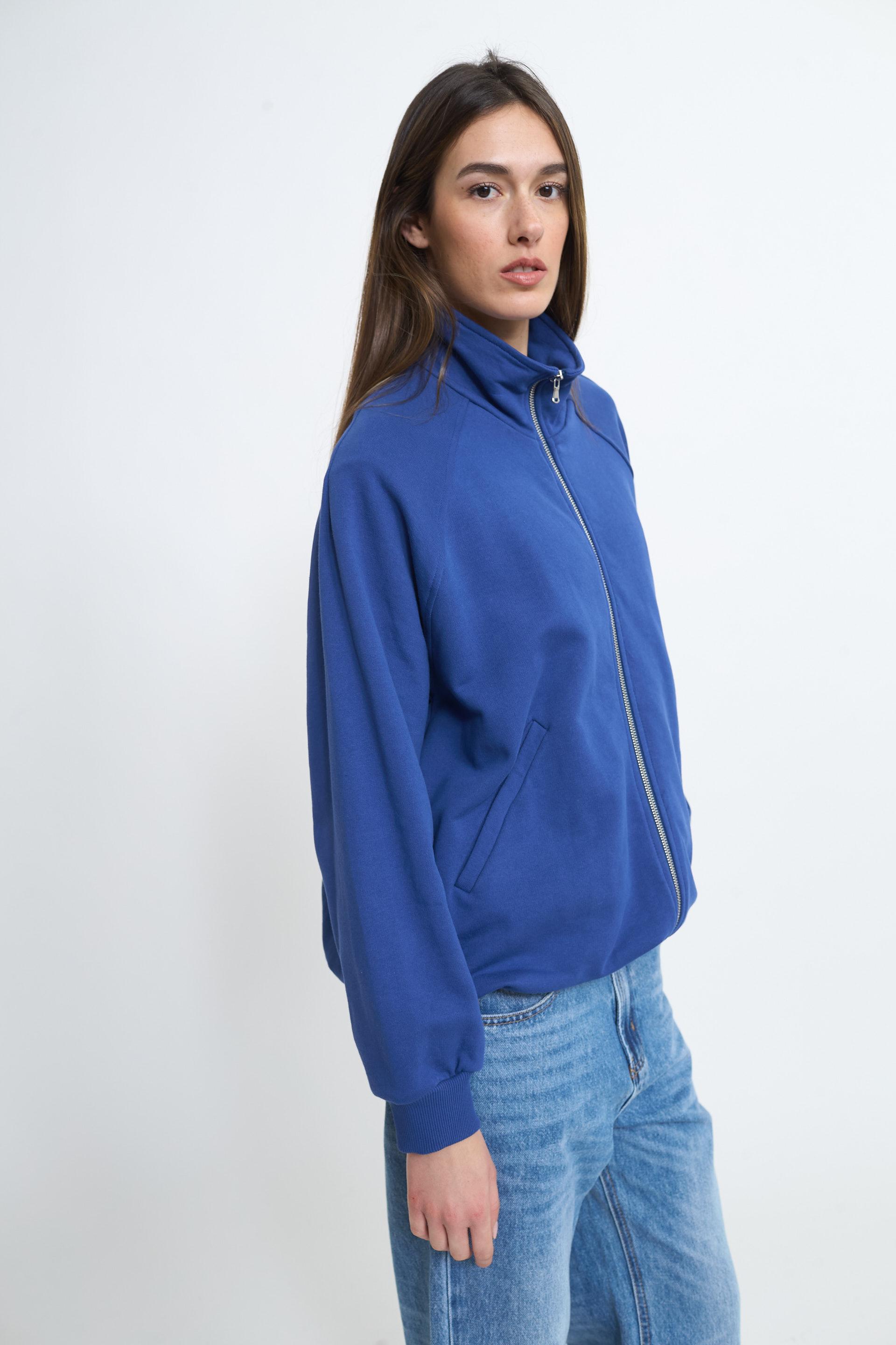 | Felpa over zip in cotone con lavorazione a costine su polsi e orlo. | ||