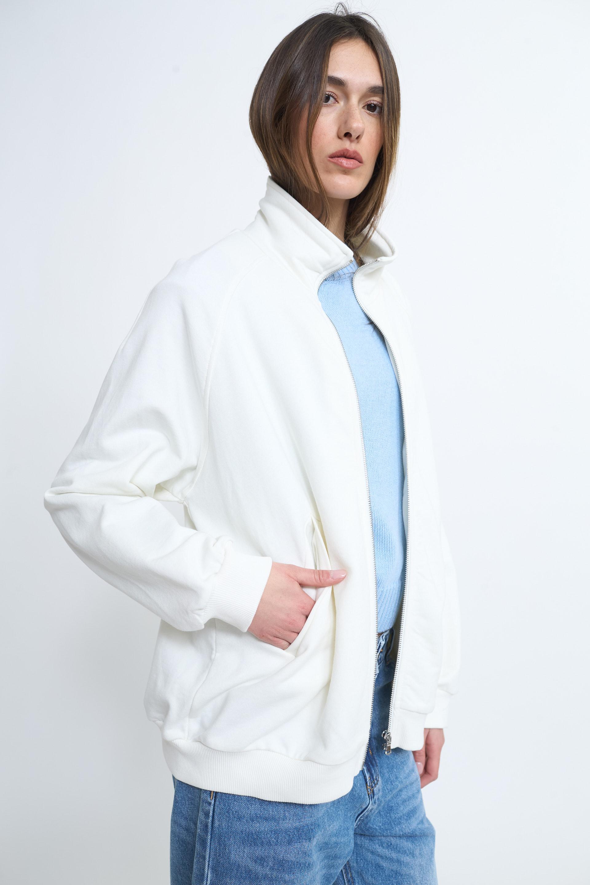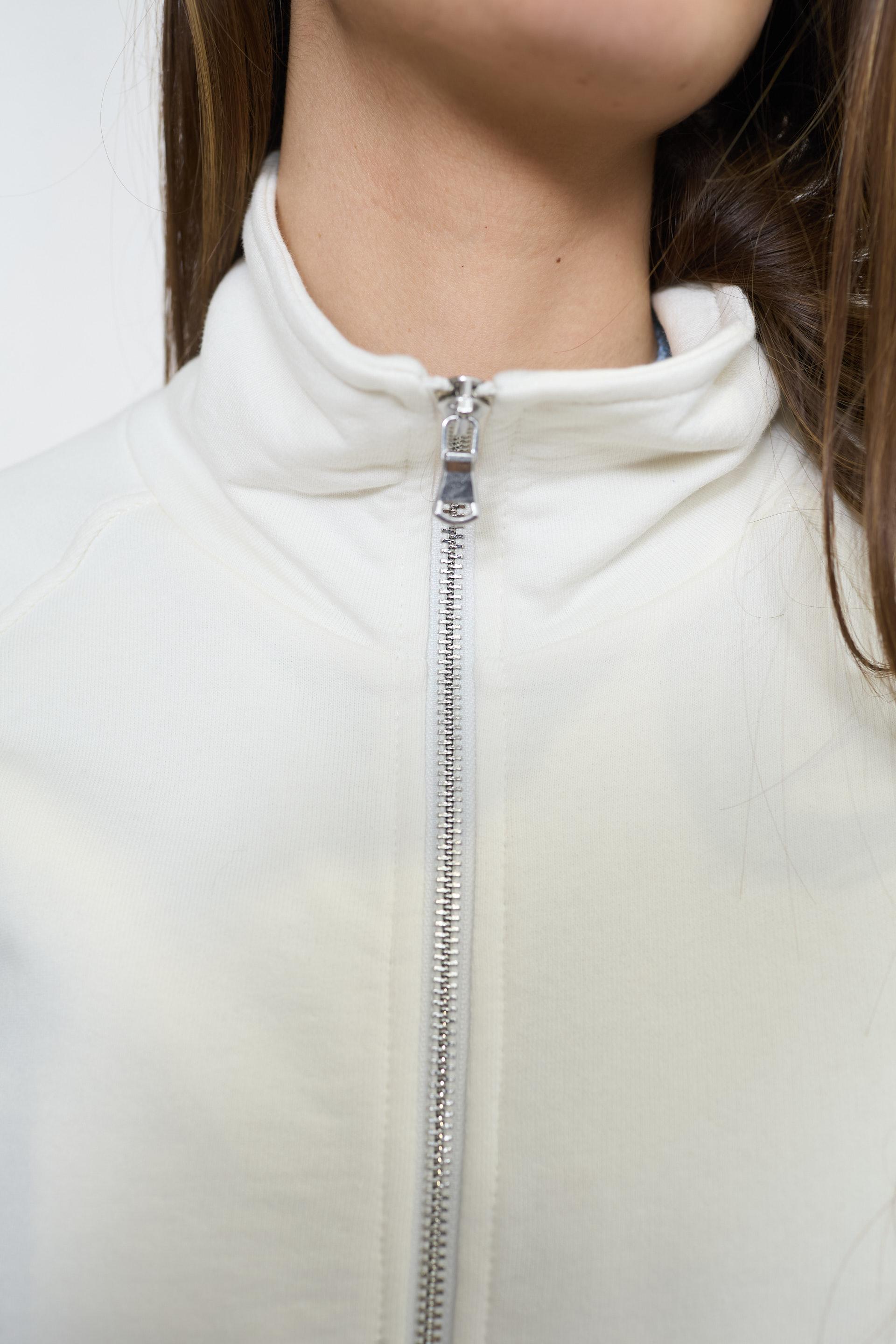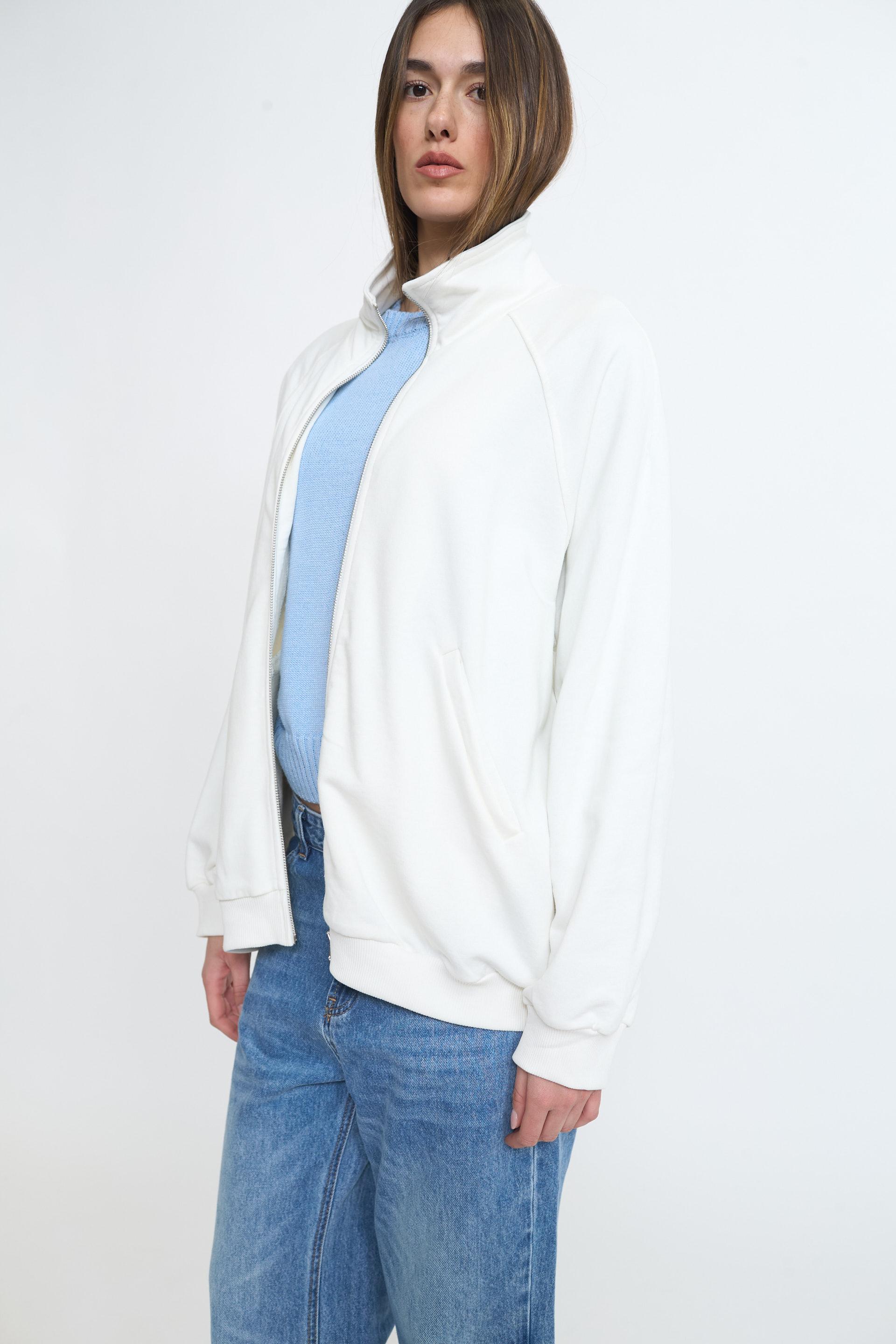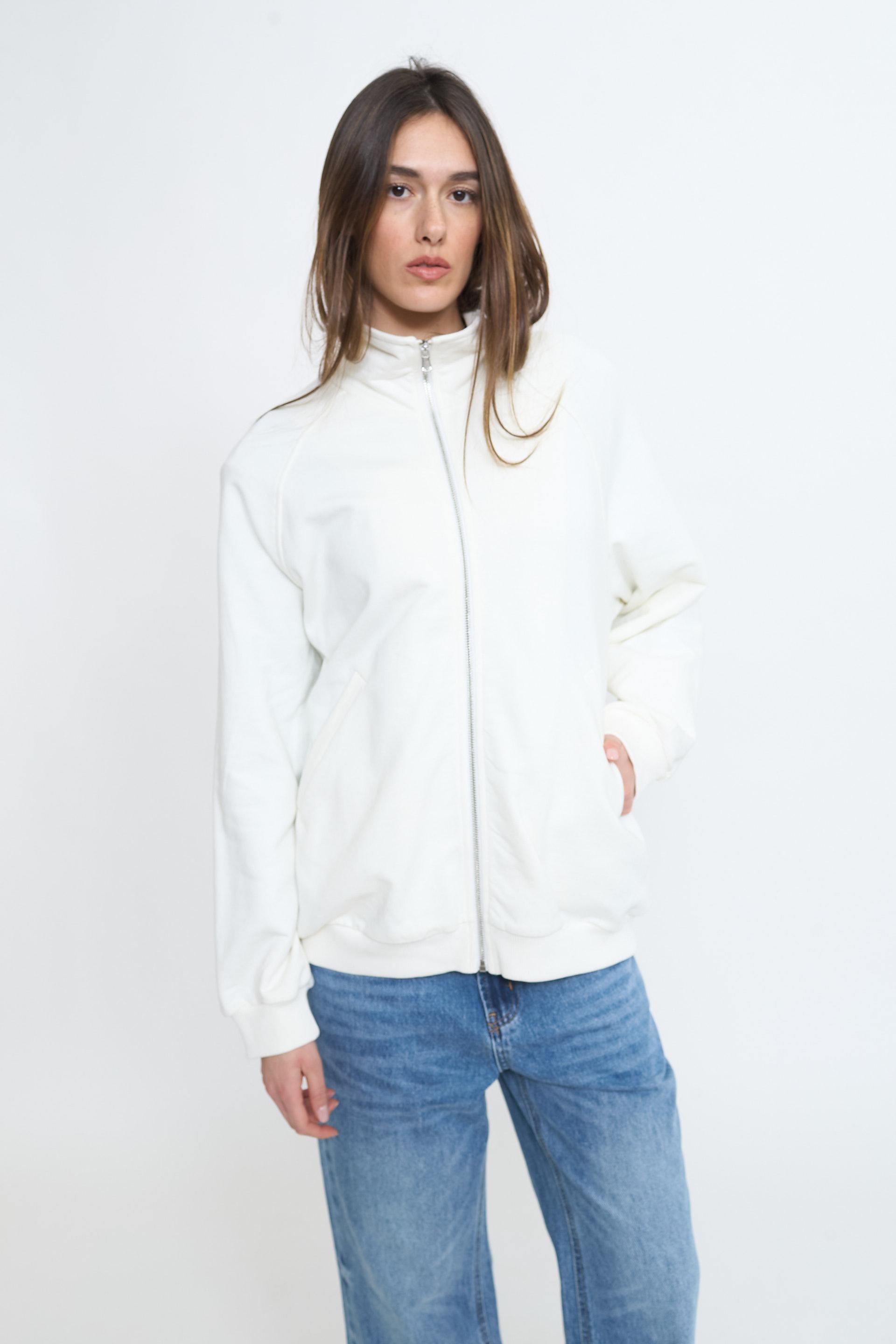 | Felpa over zip in cotone con lavorazione a costine su polsi e orlo. | ||