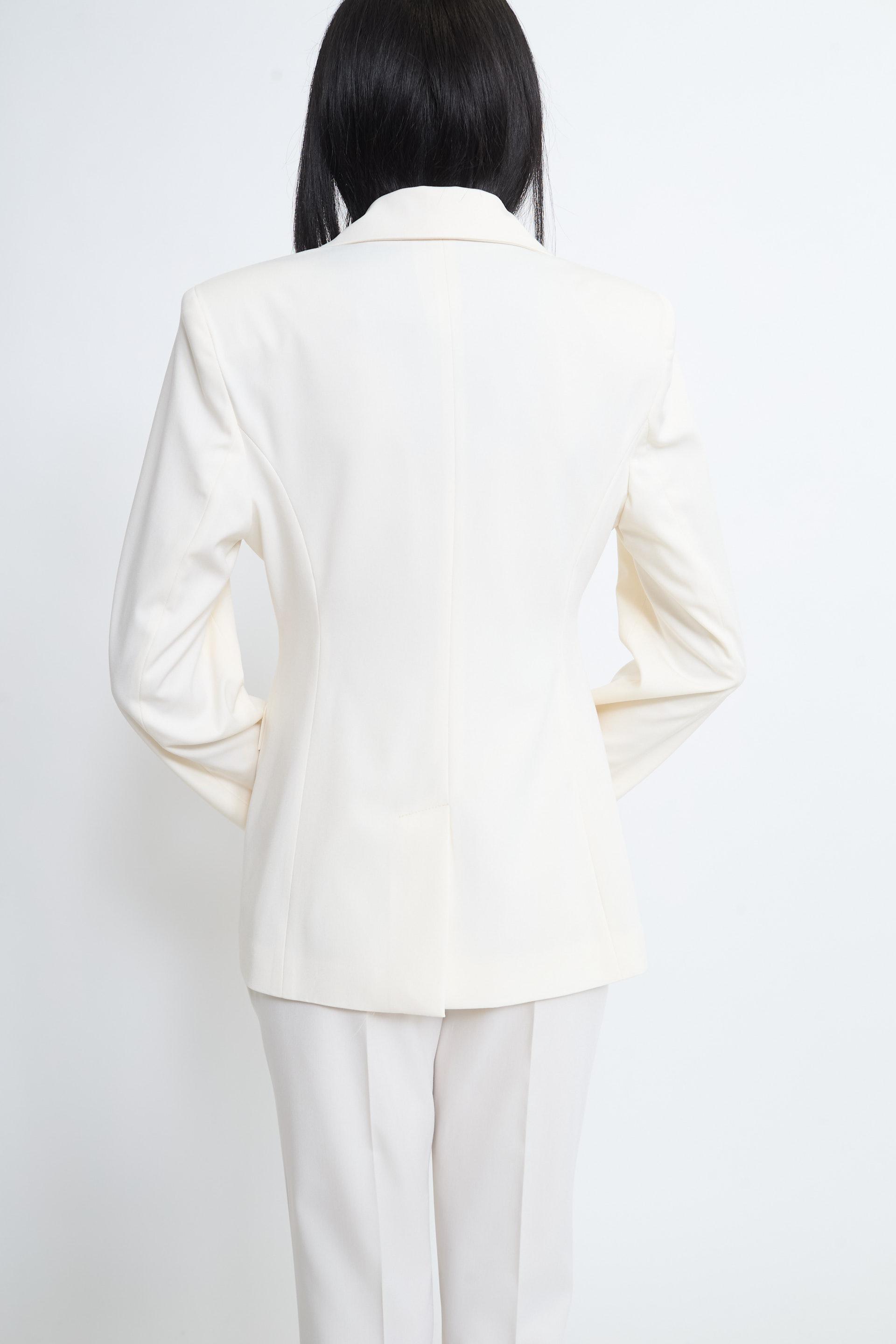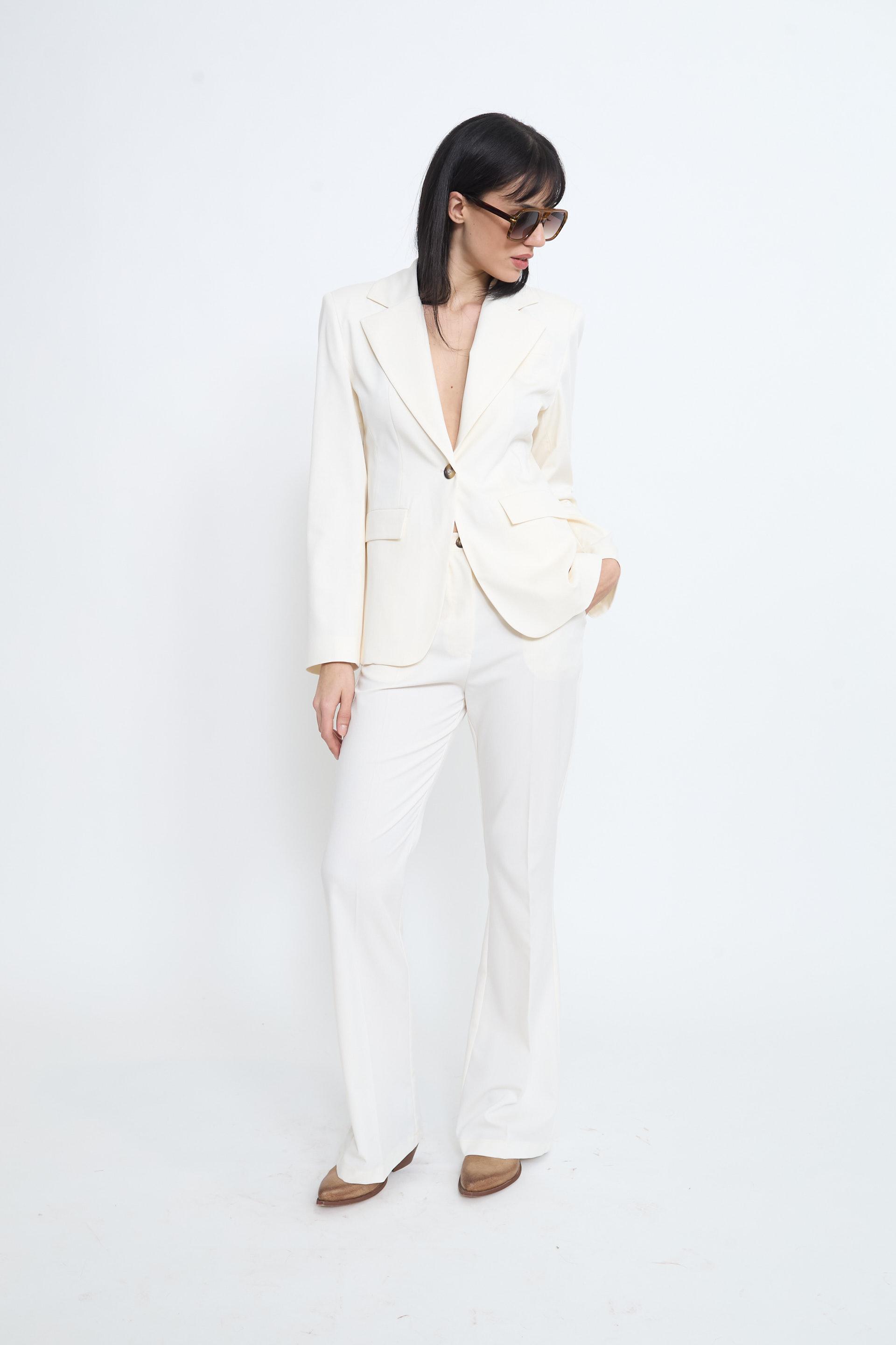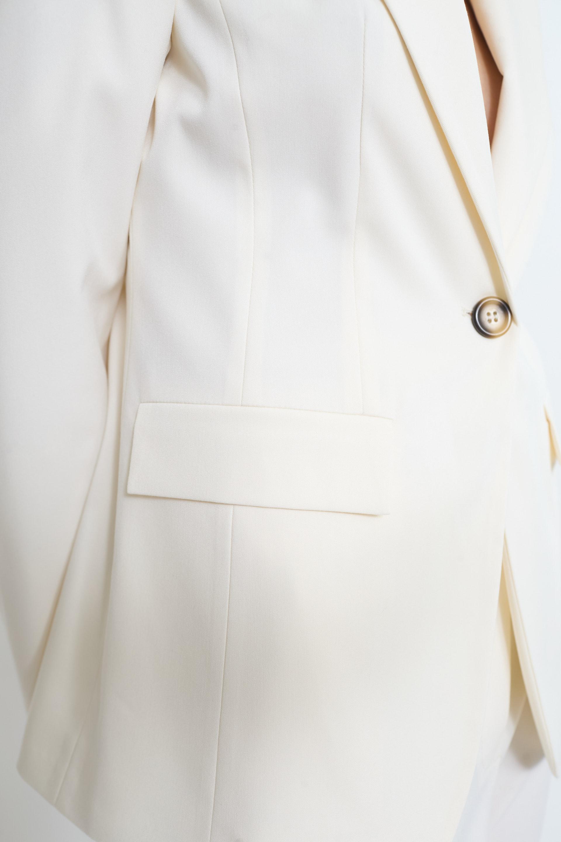| Giacca revers con finte tasche con pattine e spacco posteriore. Spalline imbottite e fodera interna tono su tono. Chiusura tramite 1 bottone. | ||
