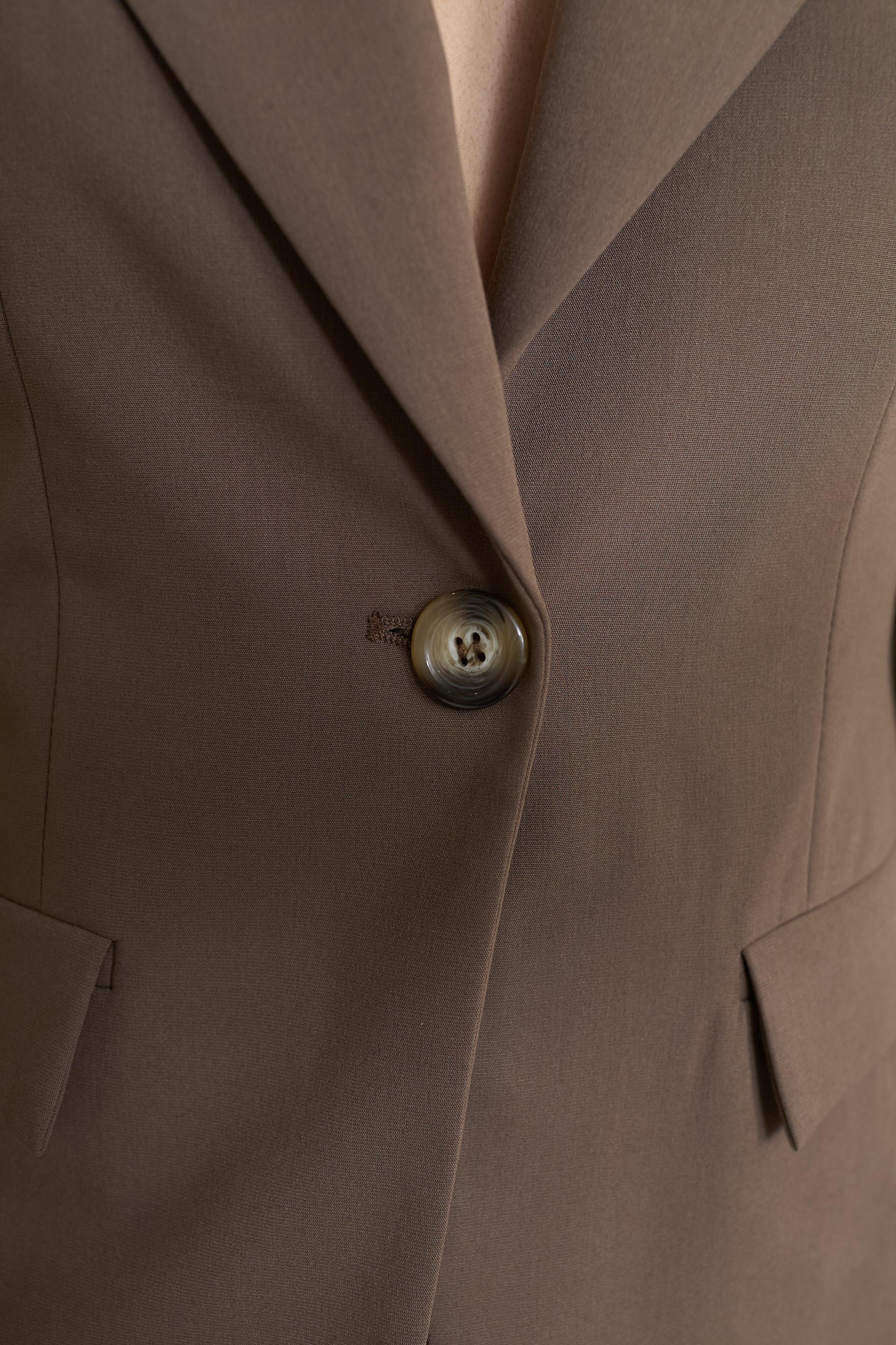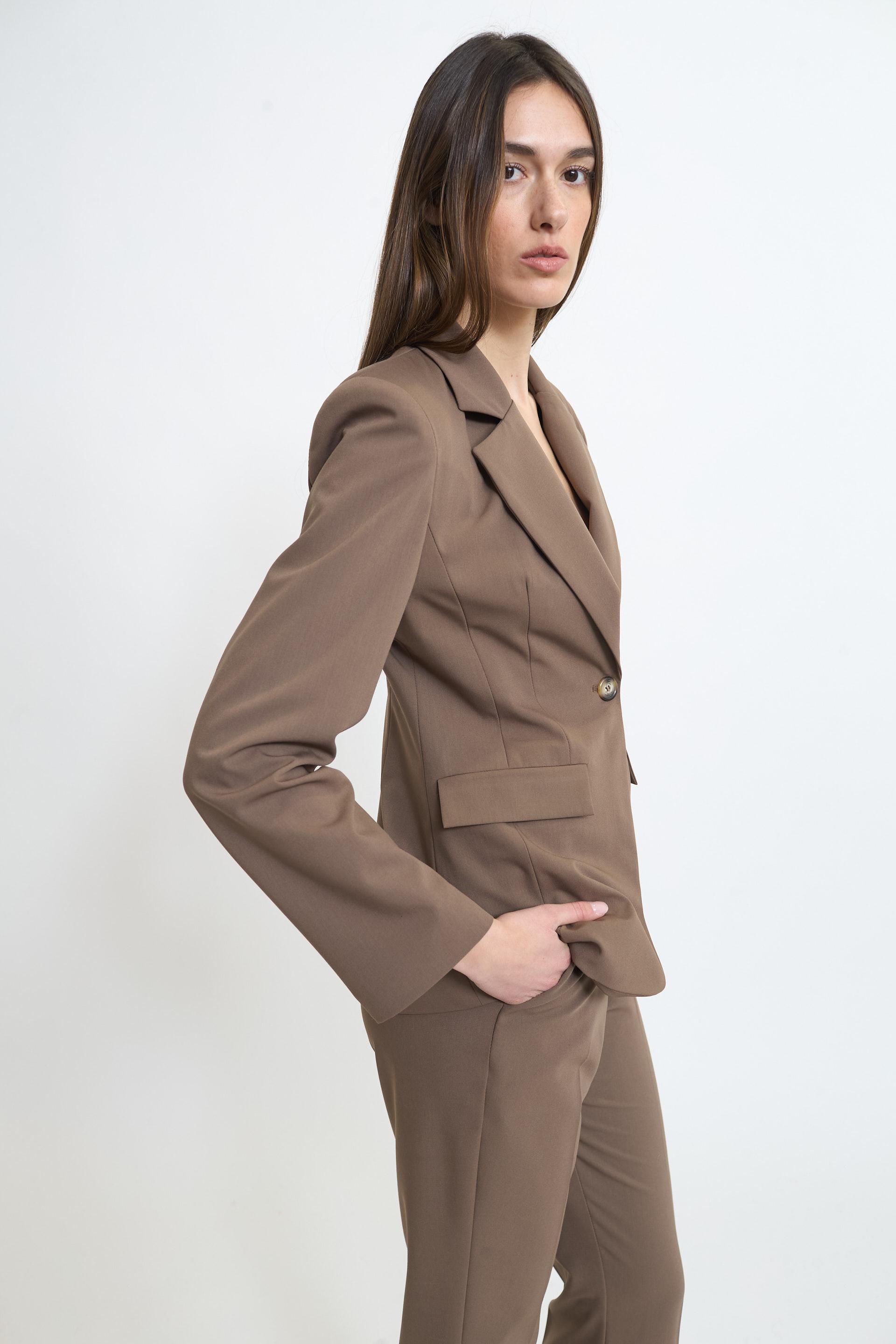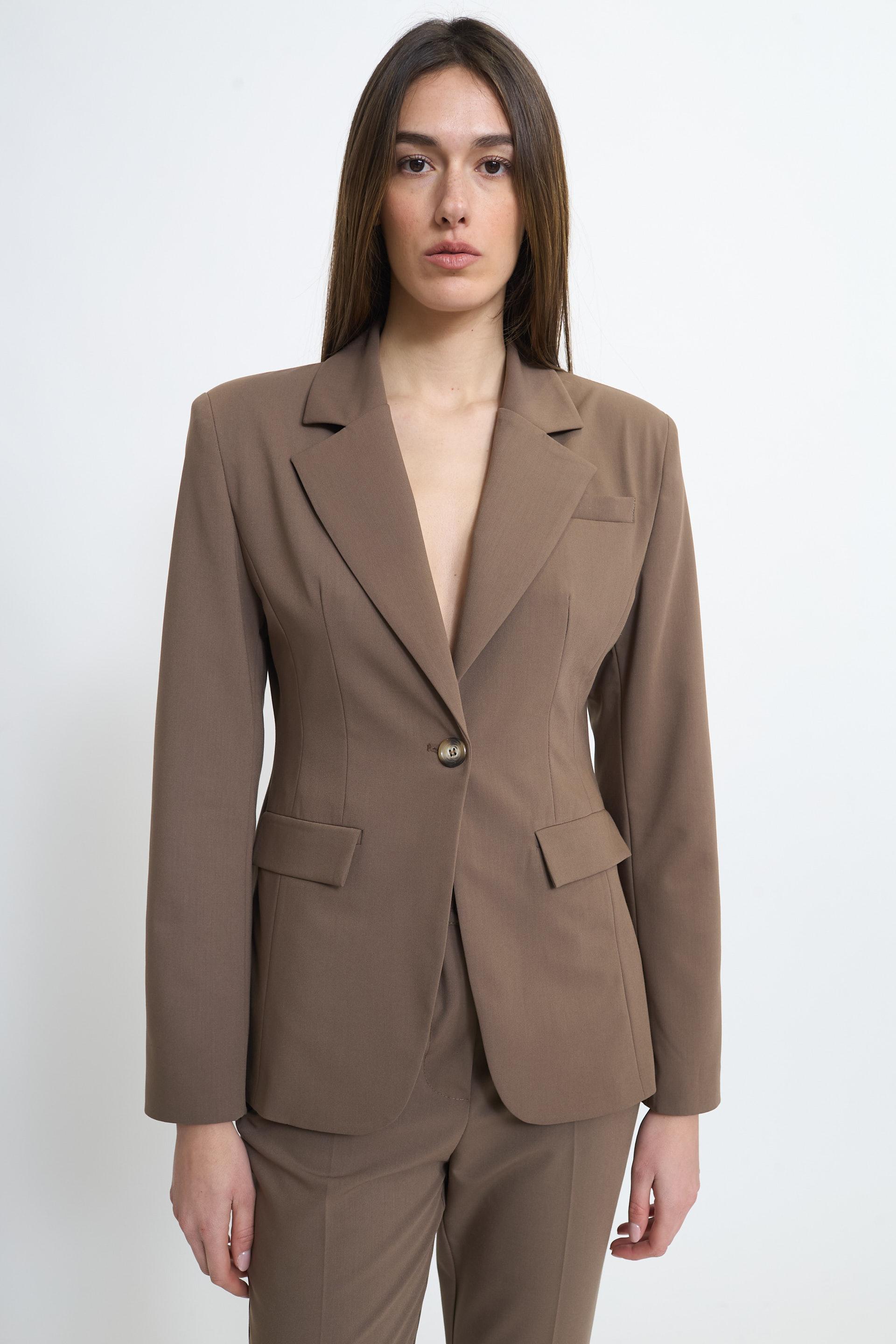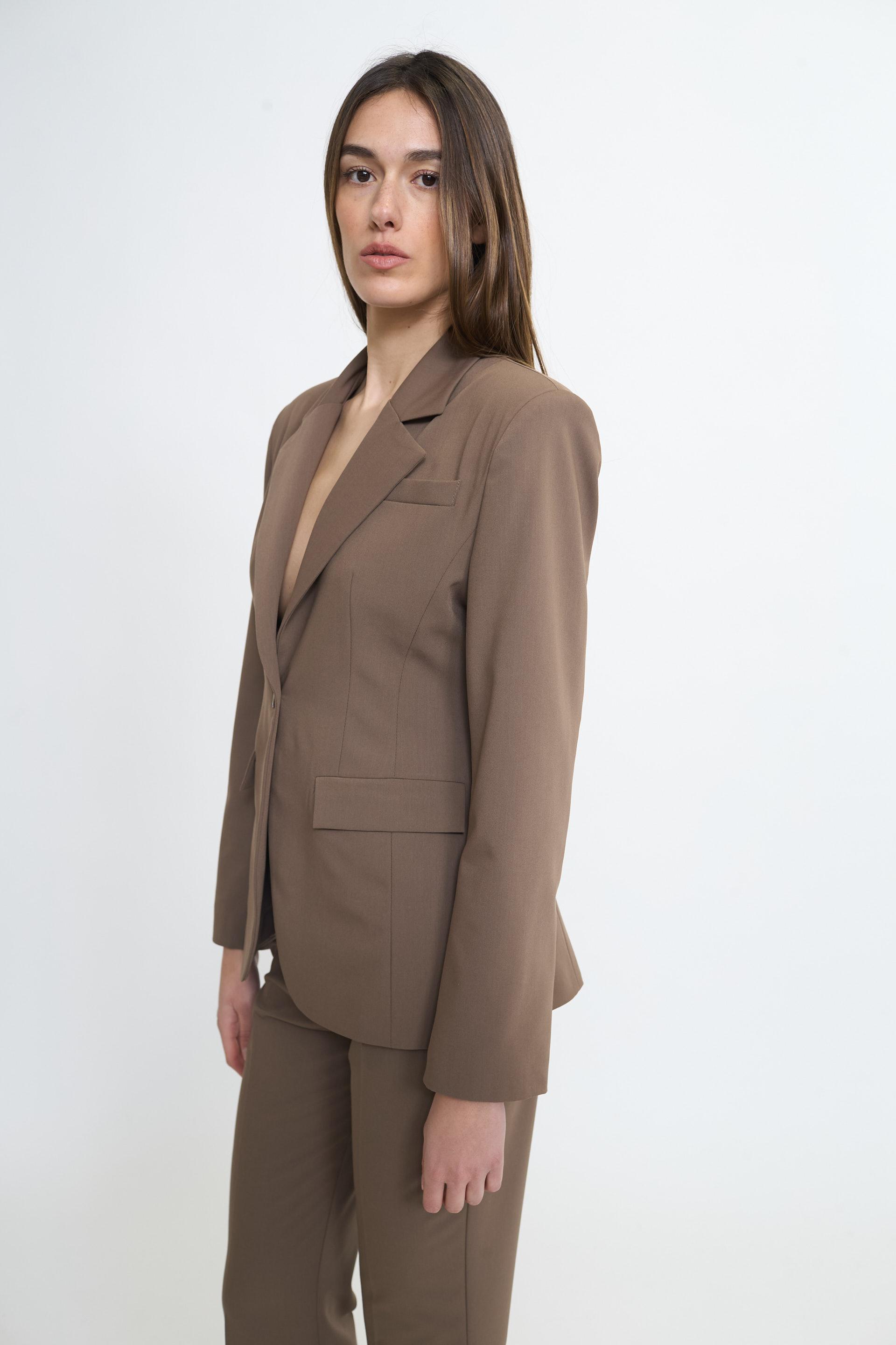 | Giacca revers con finte tasche con pattine e spacco posteriore. Spalline imbottite e fodera interna tono su tono. Chiusura tramite 1 bottone. | ||