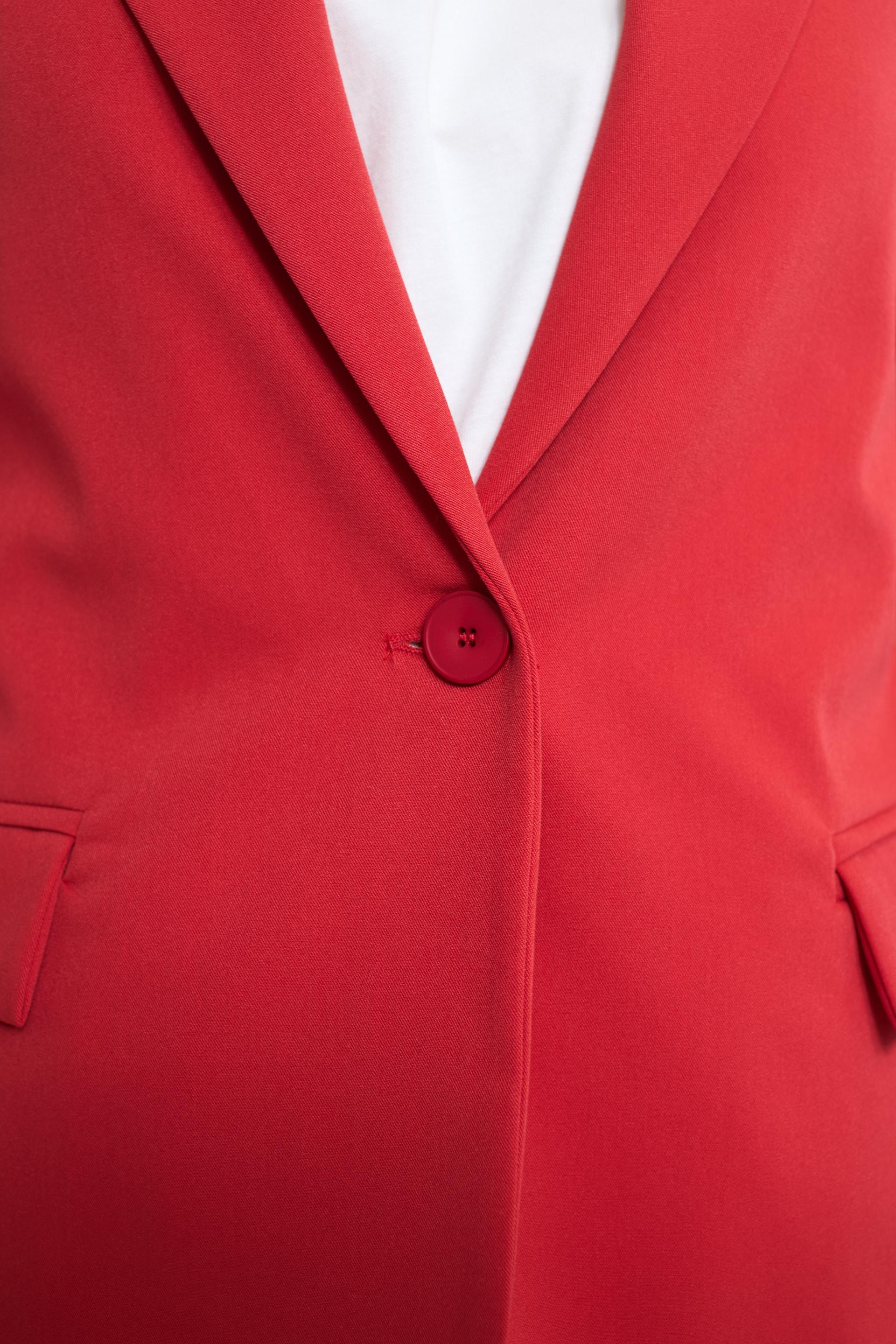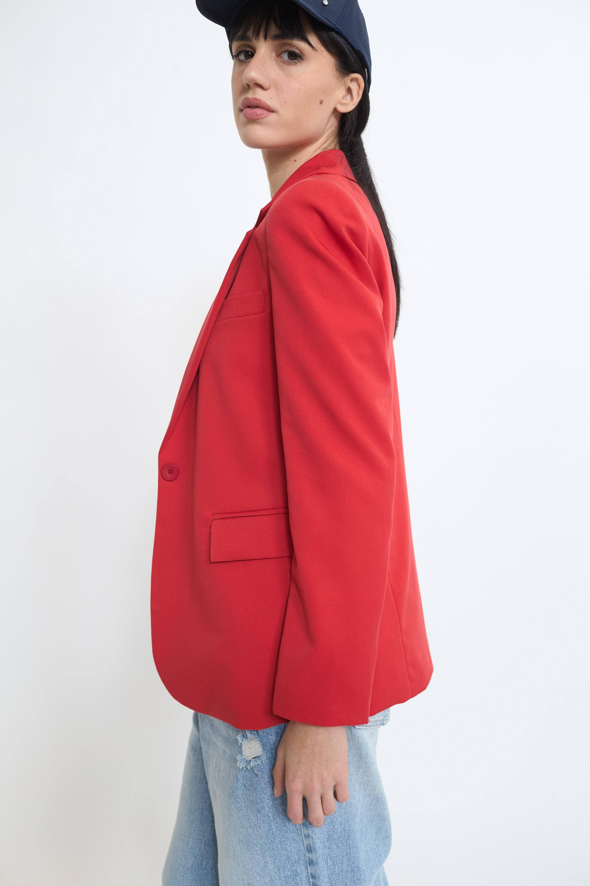 | Giacca collo revers con finto taschino e finte tasche con pattina. Spalline imbottite e fodera interna tono su tono. Chiusura tramite 1 bottone. | ||