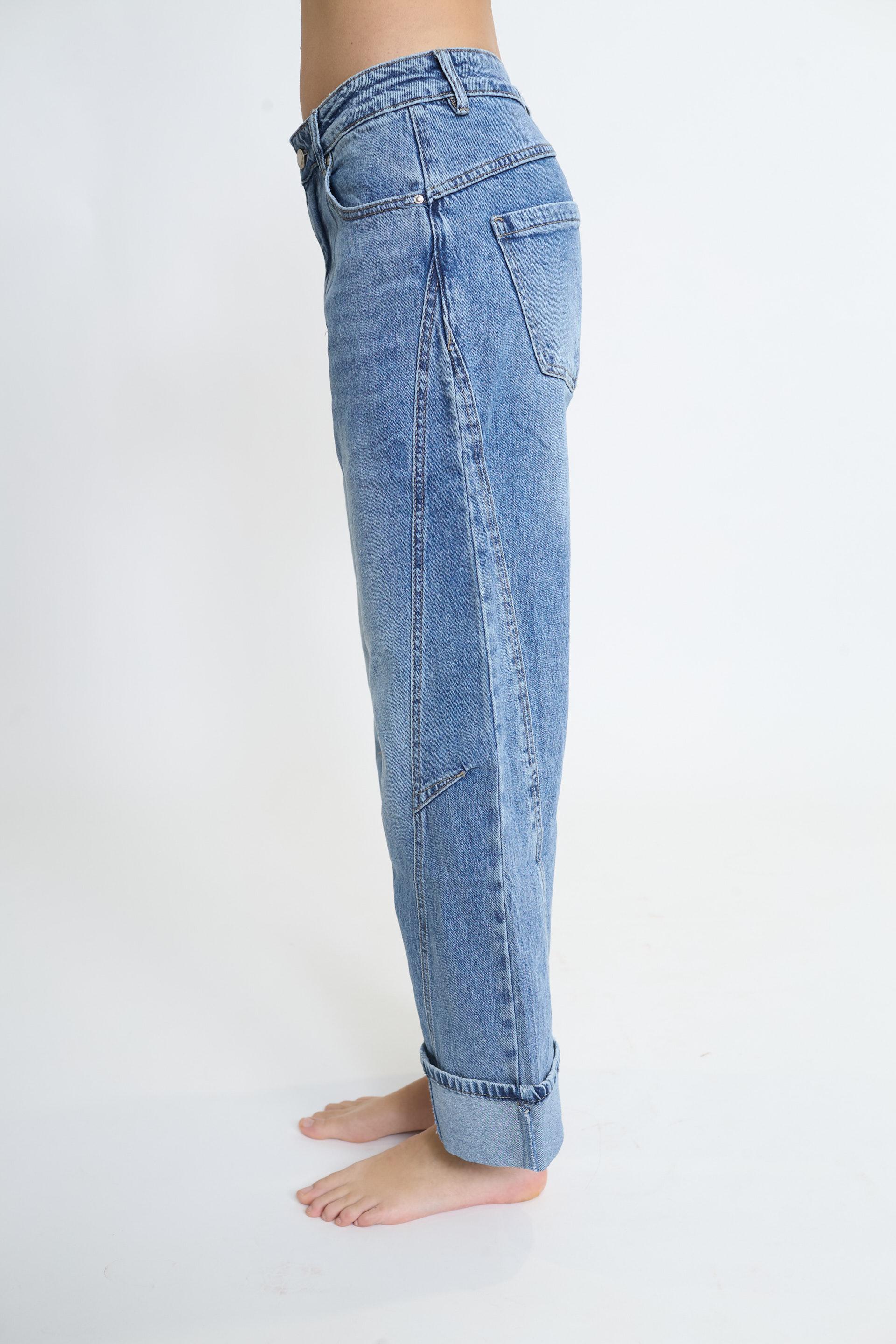 | Jeans barrel con doppie cuciture al ginocchio e risvolto. Targhetta posteriore loggata in cuoio. Chiusura tramite bottone metallico e cerniera. | ||