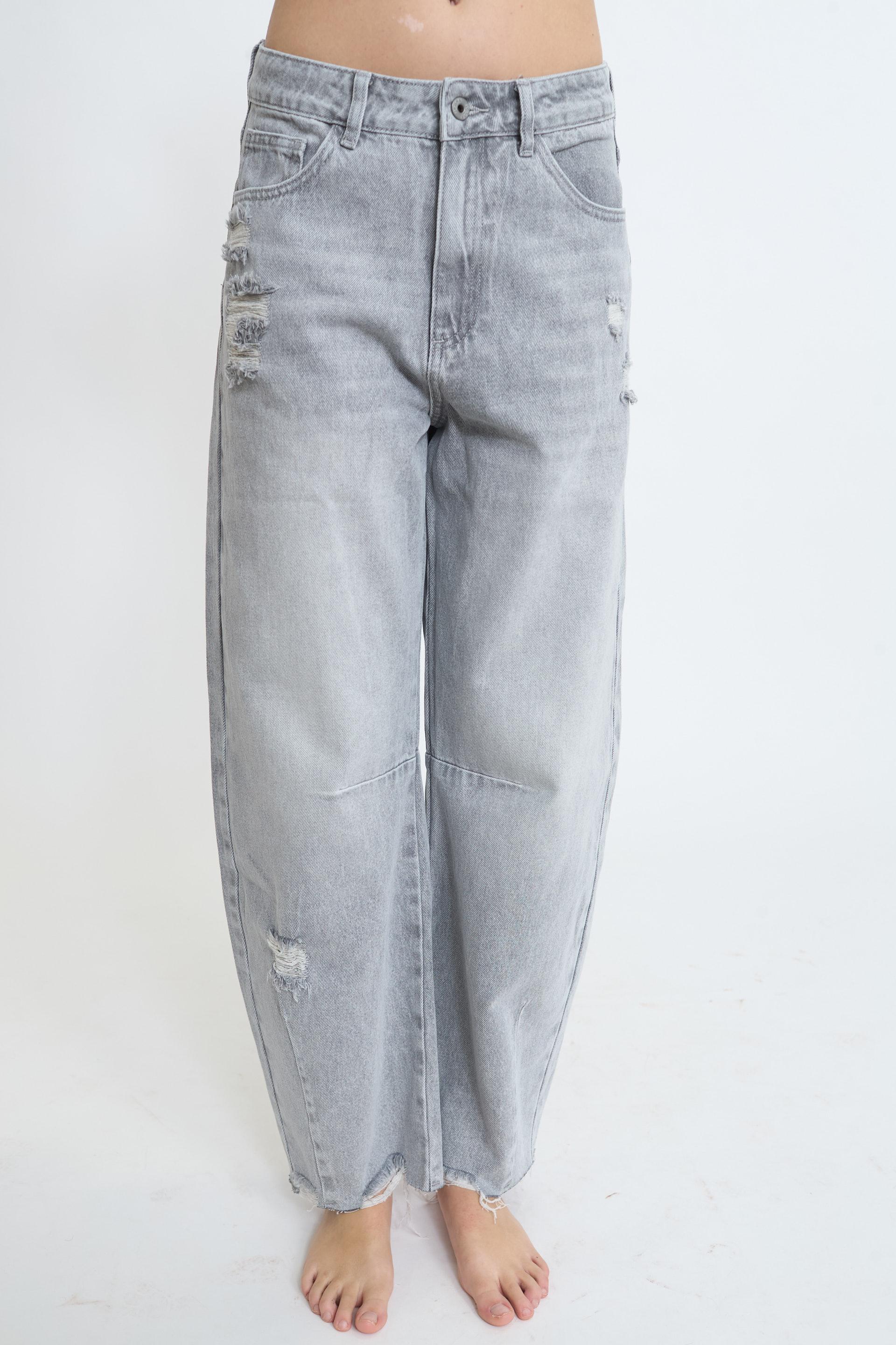 | Jeans barrel con strappi in cotone. Targhetta posteriore loggata in cuoio. Passanti in vita e chiusura tramite cerniera e bottone metallico. | ||