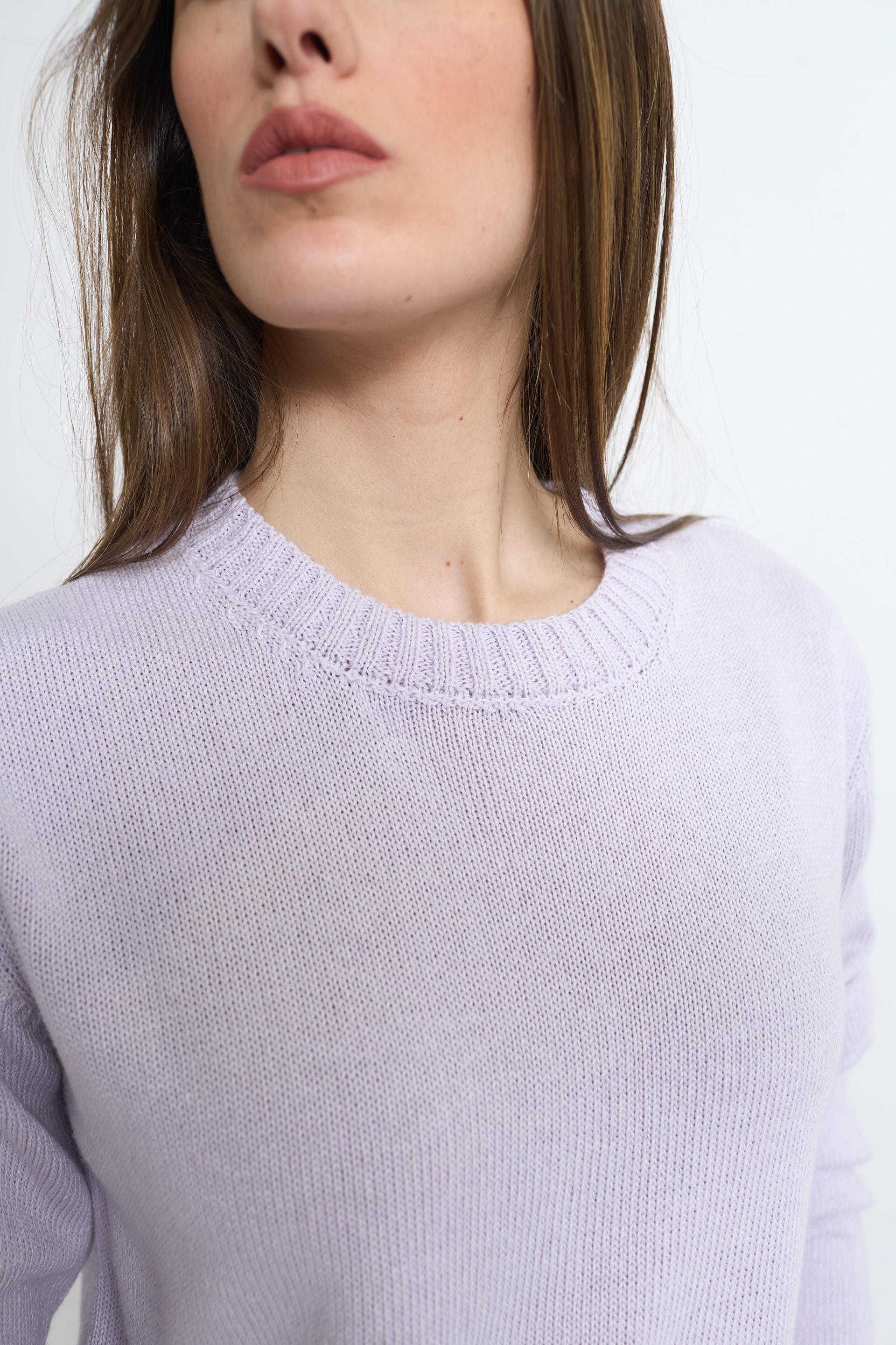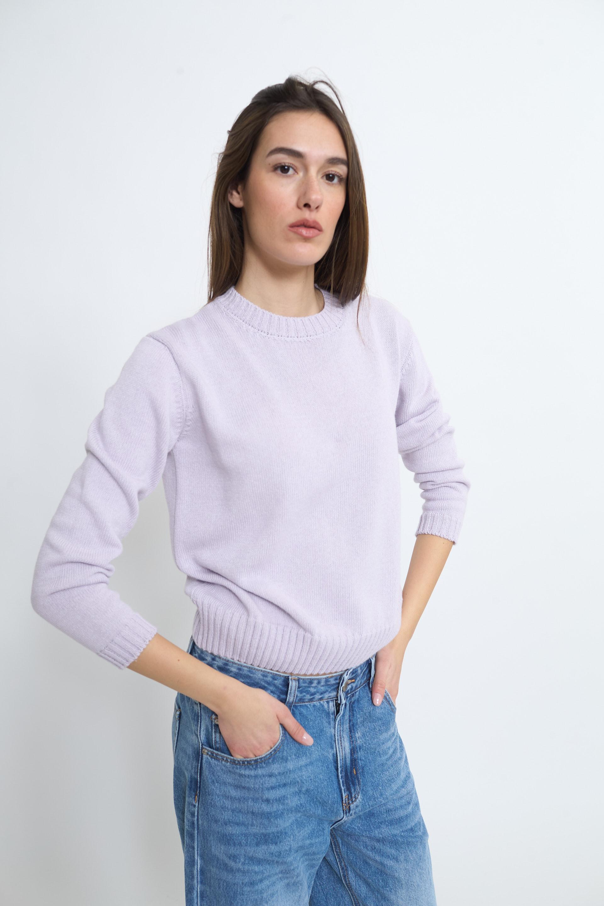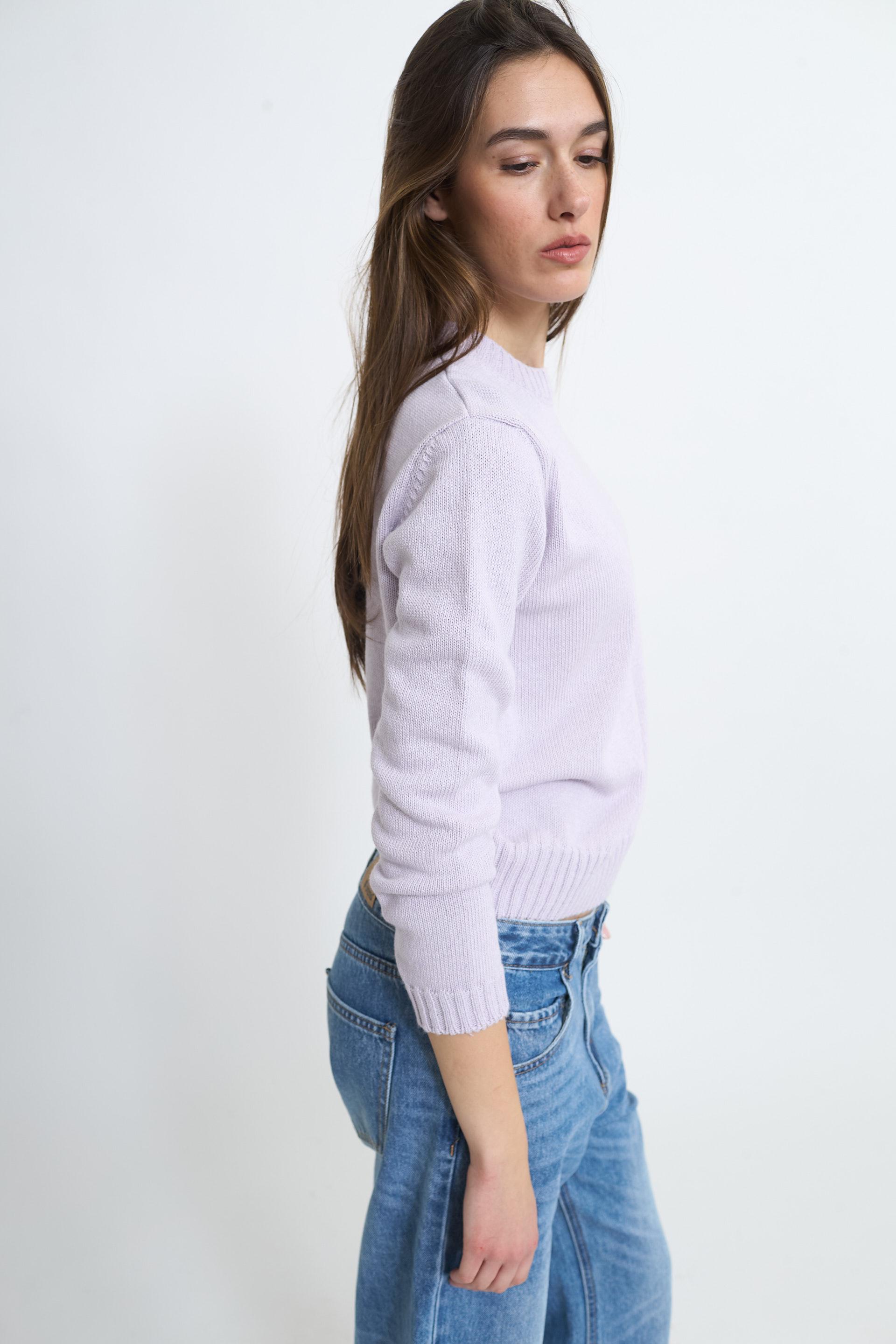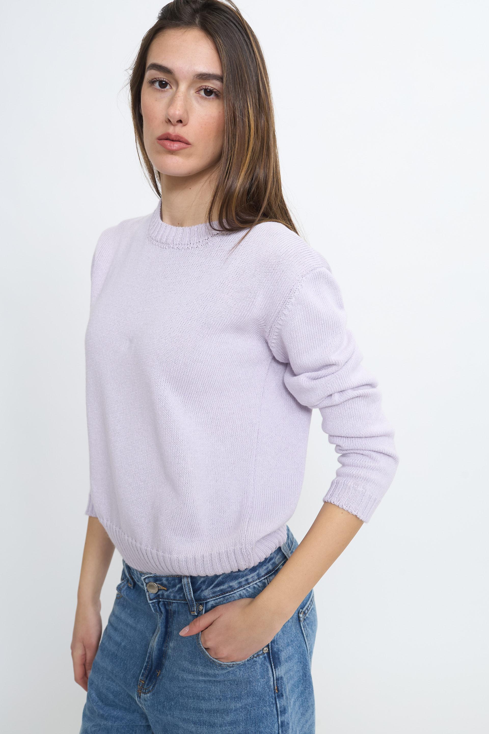 | Maglia girocollo con lavorazione a coste su scollo, polsini e orlo. | ||