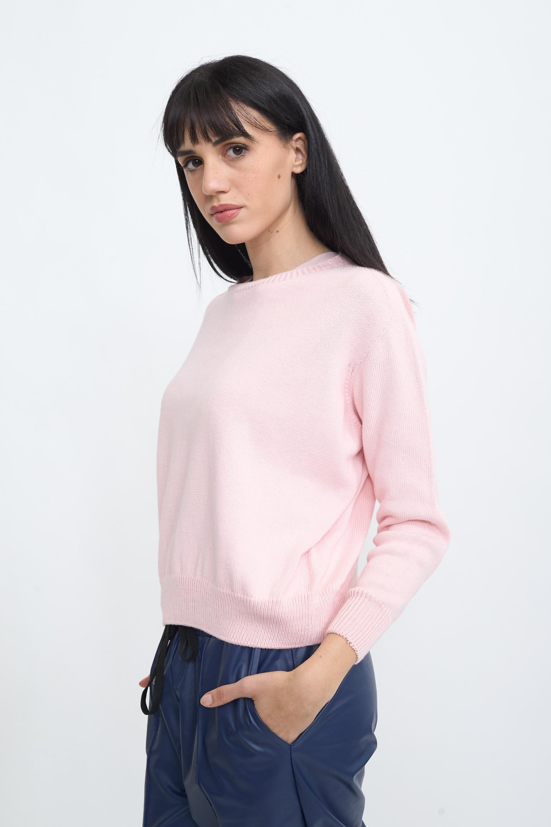 | Maglia paricollo in cotone modello scatoletta. Lavorazione a coste su scollo, polsini e orlo. | ||