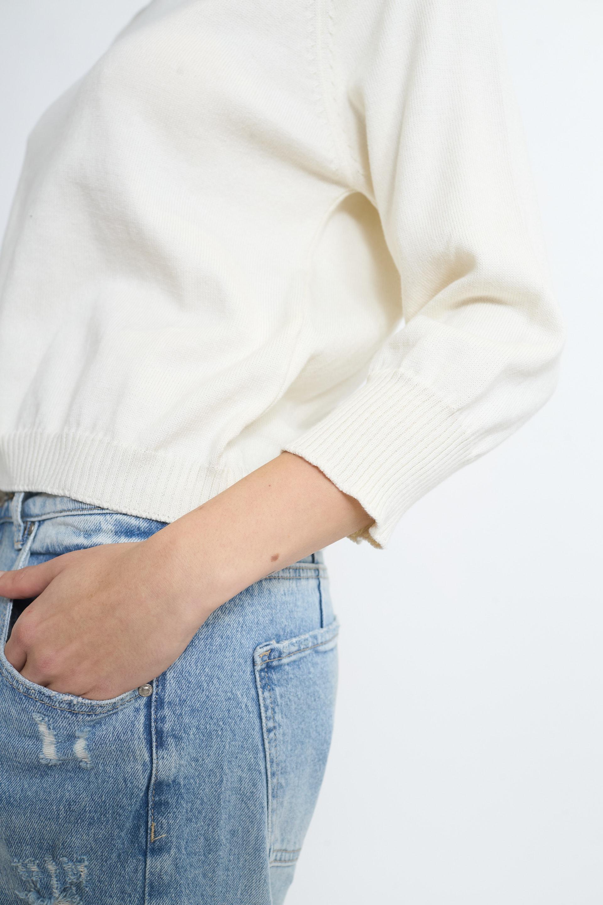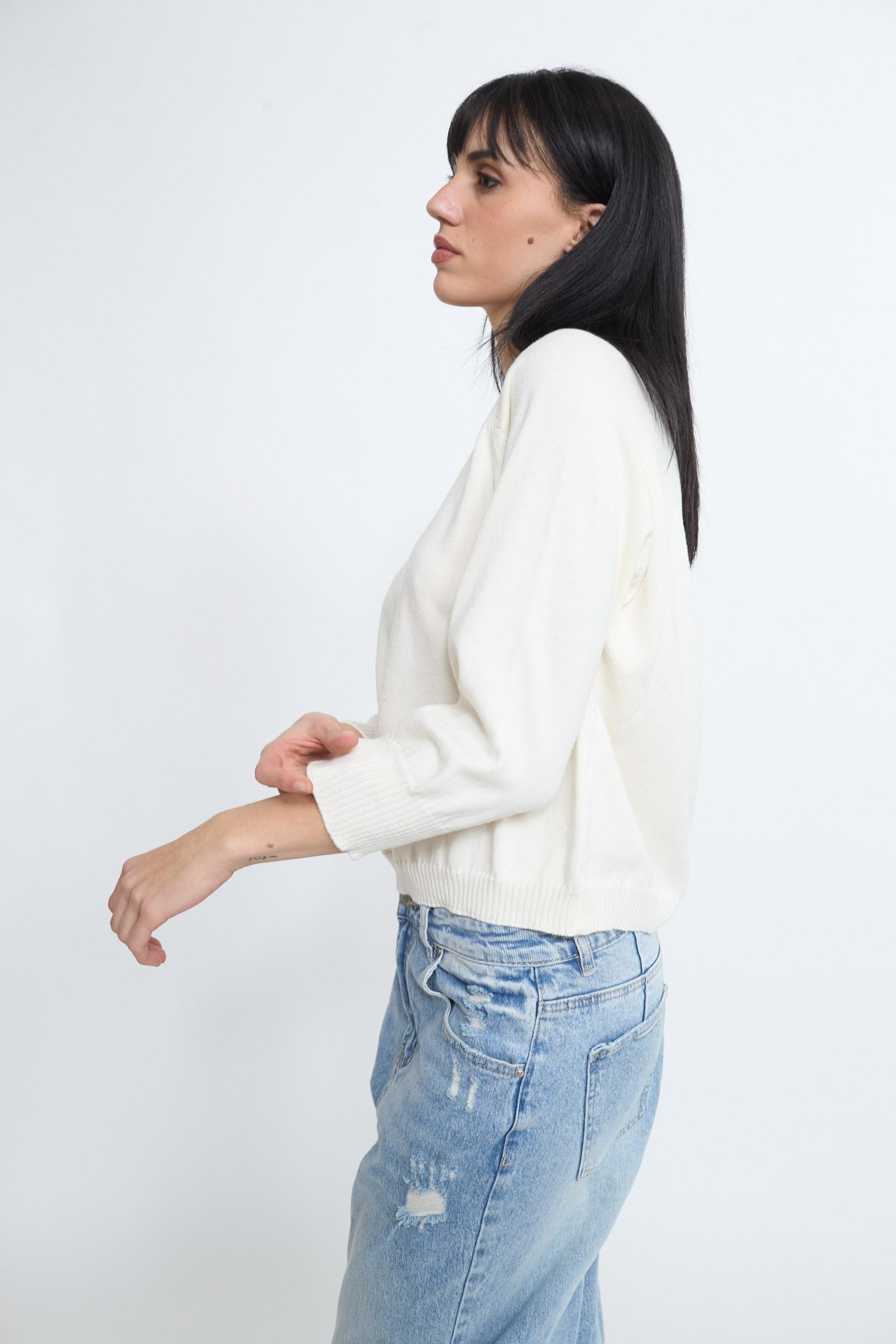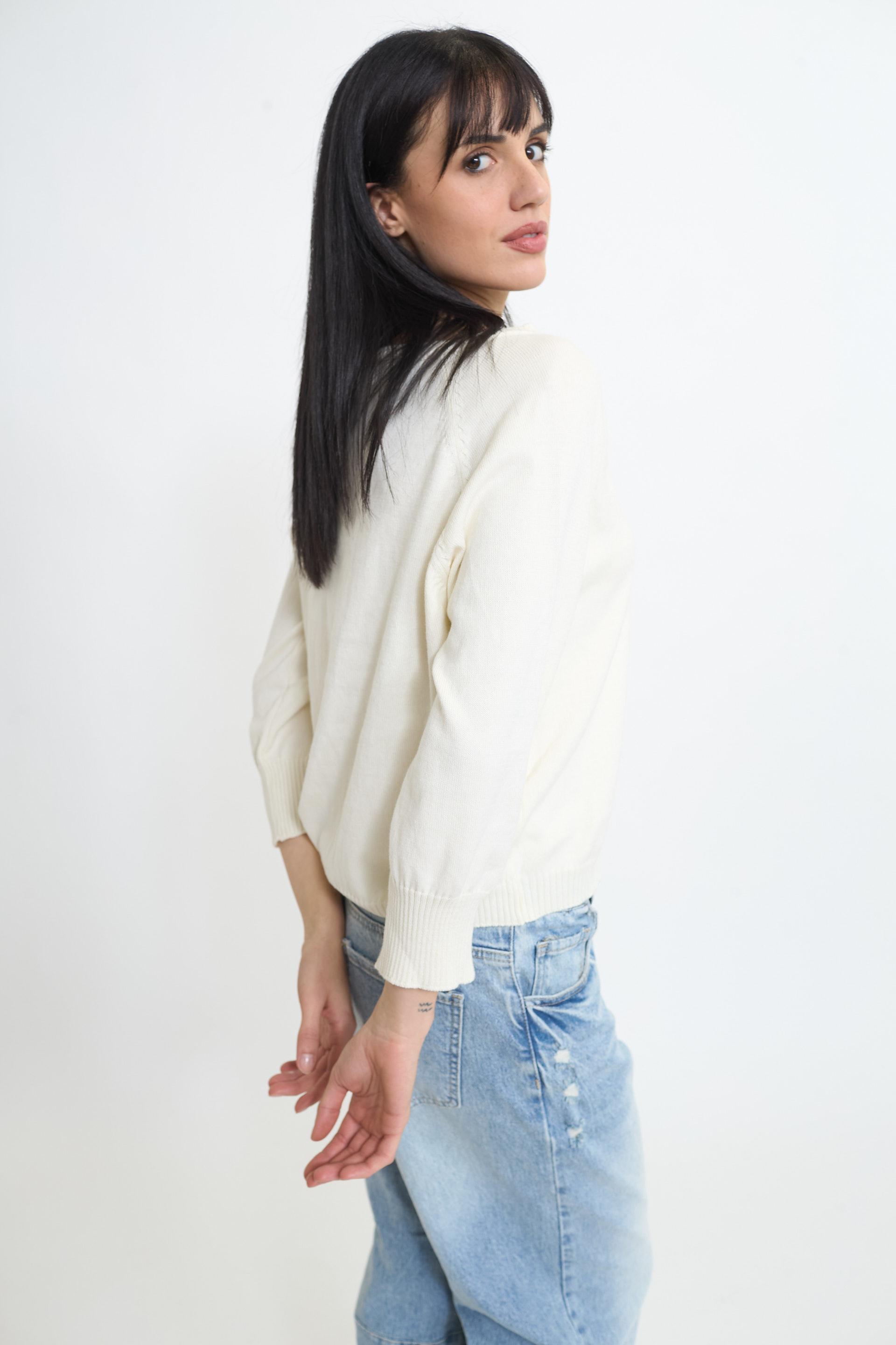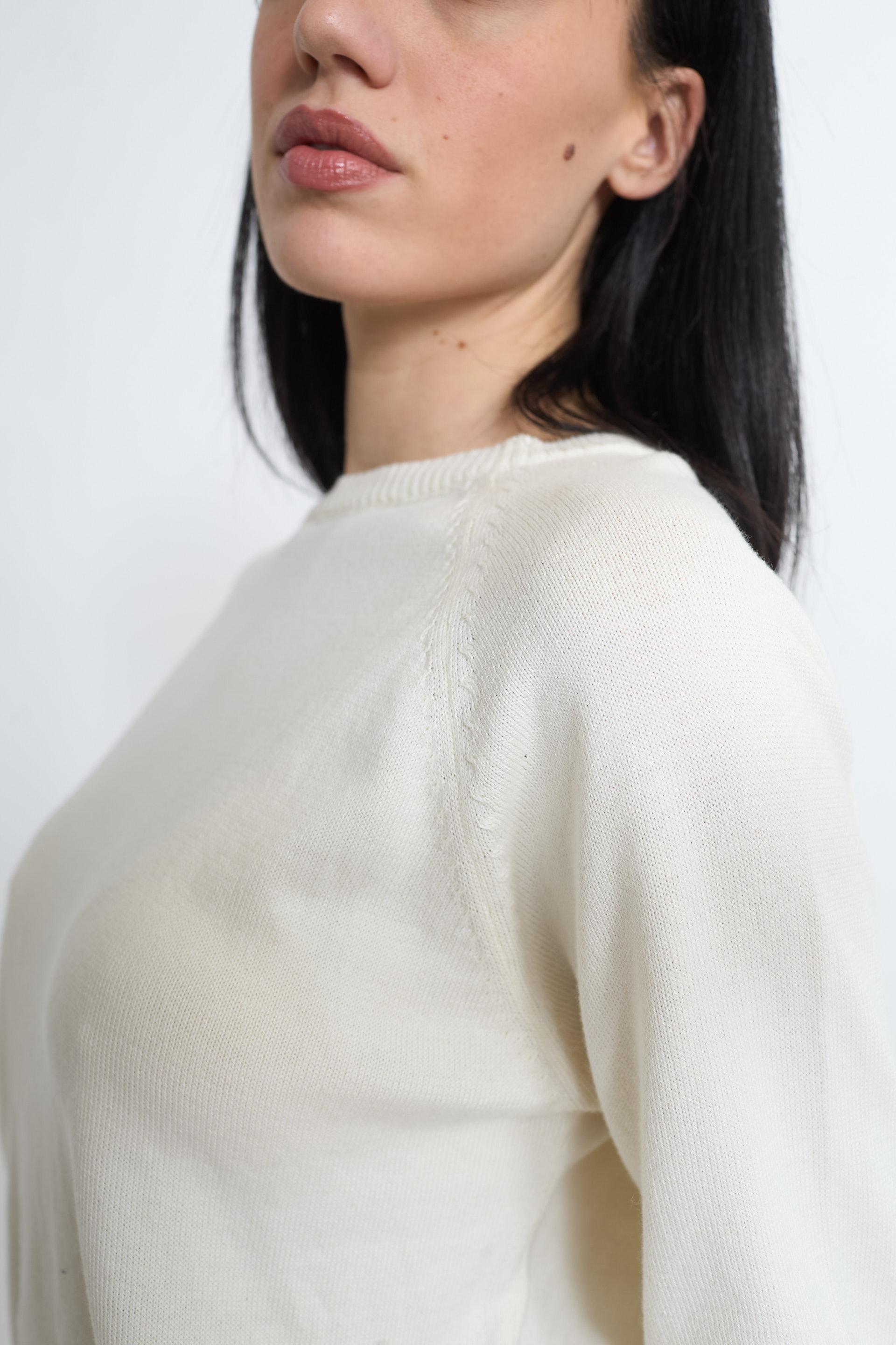 | Maglia paricollo in cotone con manica raglan. Lavorazione a costine su scollo, polsini e orlo. | ||