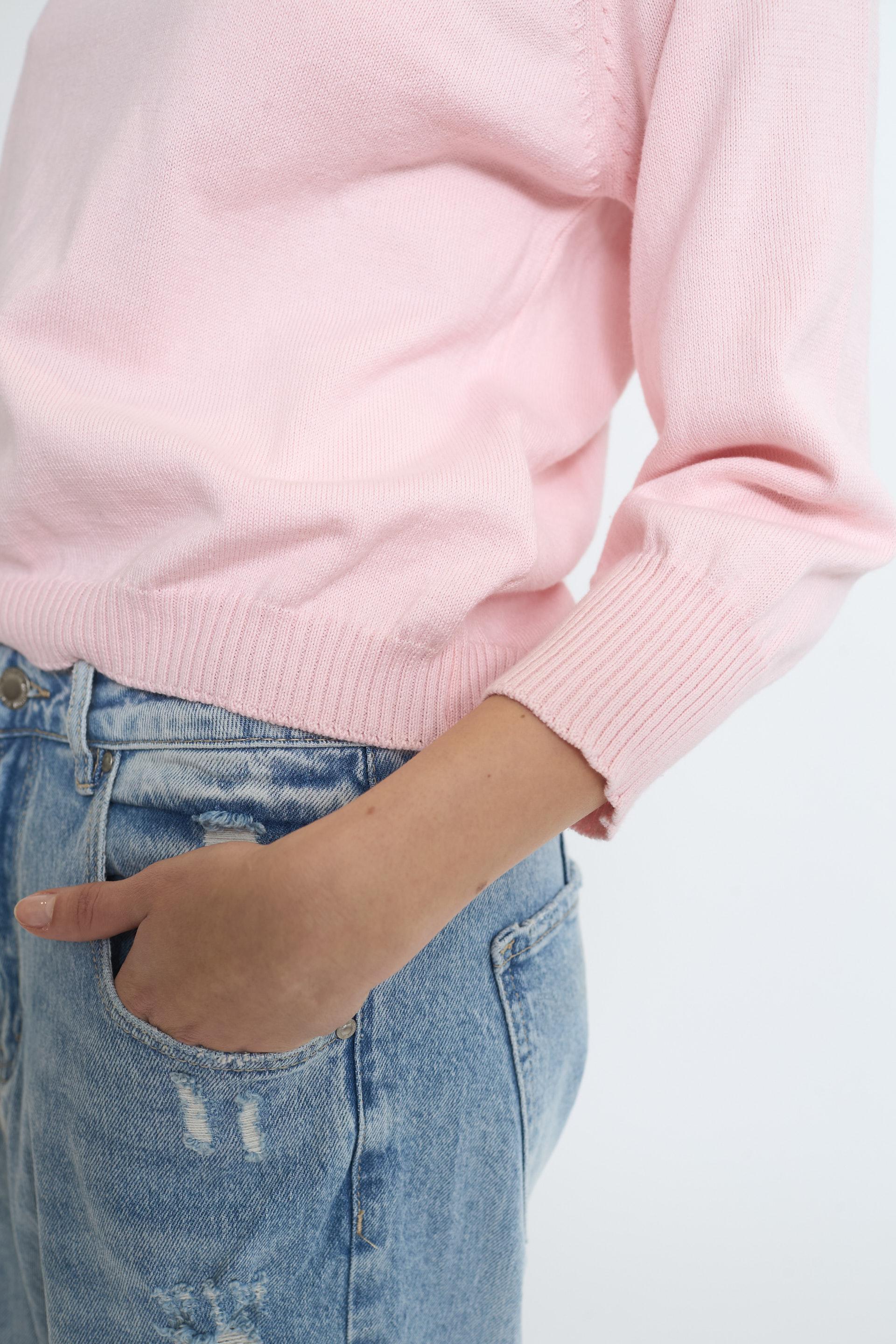 | Maglia paricollo in cotone con manica raglan. Lavorazione a costine su scollo, polsini e orlo. | ||