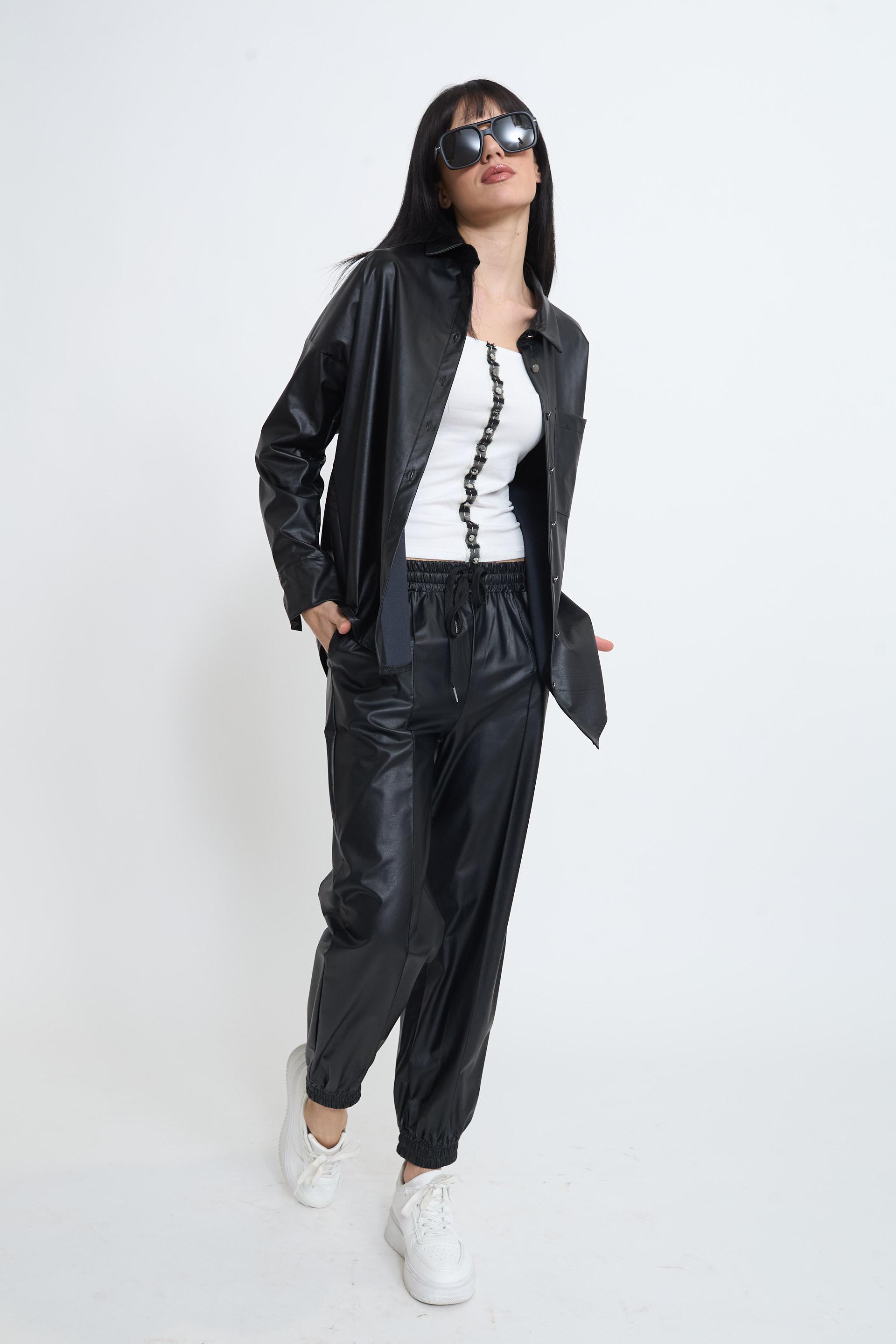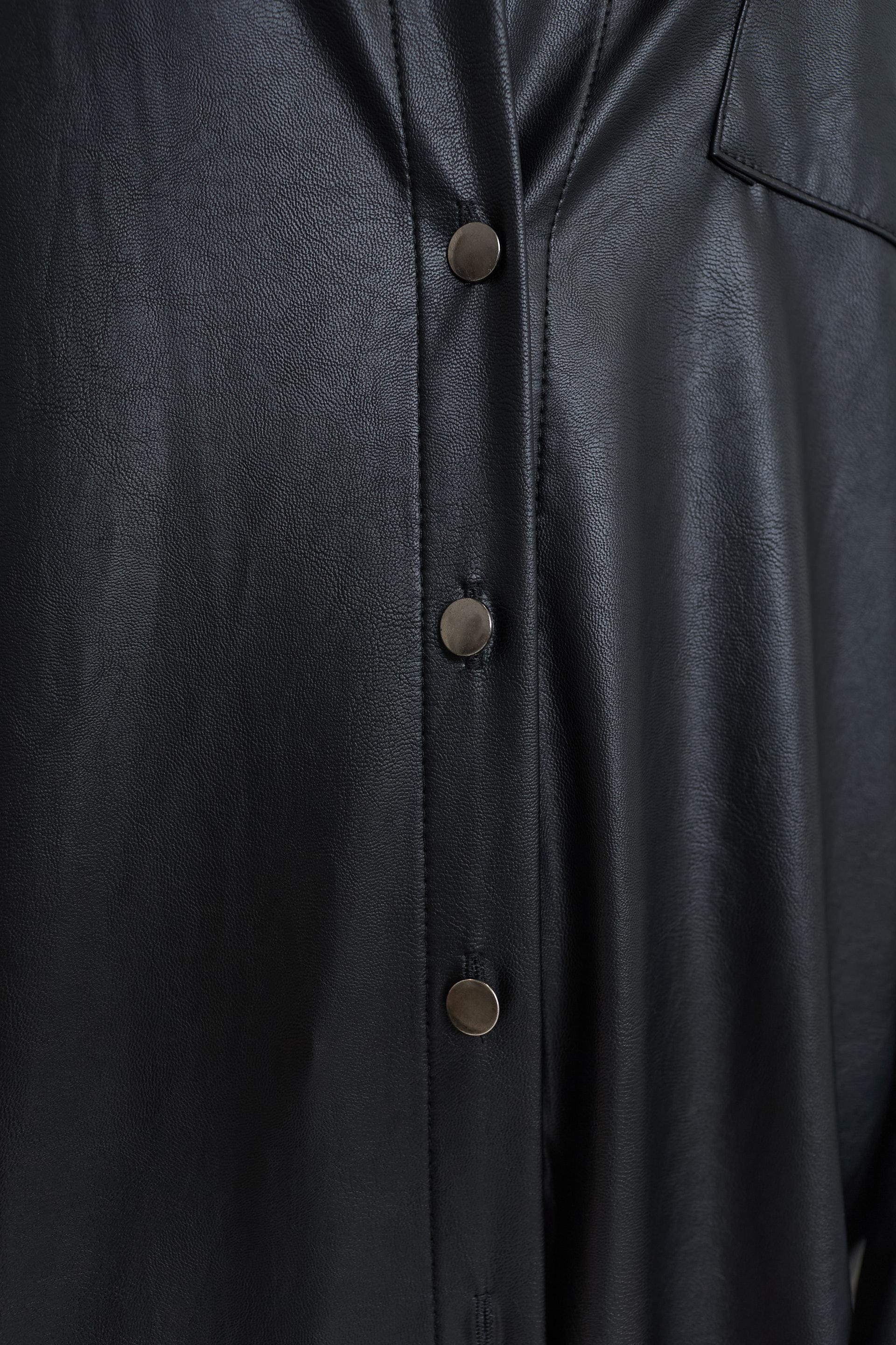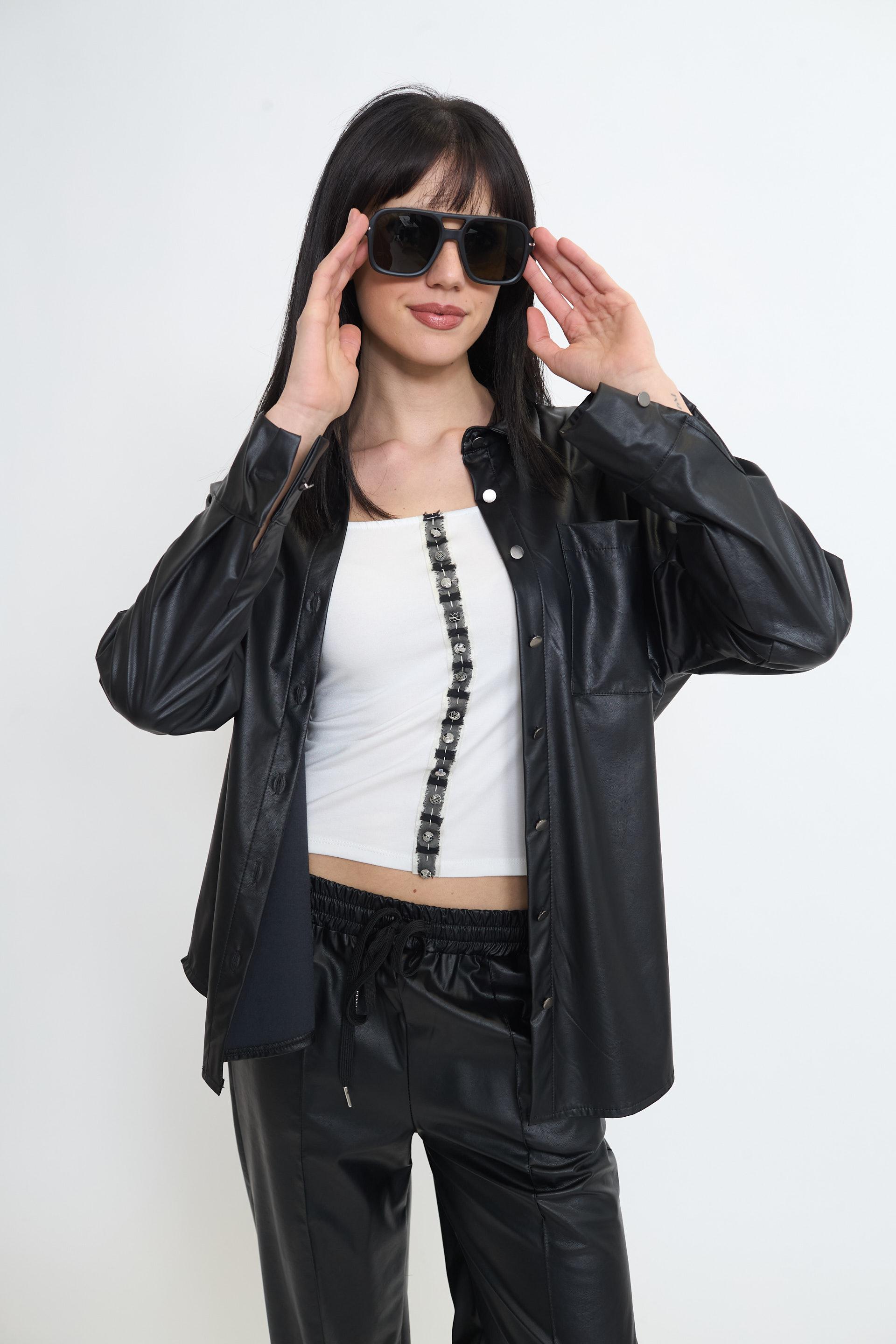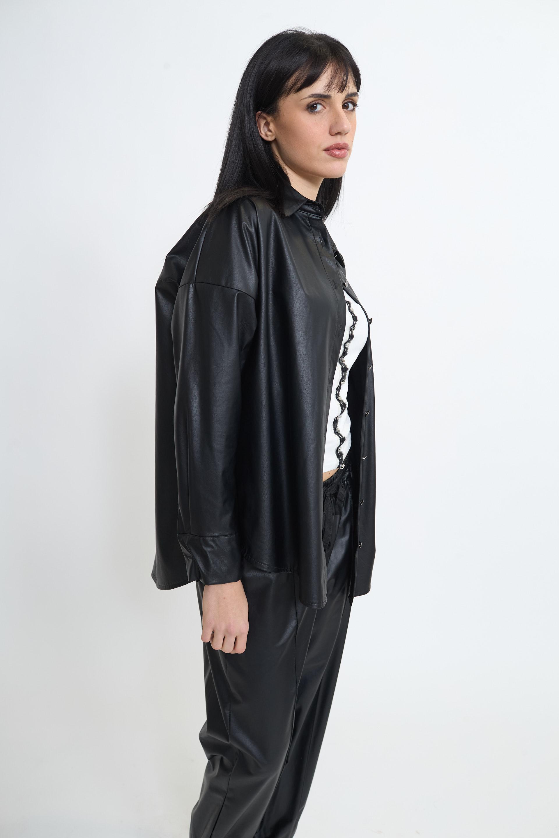 | Camicia over effetto pelle con taschino. Chiusura tramite bottoni metallici. | ||