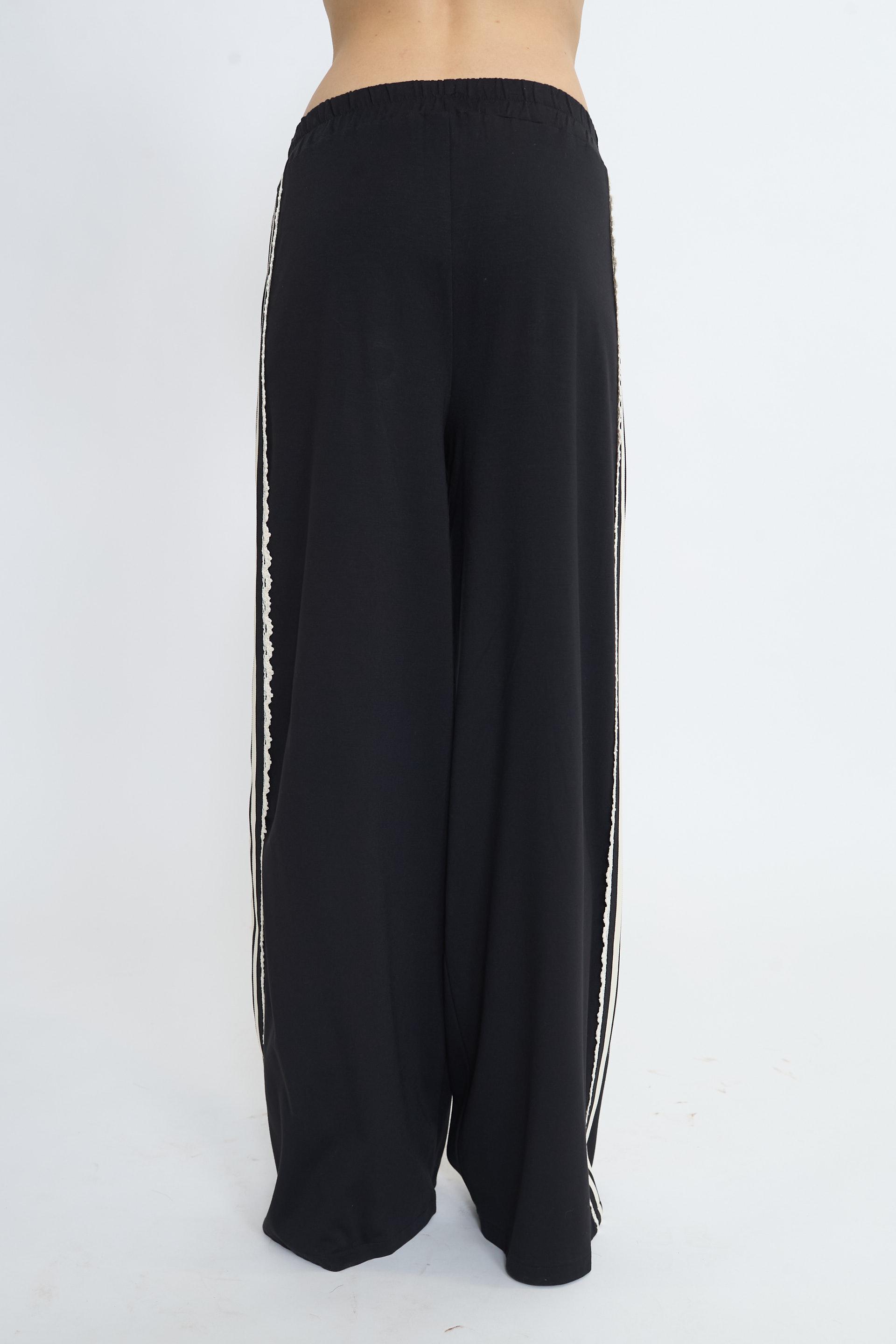 | Pantalone palazzo i misto viscosa con elastico in vita e tasche laterali. Dettaglio di bande laterali. | ||